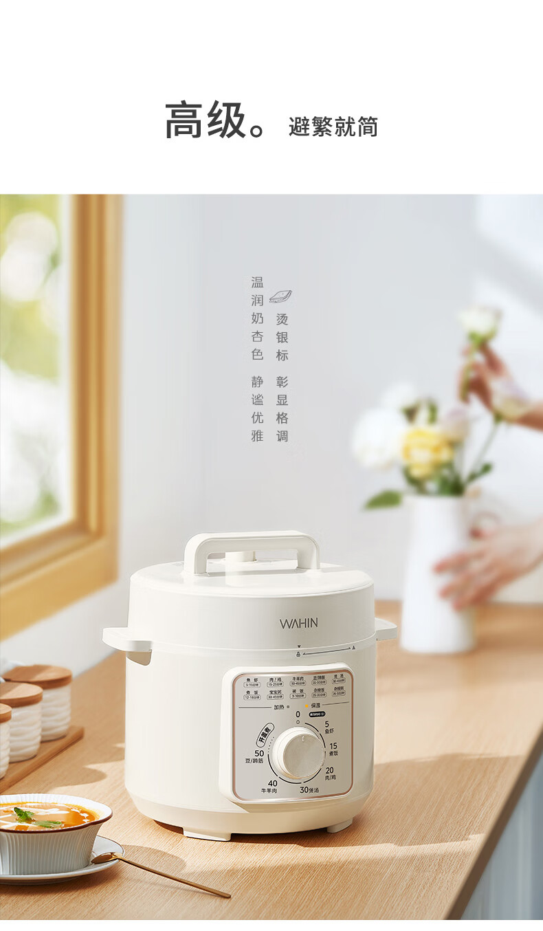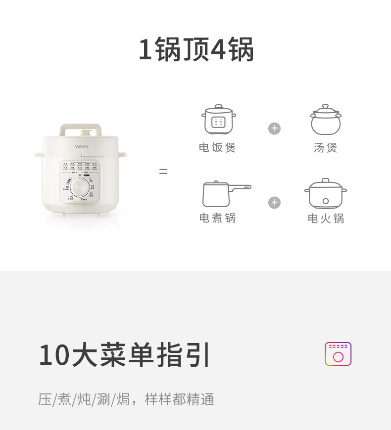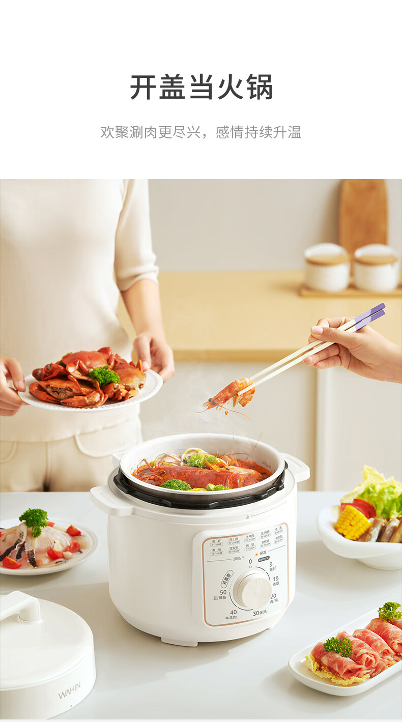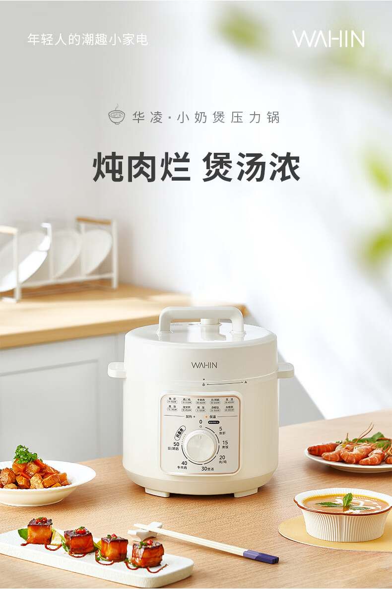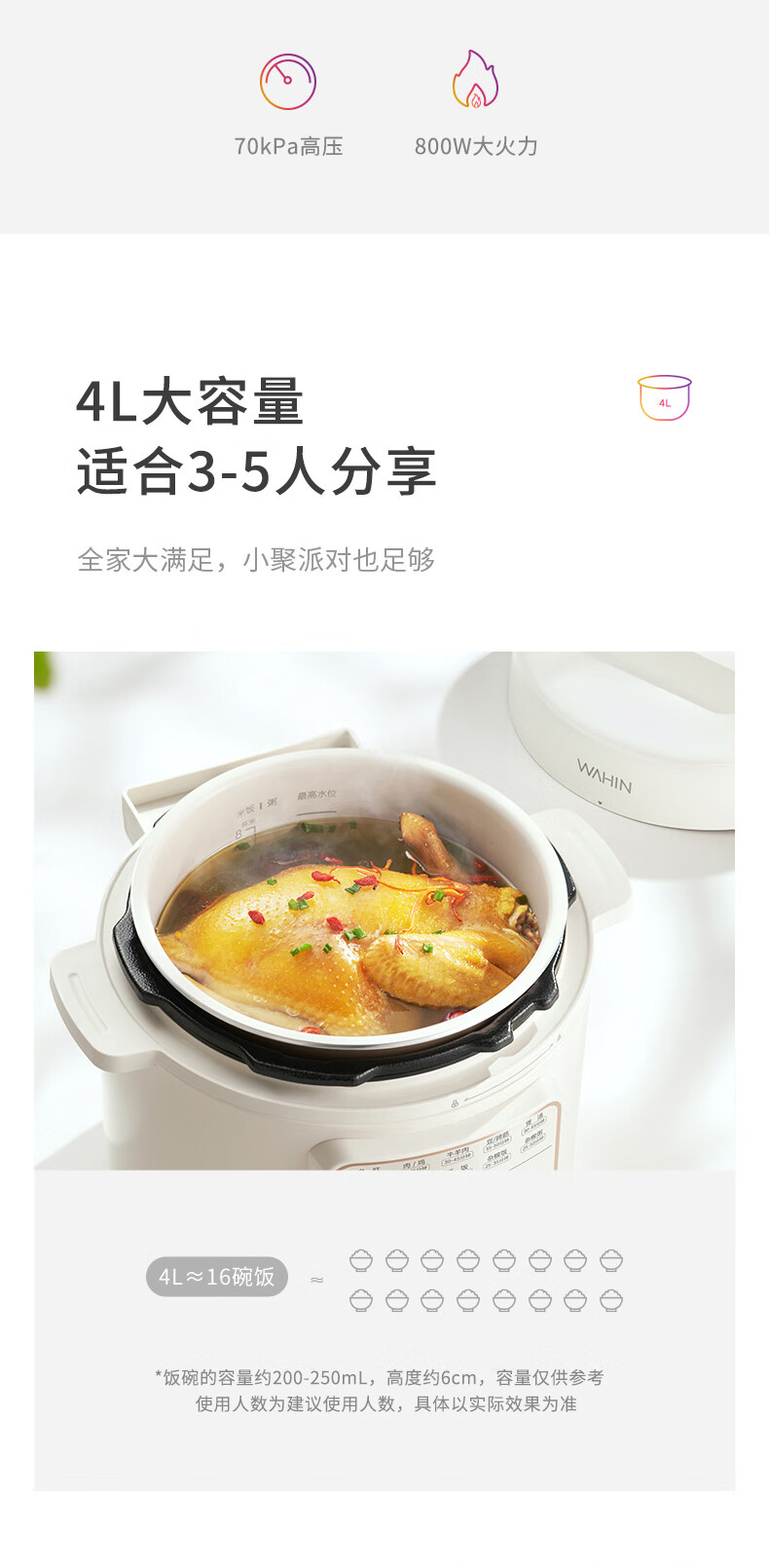 积分免费兑:华凌 美的出品电压力锅4L 家用多功能高压锅易清洁不粘内胆电饭煲电煮锅开盖火锅10大菜单