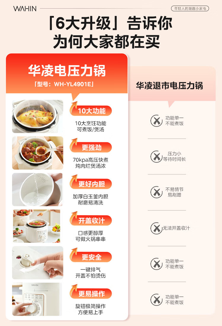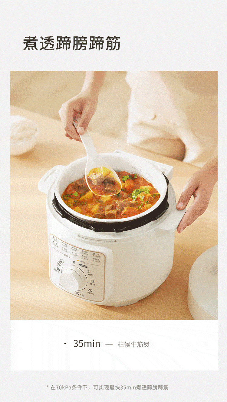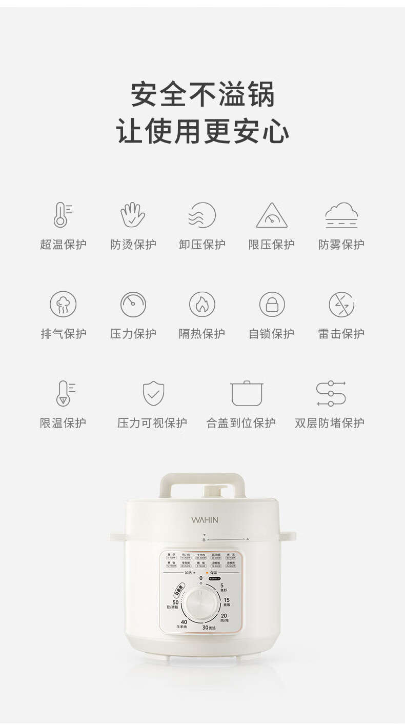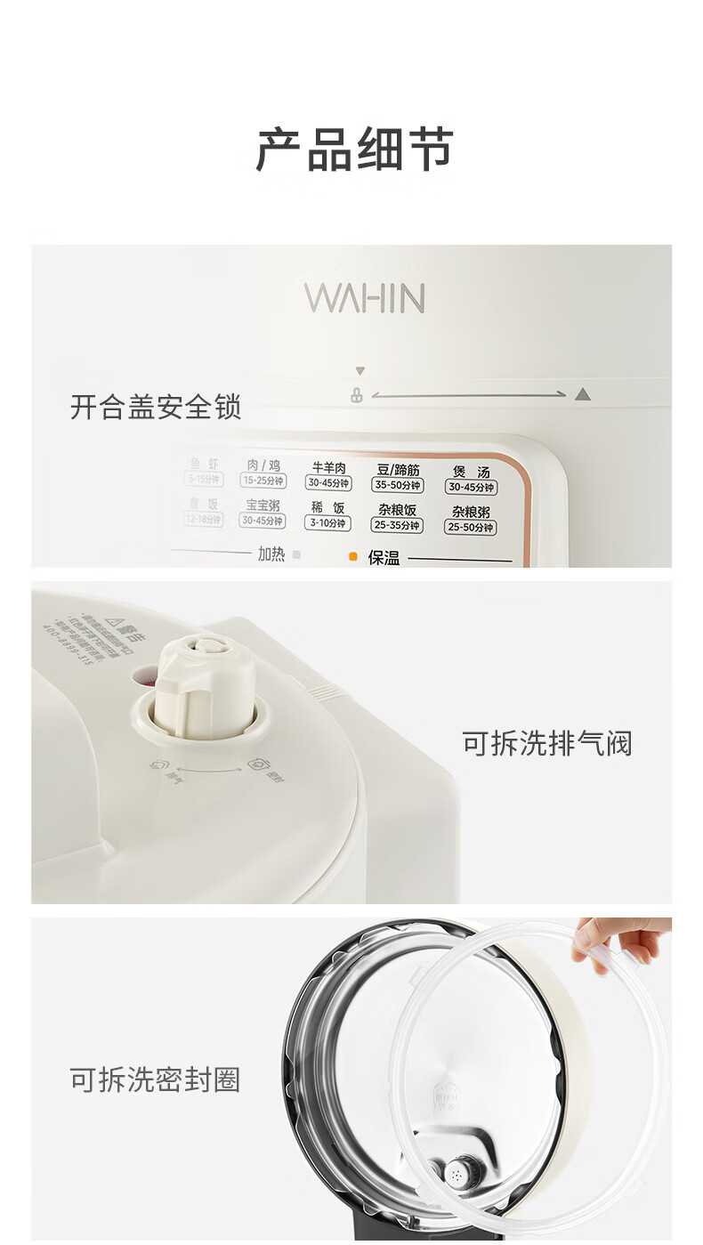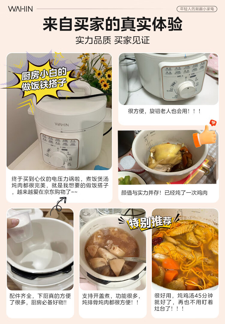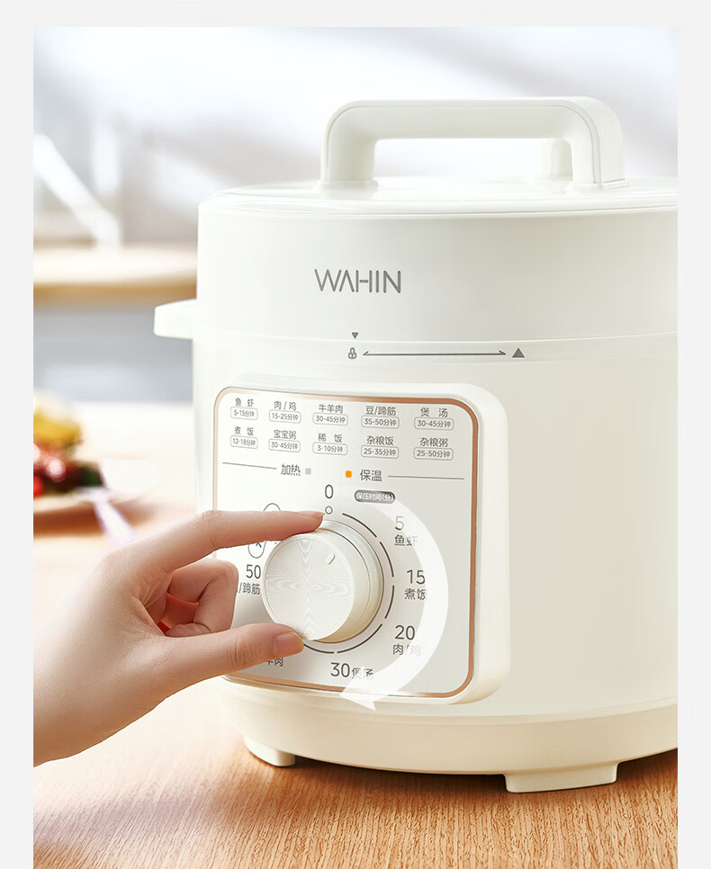 积分免费兑:华凌 美的出品电压力锅4L 家用多功能高压锅易清洁不粘内胆电饭煲电煮锅开盖火锅10大菜单