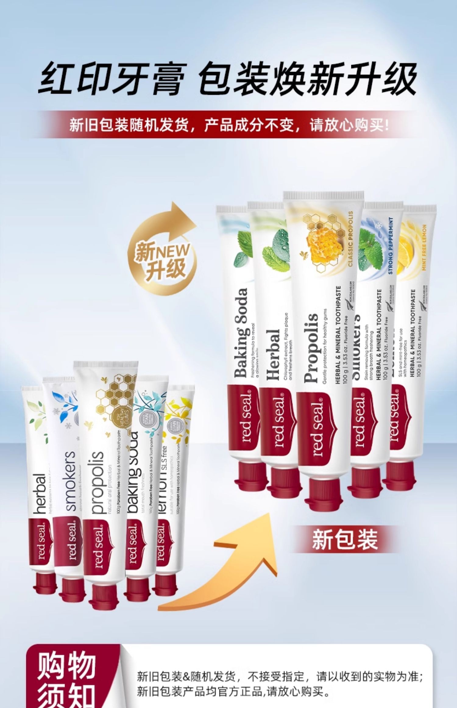 【保税仓】Red Seal 红印牙膏 苏打100g/含氟100g/草本110g