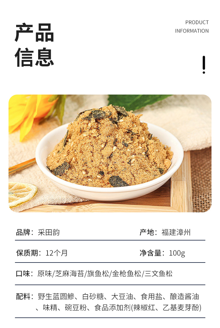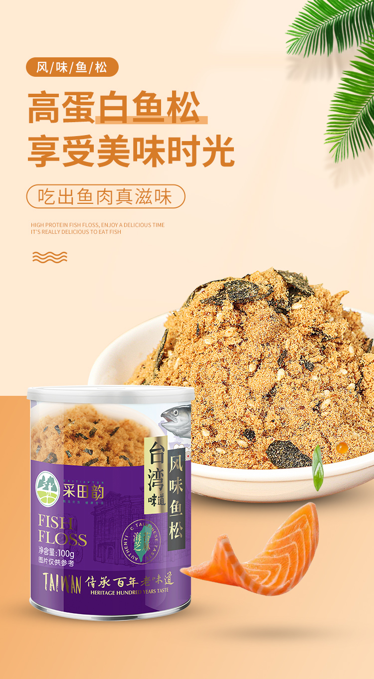 【买1送1 台湾风味】采田韵台湾风味 高蛋白鱼松 鲜香美味 营养丰富 早餐拌饭拌面沙拉饭团寿司 宝宝辅食 100g/罐