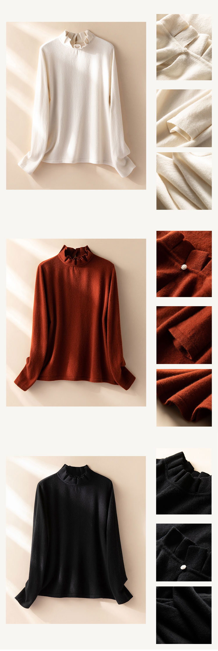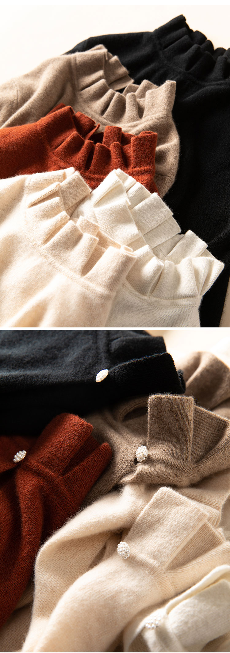 MENG·【迷恋】100%小山羊绒时尚显瘦花边领羊绒衫