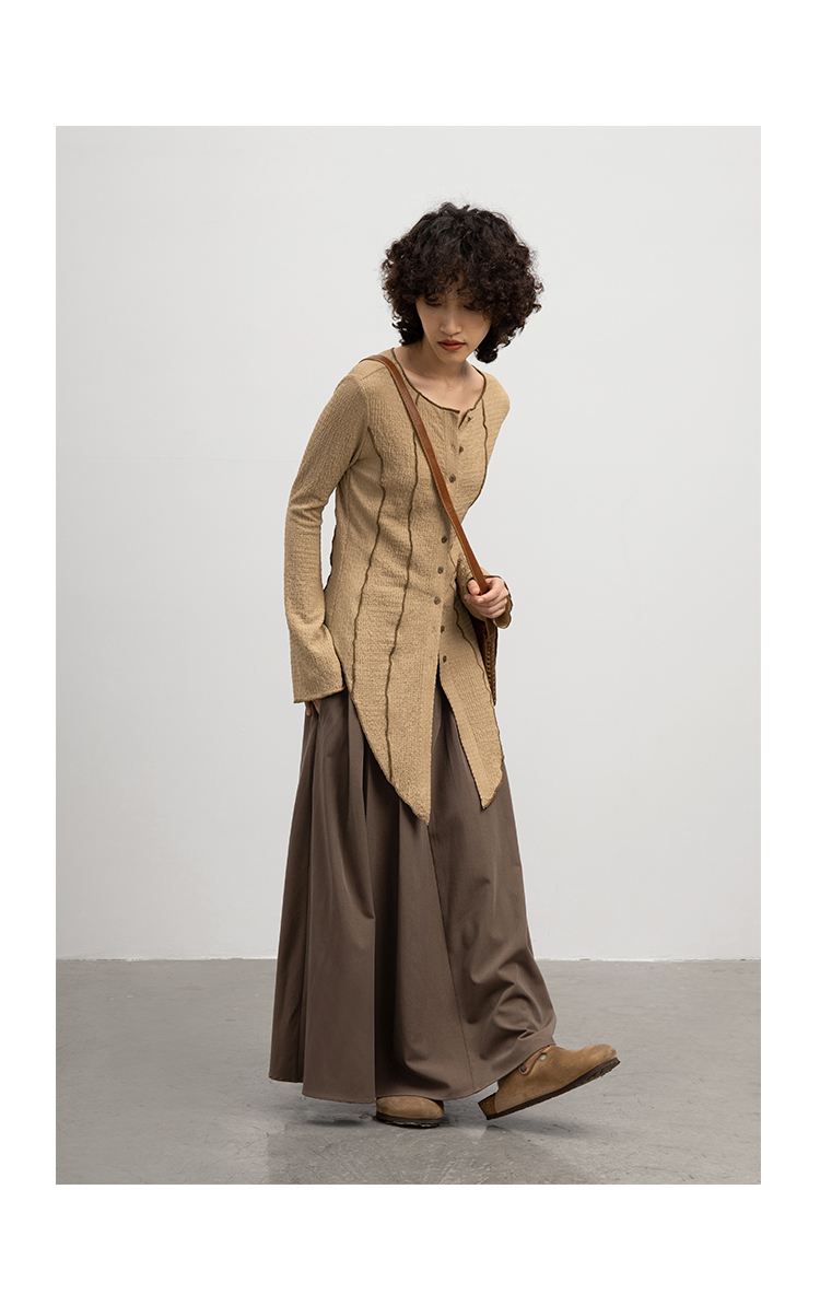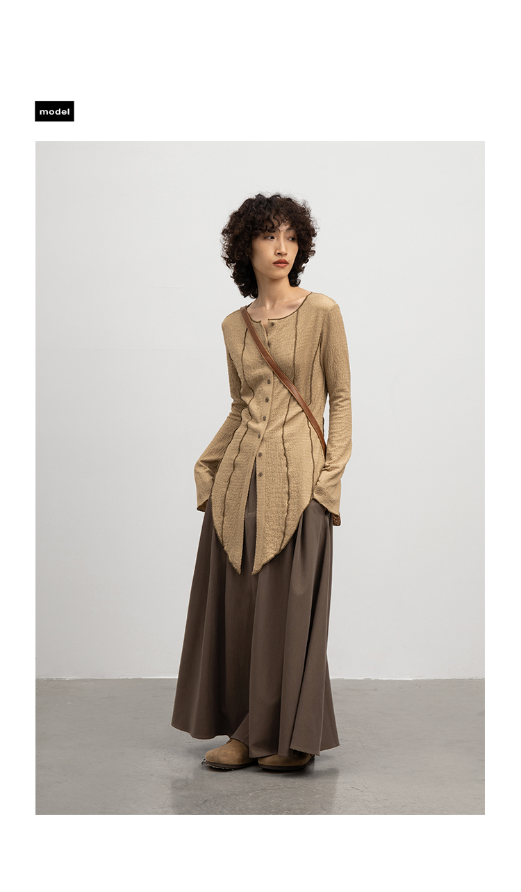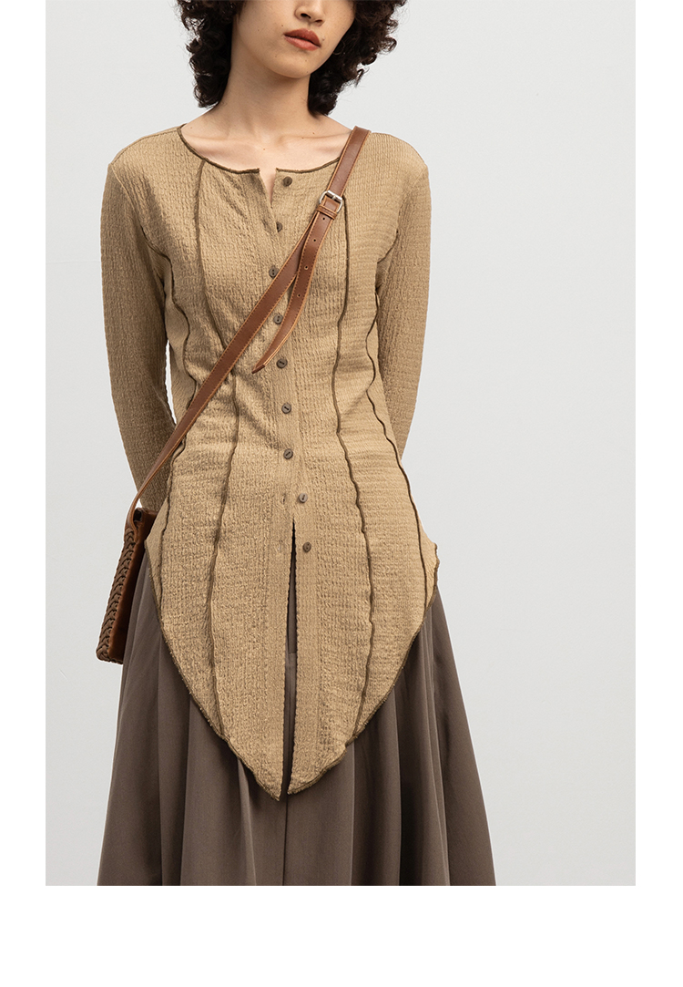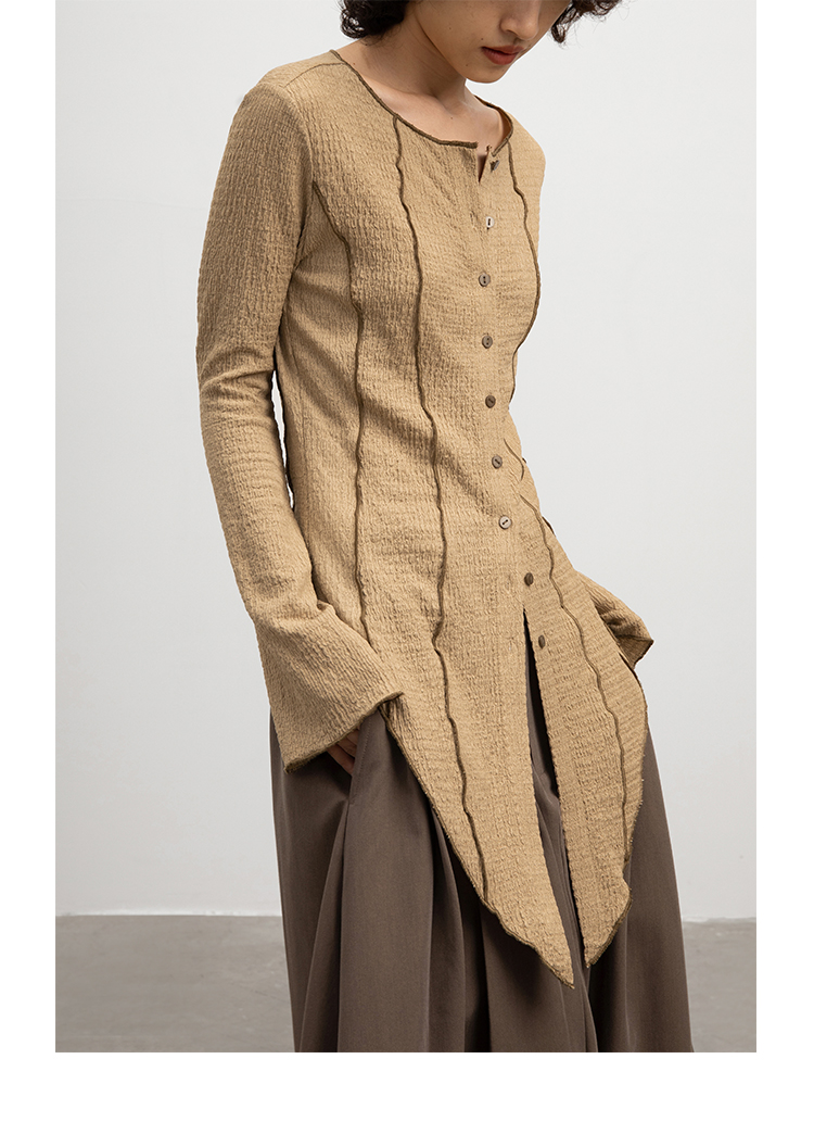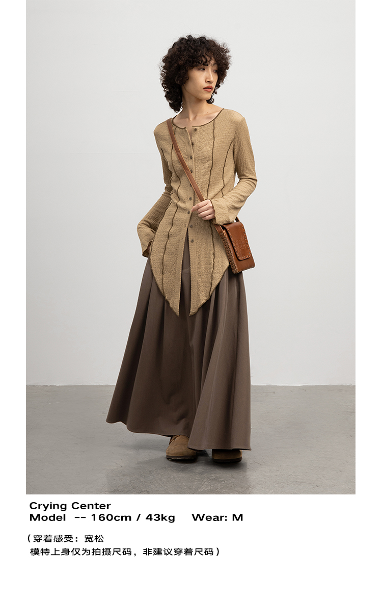 CryingCenter 浅卡其燕尾摆喇叭袖超显瘦衬衫 微弹 哭喊中心