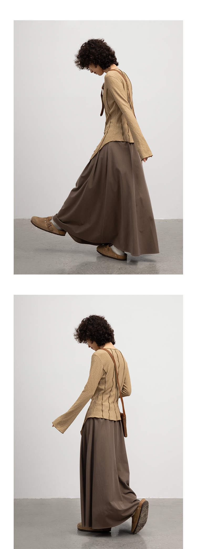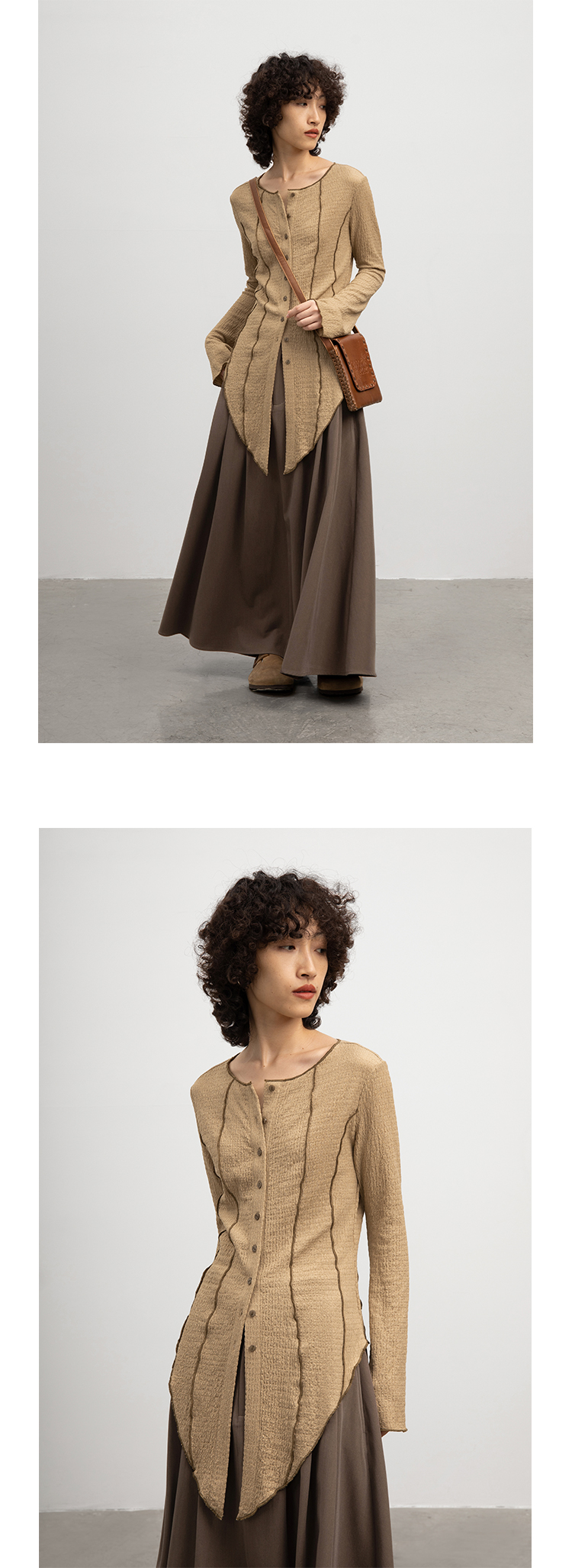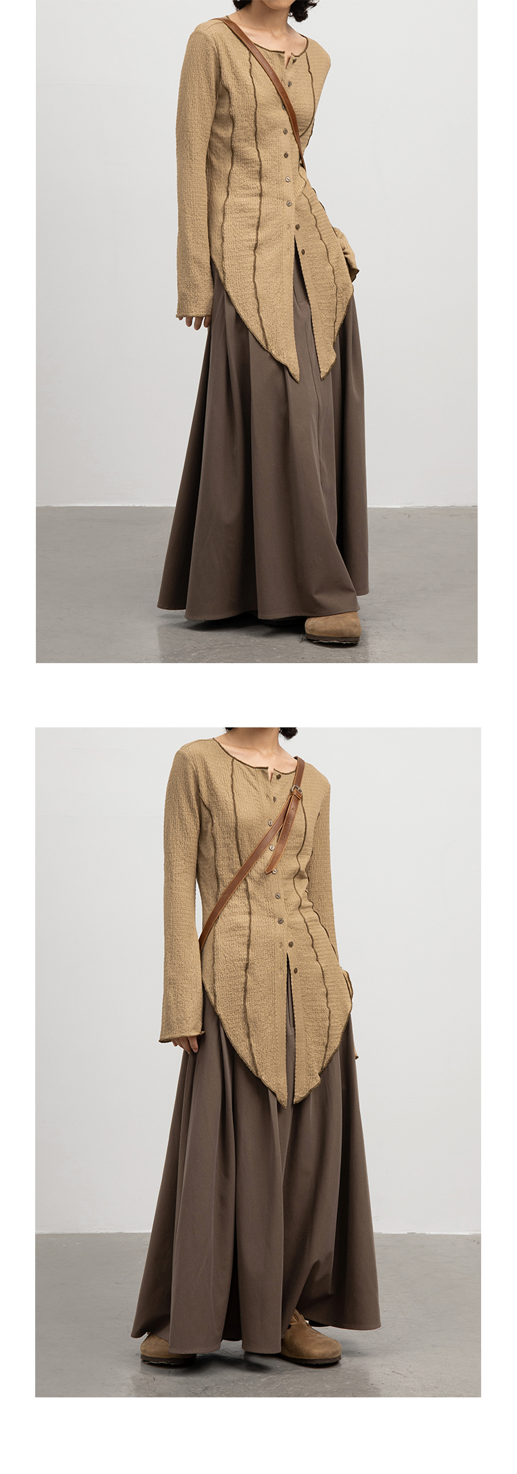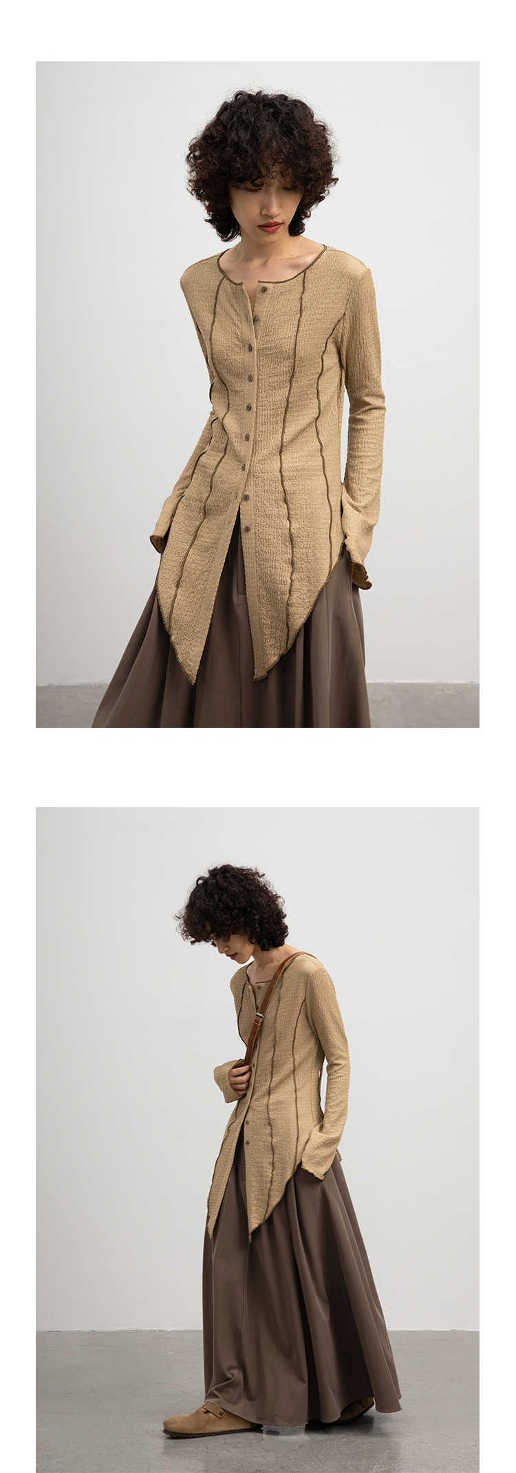 CryingCenter 浅卡其燕尾摆喇叭袖超显瘦衬衫 微弹 哭喊中心