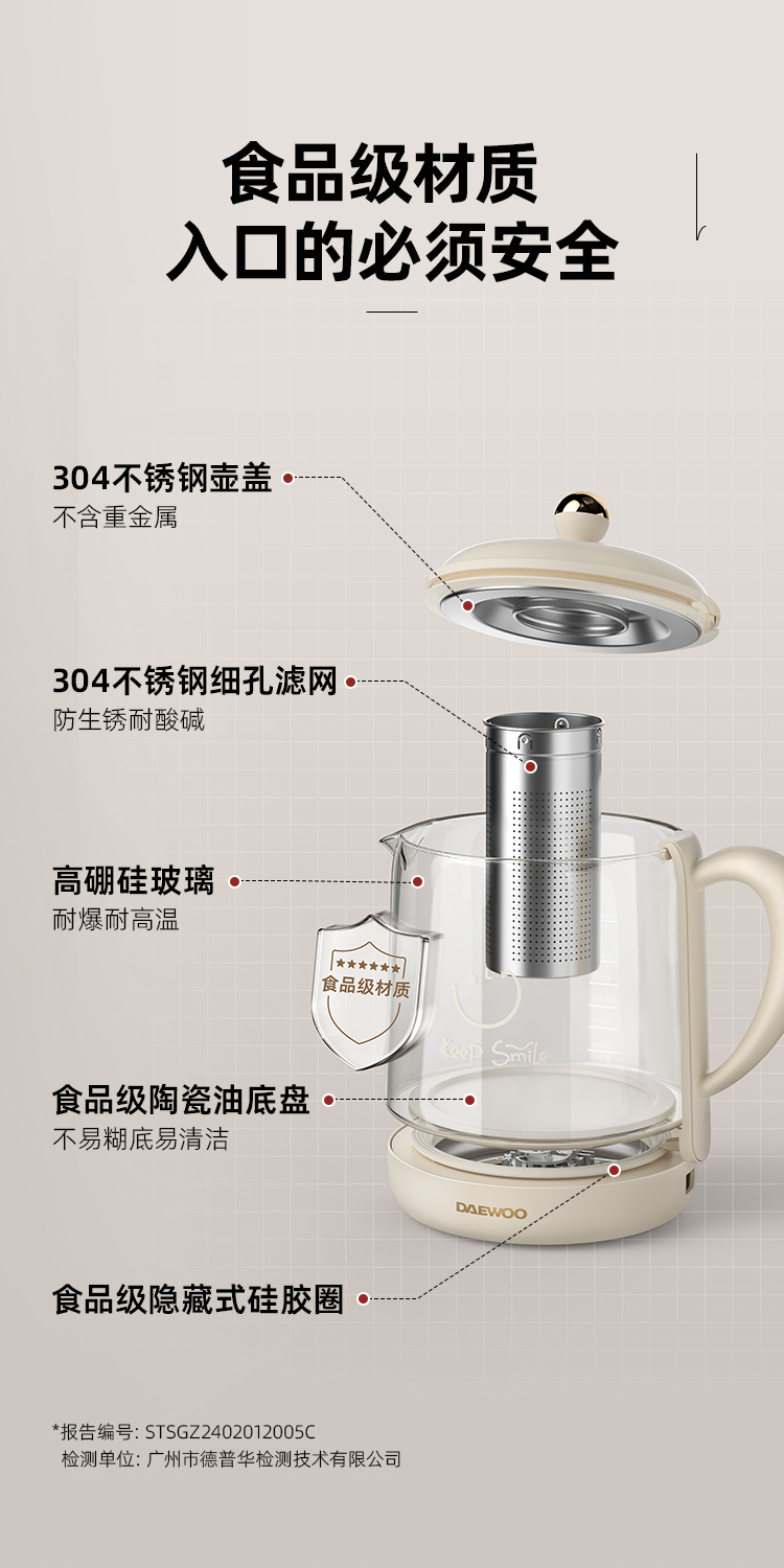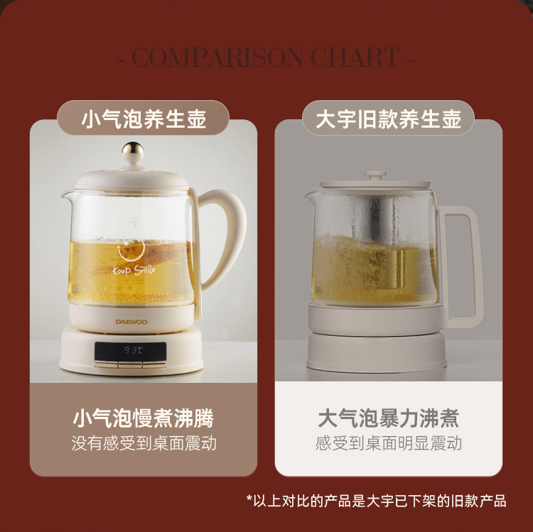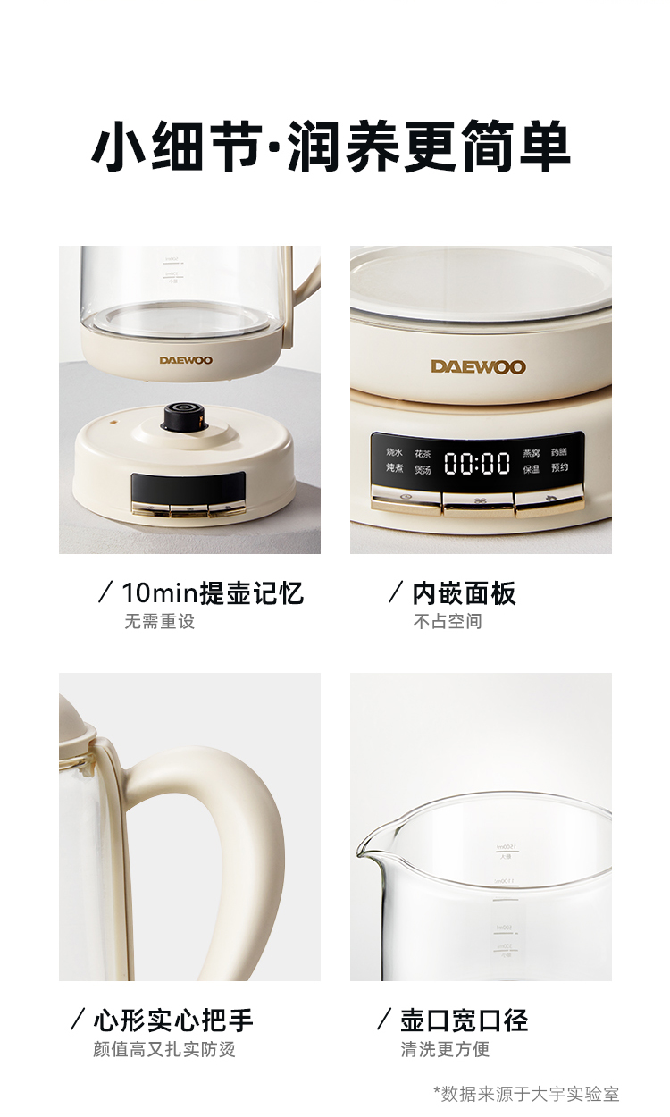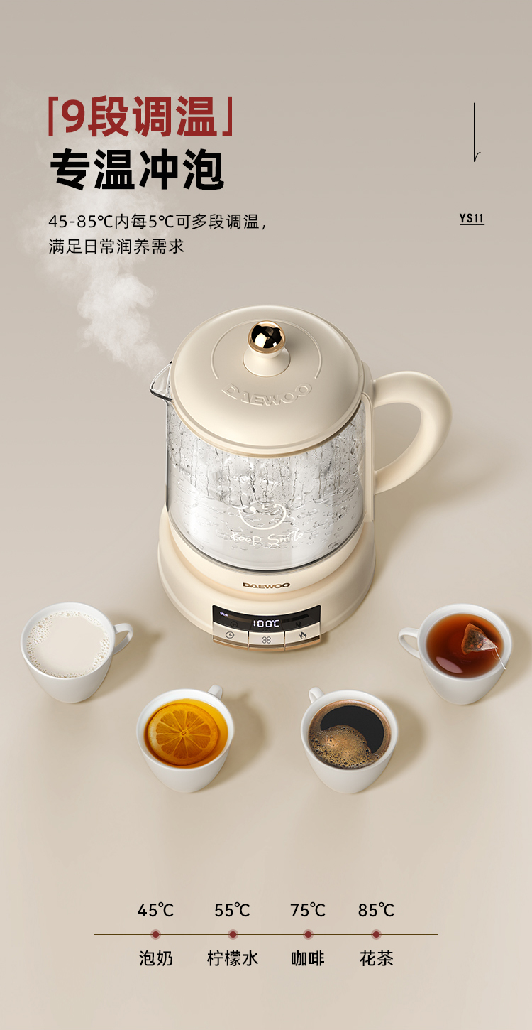 含茶漏预计26.1.13左右到货【轻声气泡煮 花式营养炖】大宇小气泡柔炖养生壶YS11 快速烧水 9段调温 45度自动保温12小时 6大菜单 陶瓷油底盘久煮不糊底 壶身容量1.5L炖盅容量约600ml