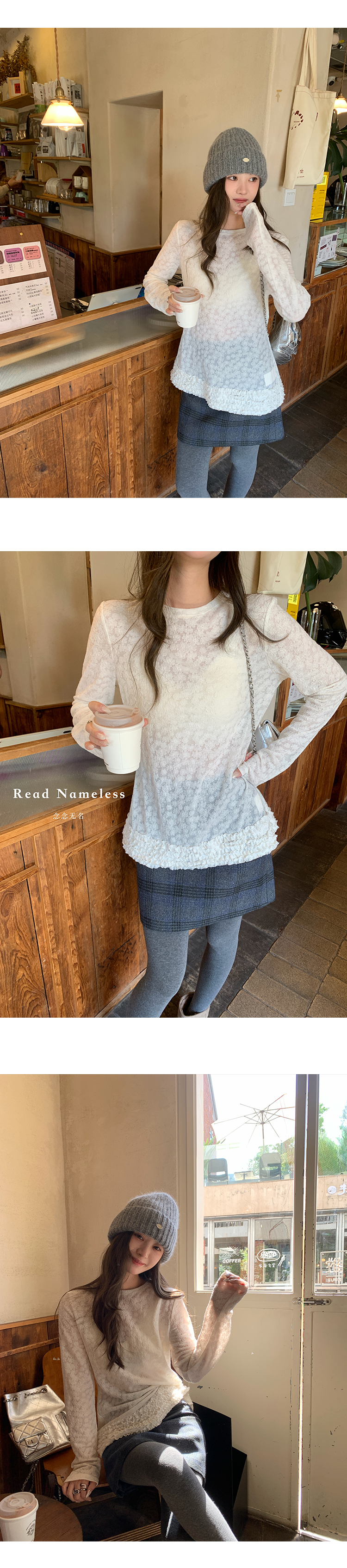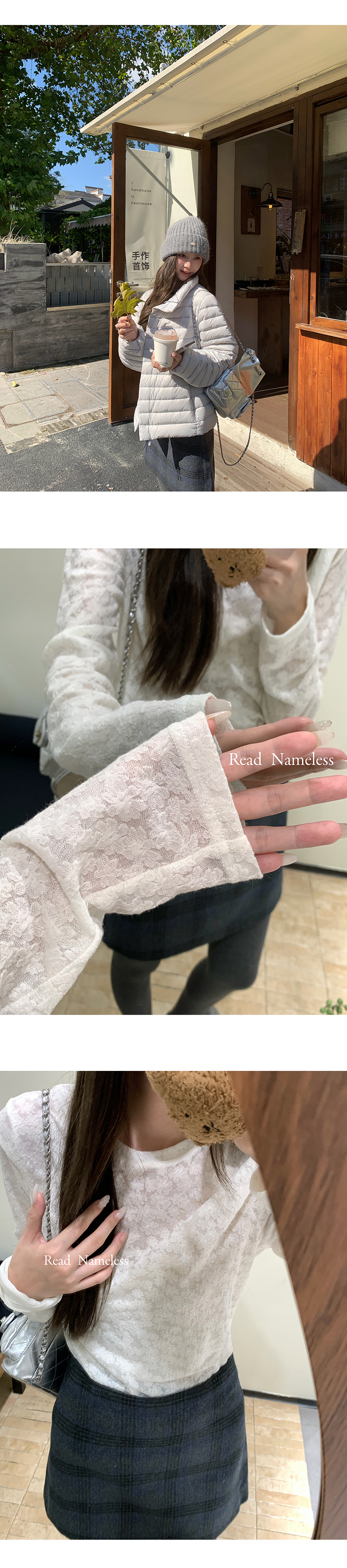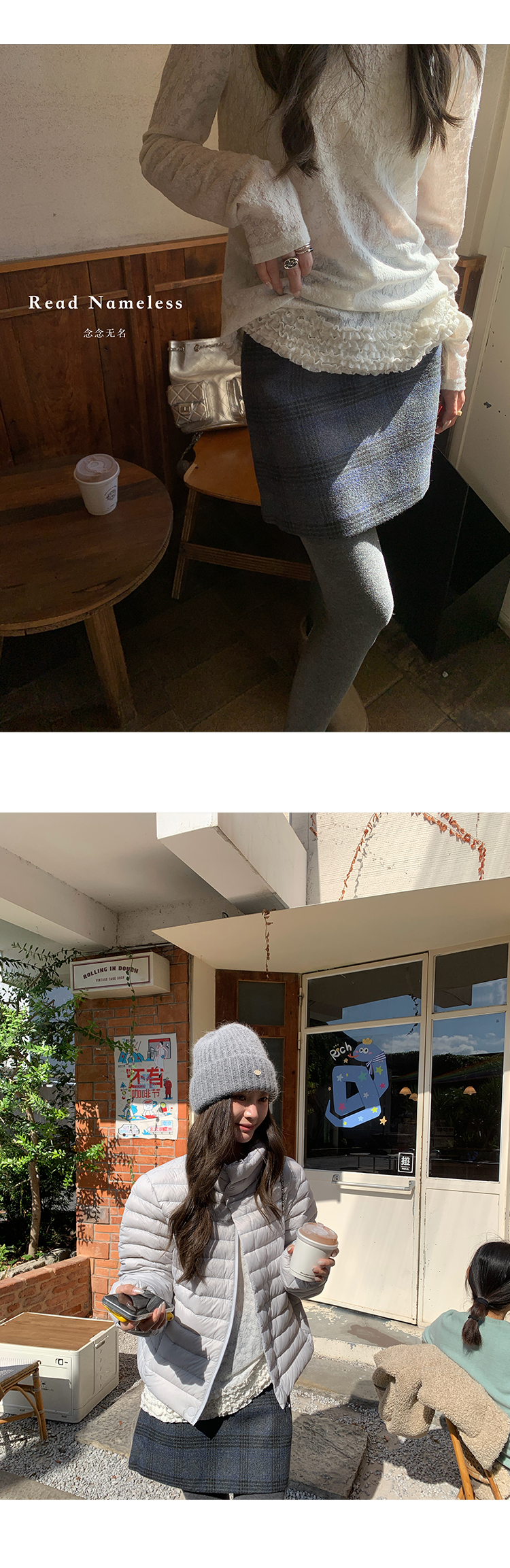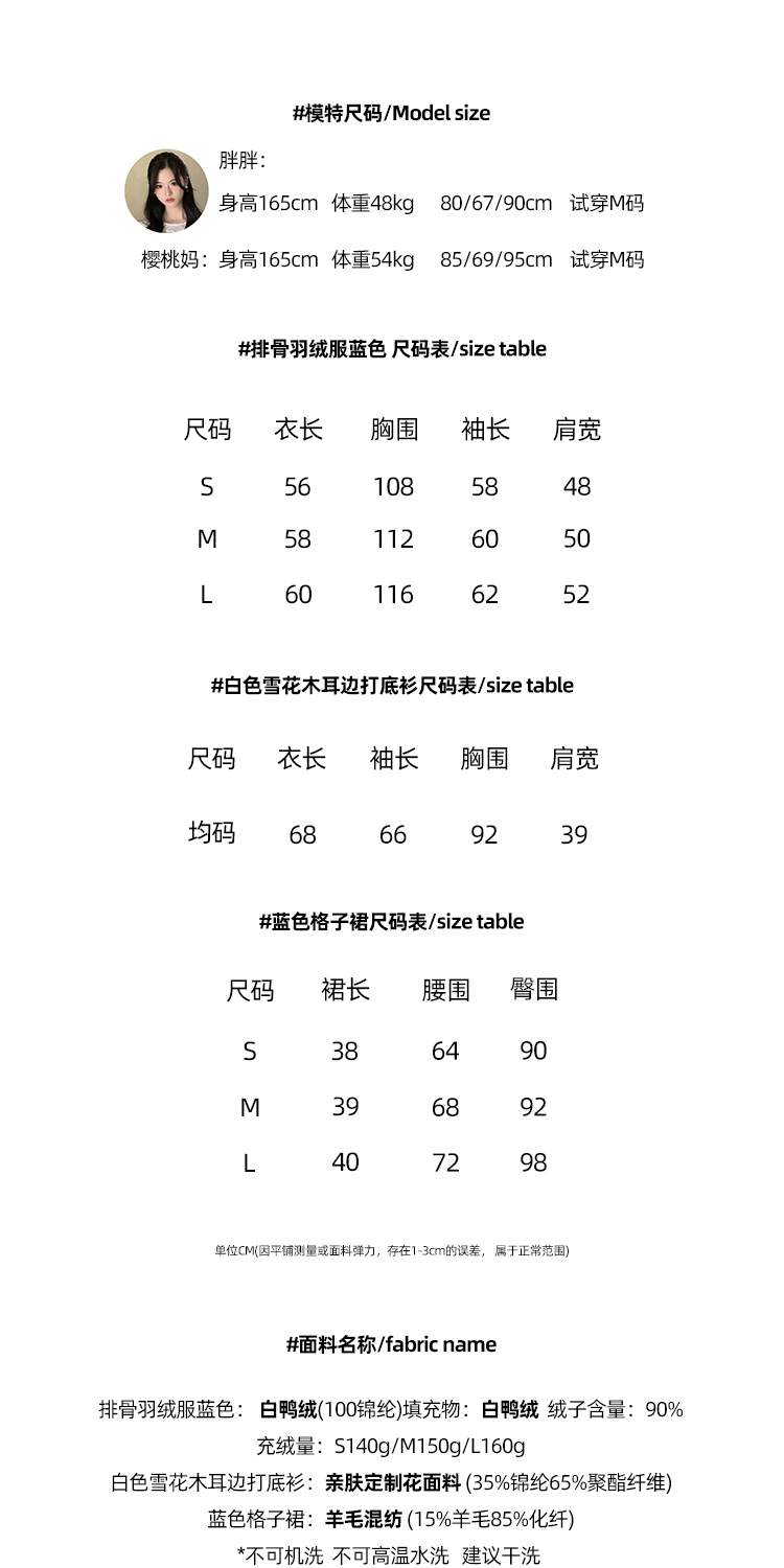 Read Nameless /排骨羽绒服蓝色+白色雪花木耳边打底衫+蓝色格子裙 2025/11/1