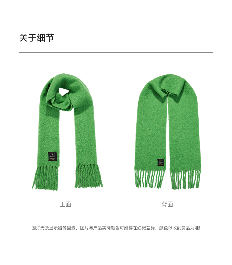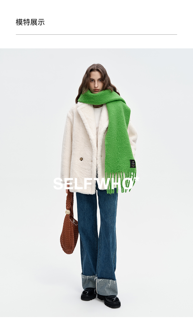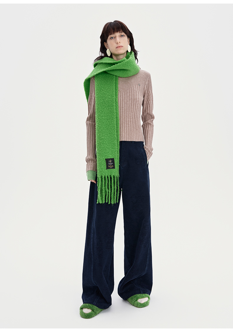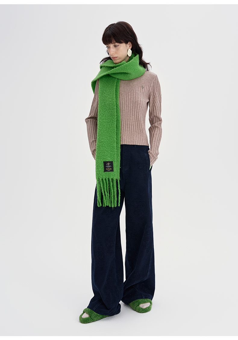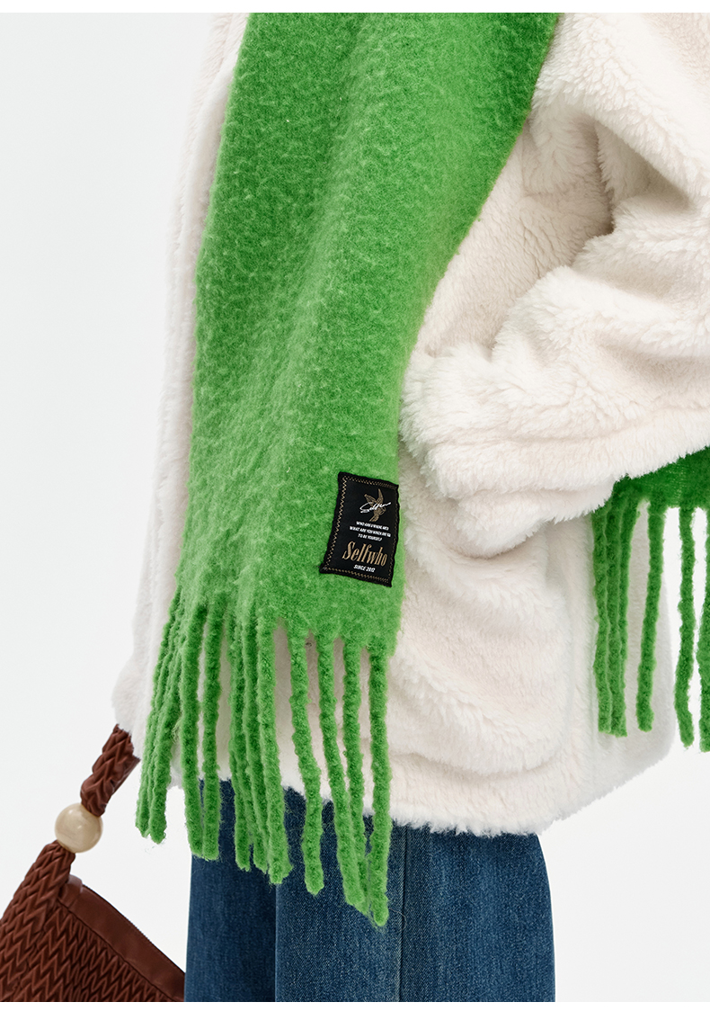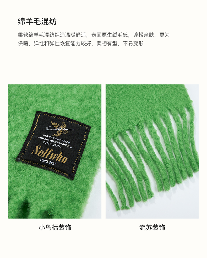SELFWHO绵羊毛混纺绿色流苏围巾女款2024秋冬新款高级感保暖披肩