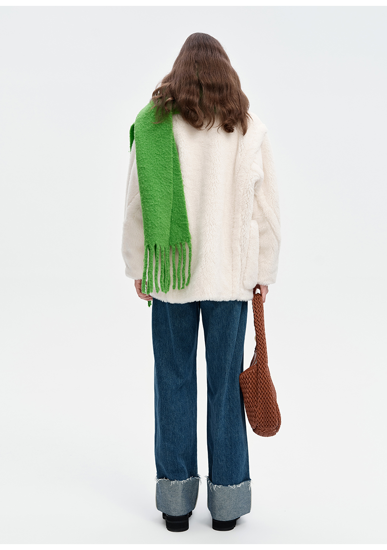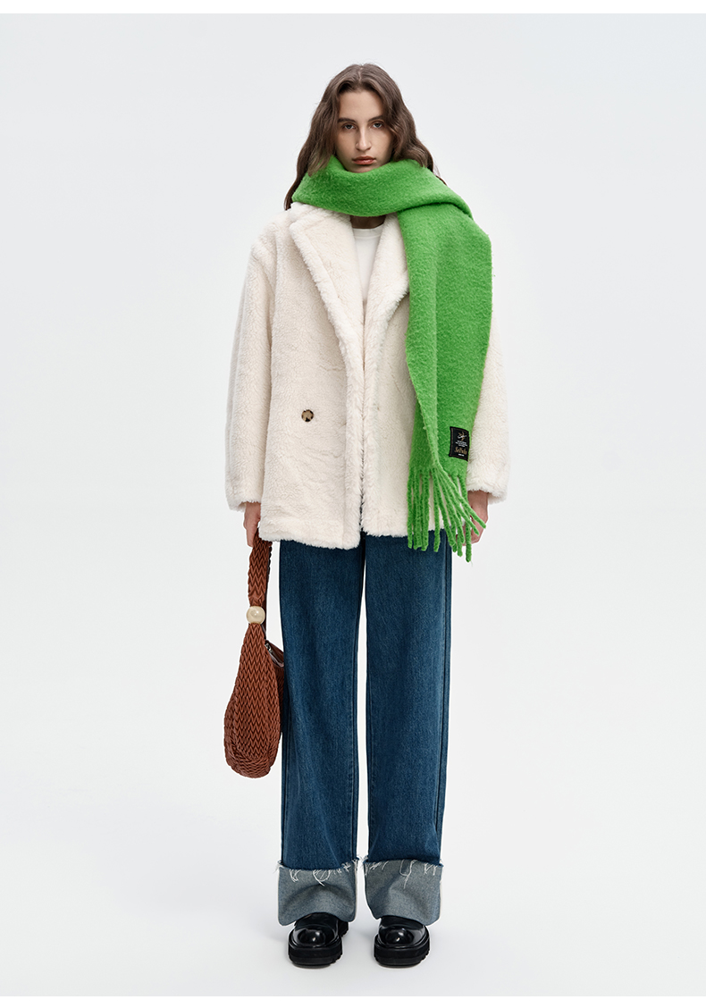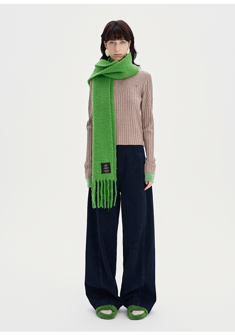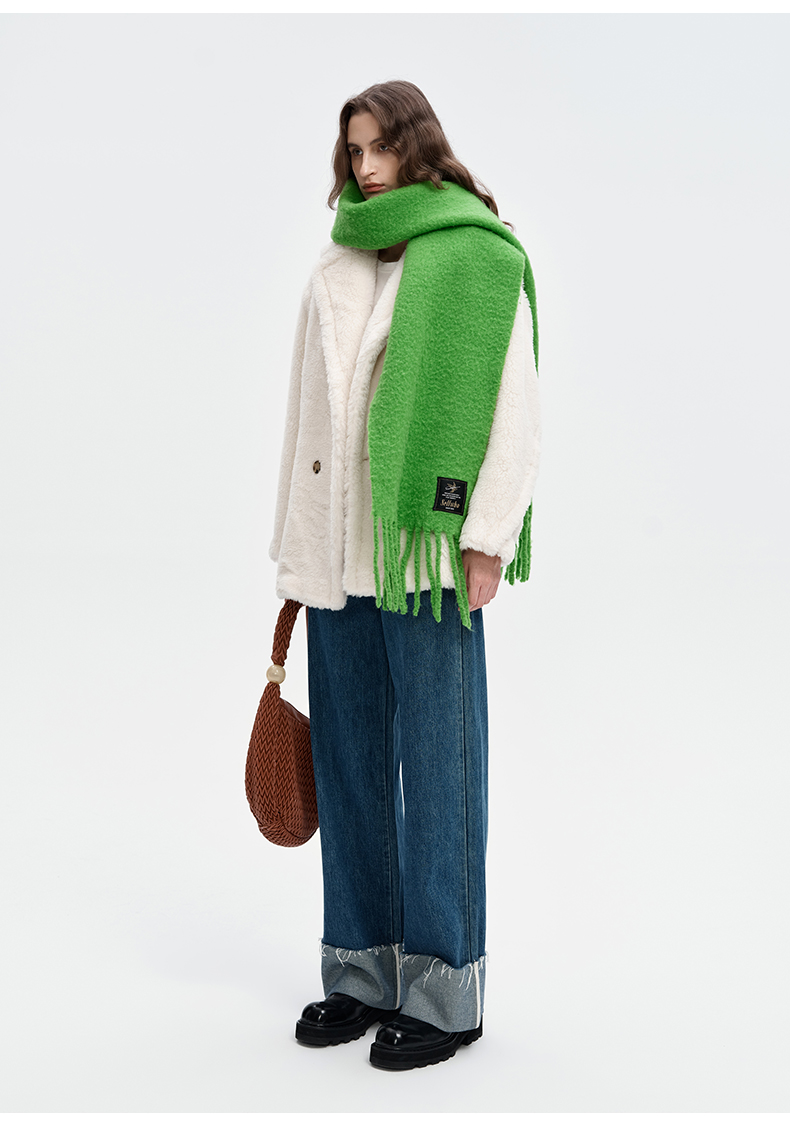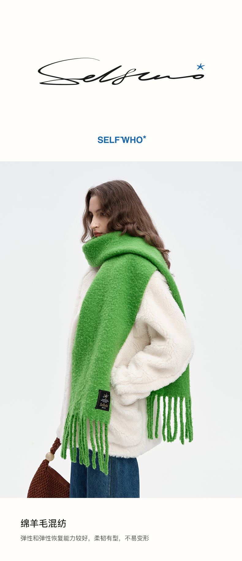 SELFWHO绵羊毛混纺绿色流苏围巾女款2024秋冬新款高级感保暖披肩