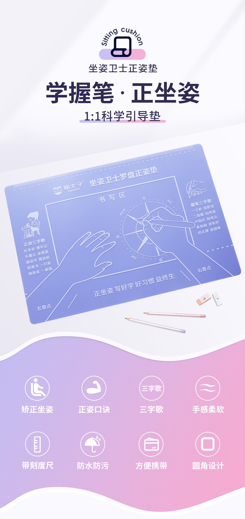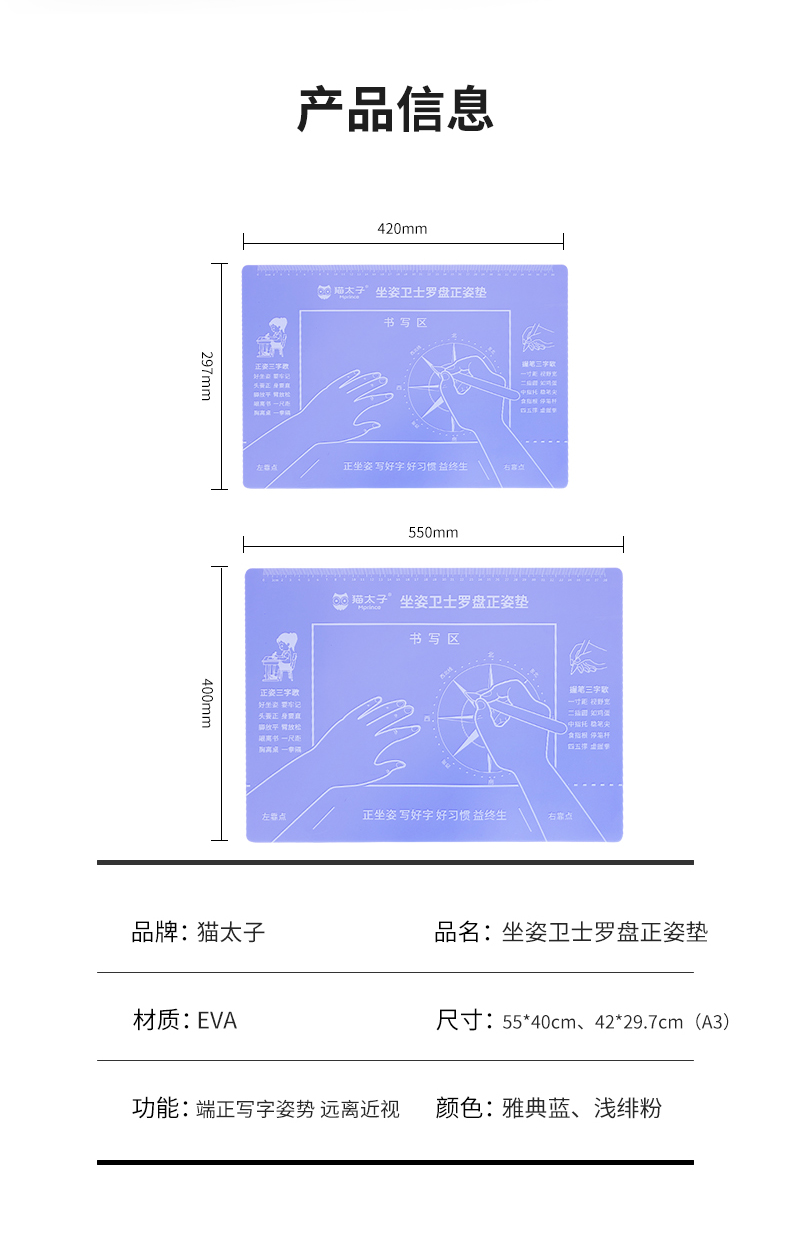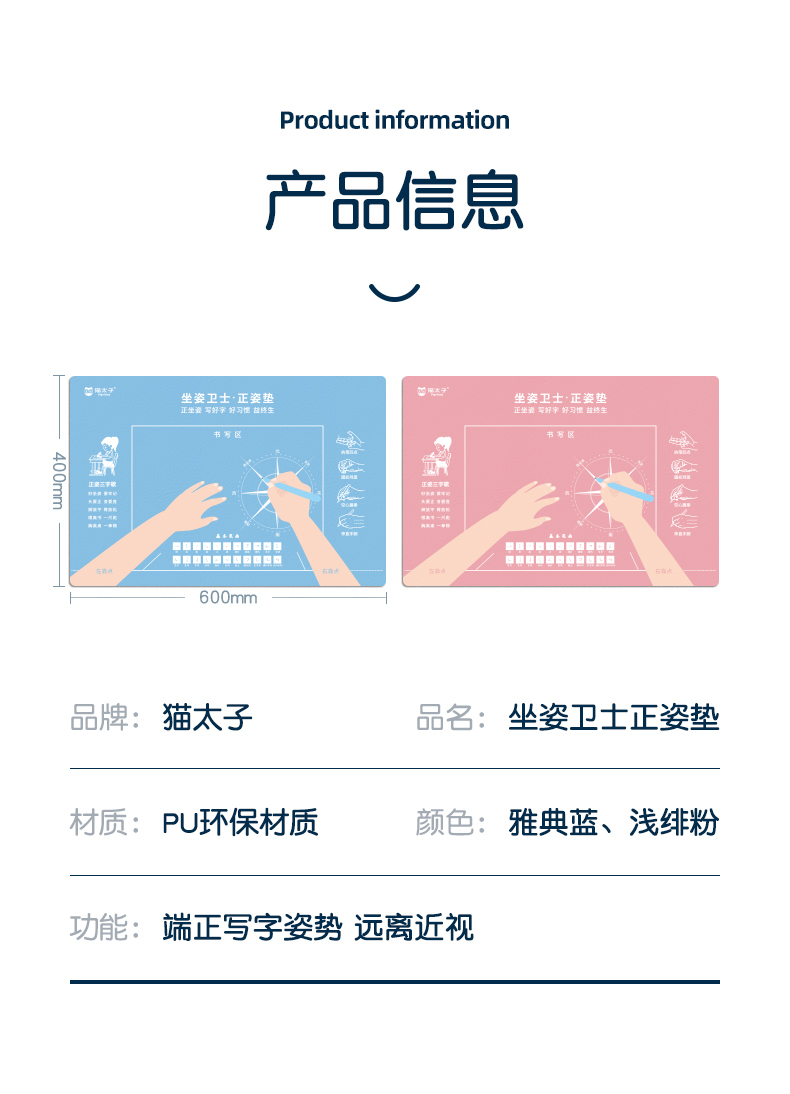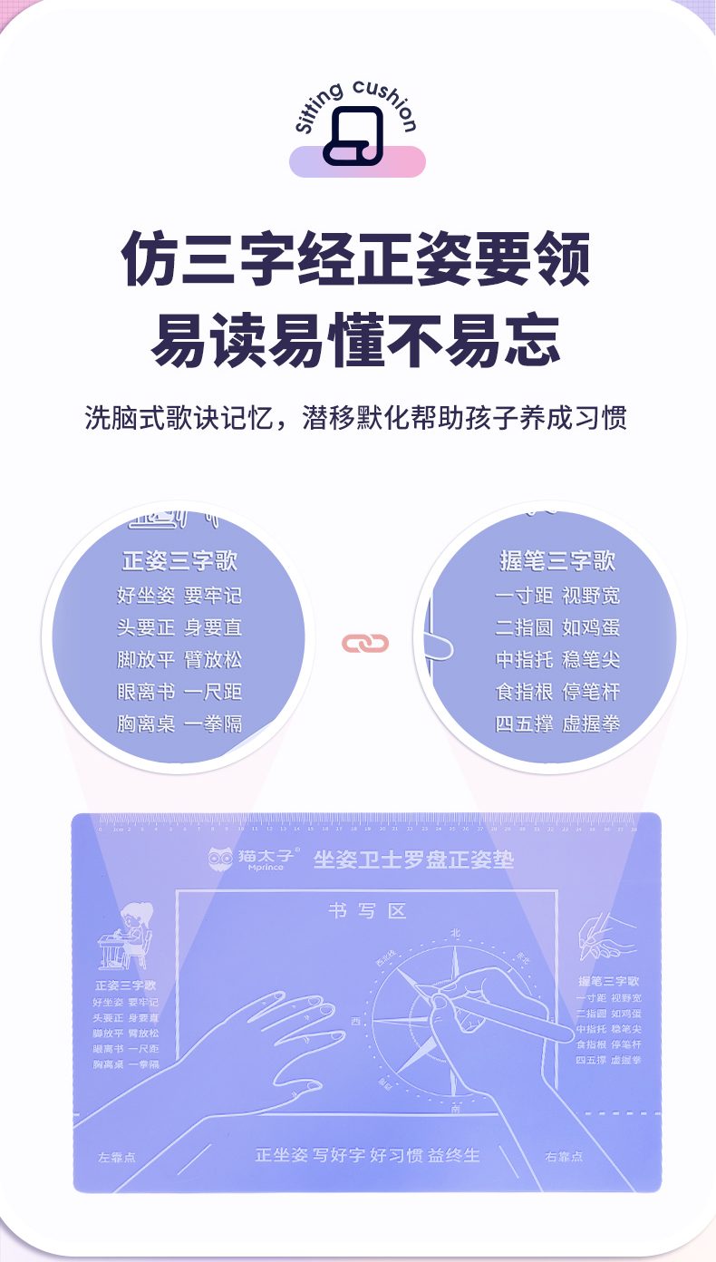 猫太子正姿垫小学生坐姿纠正儿童预防近视暖桌垫视力保护器