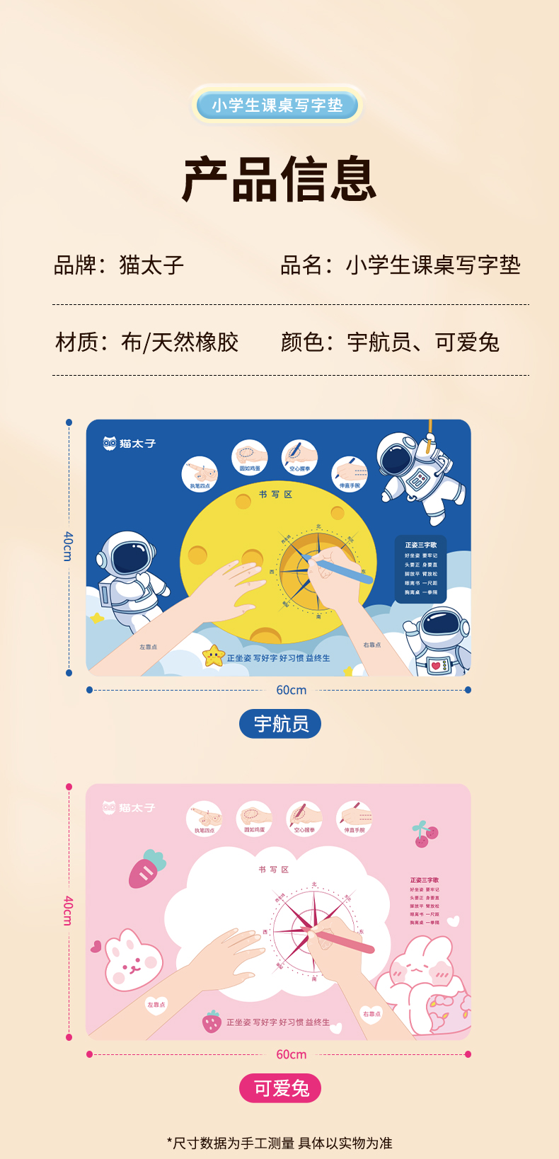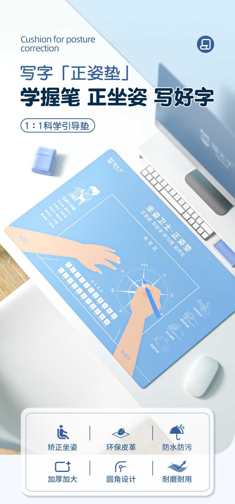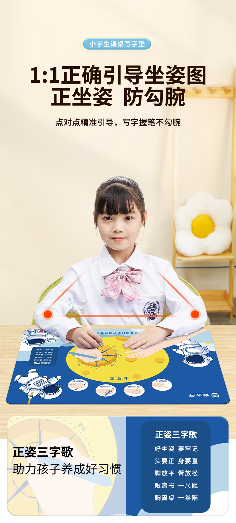 猫太子正姿垫小学生坐姿纠正儿童预防近视暖桌垫视力保护器