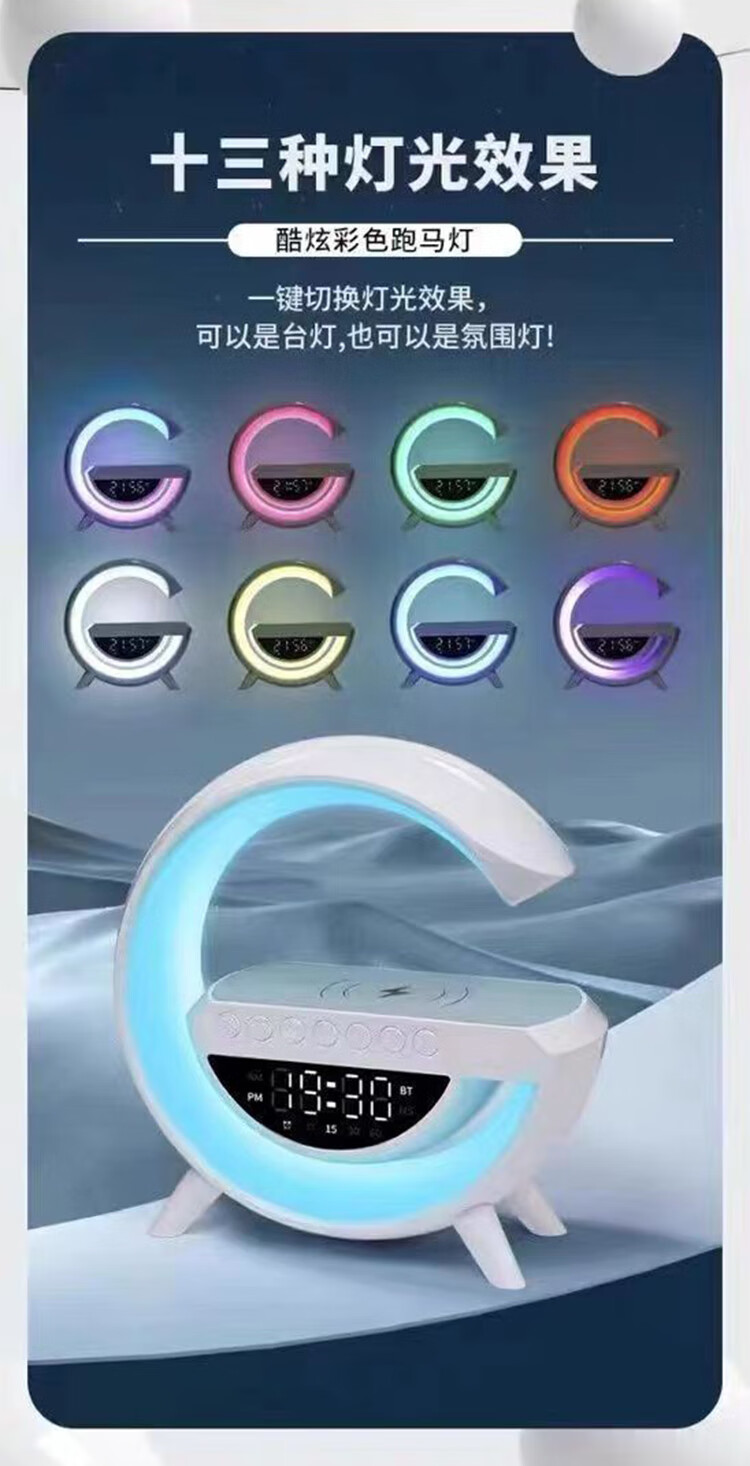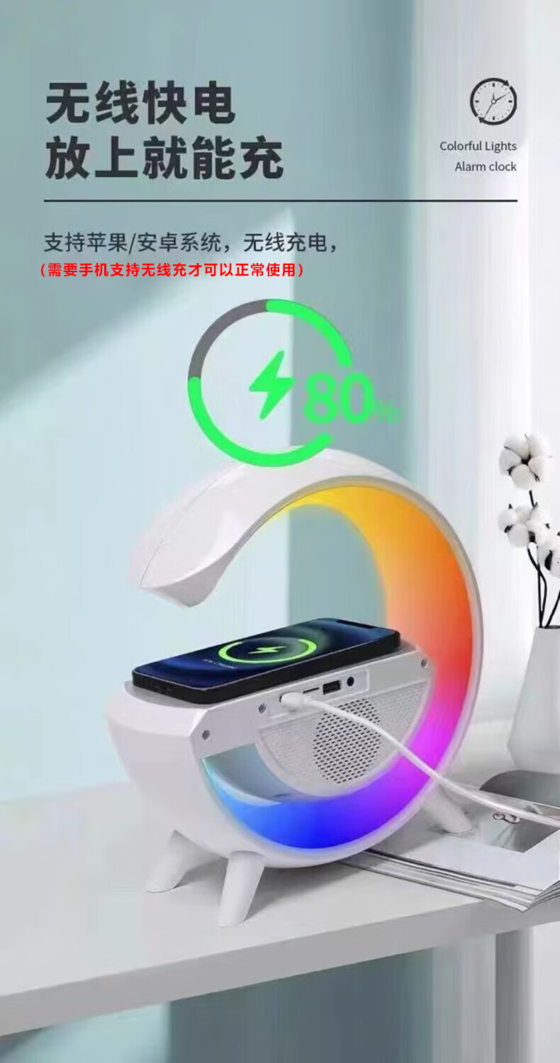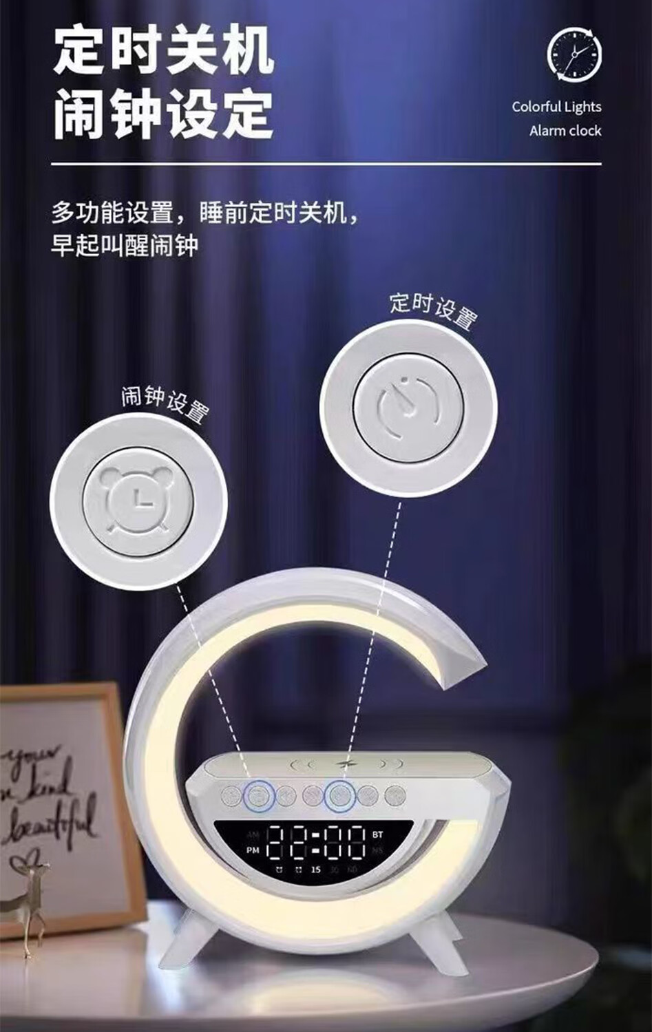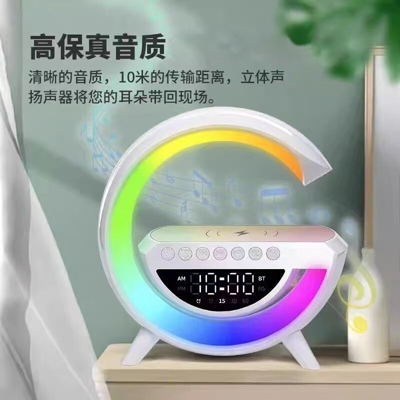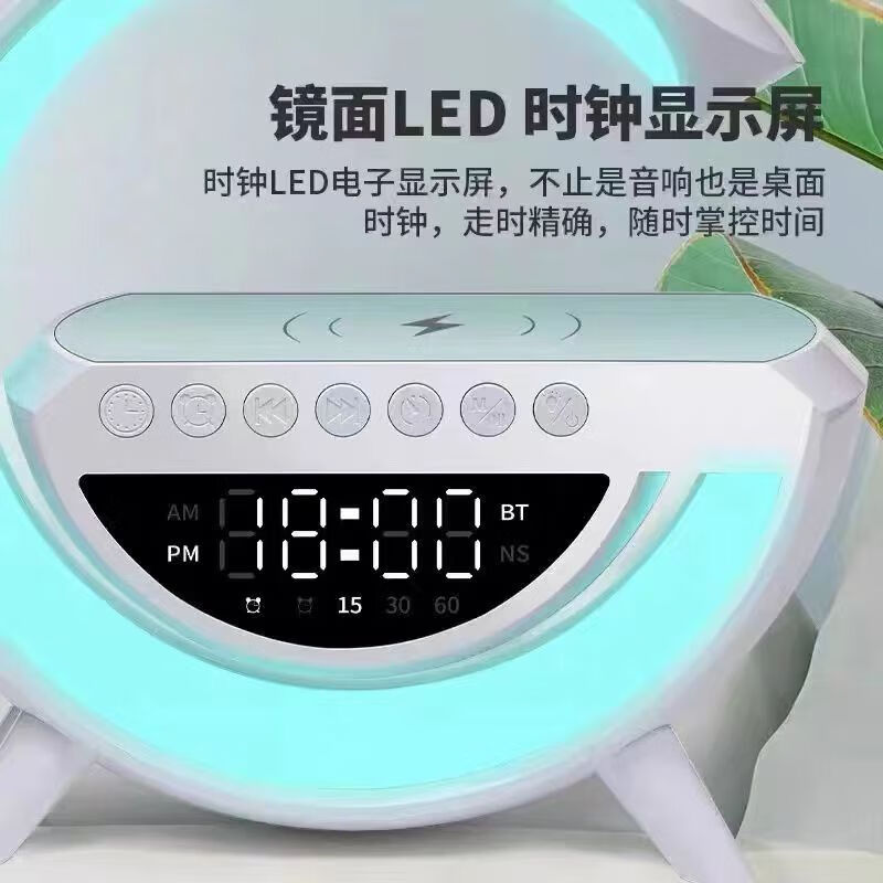积分免费兑:冶芷【充电款】智能闹钟学生无线充时钟蓝牙音响低音炮氛围灯生日礼物桌面摆件 无线充【BT-3401大G带数显】