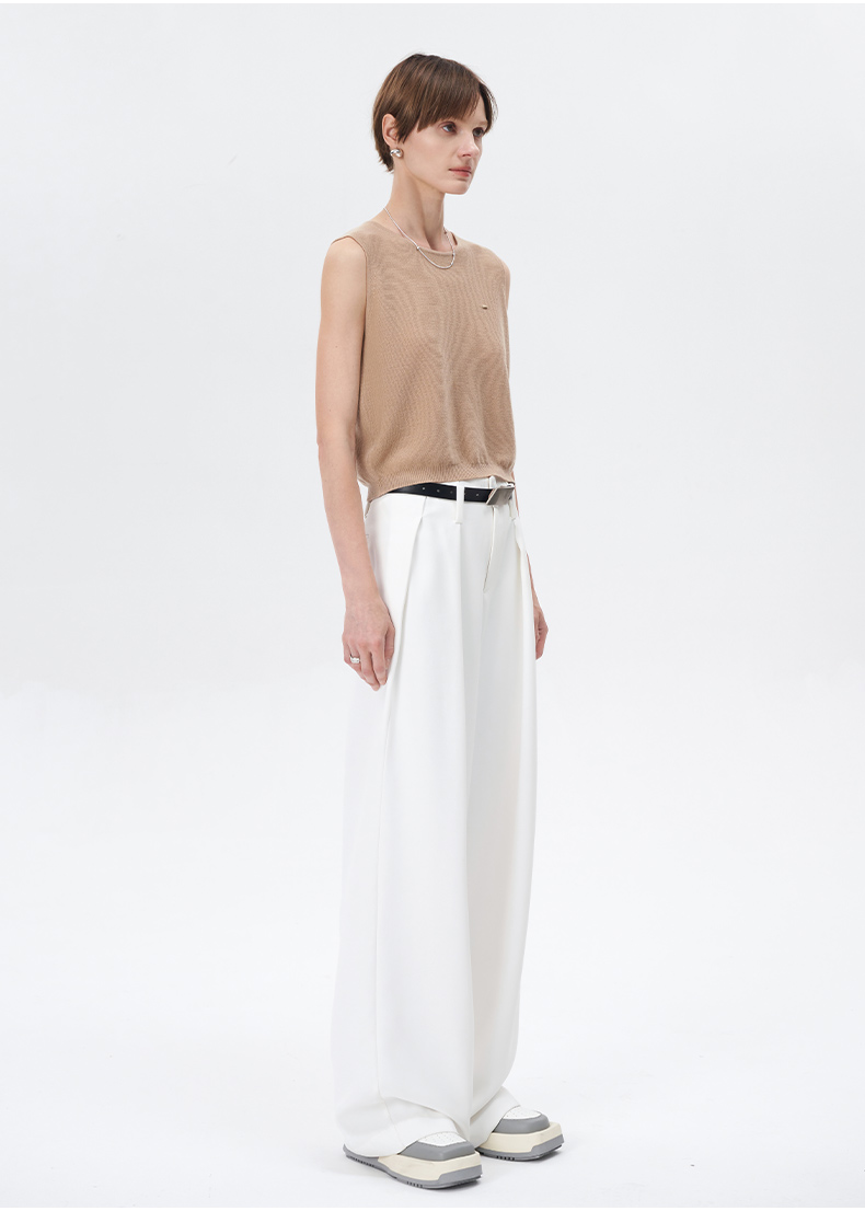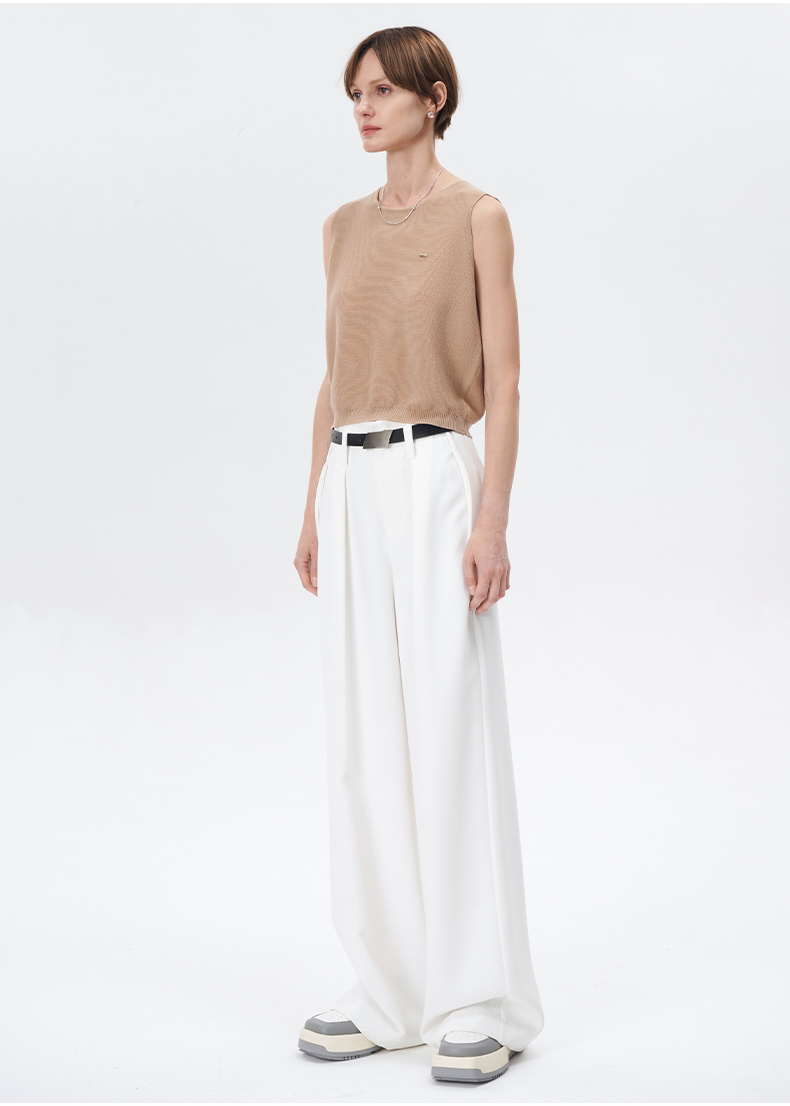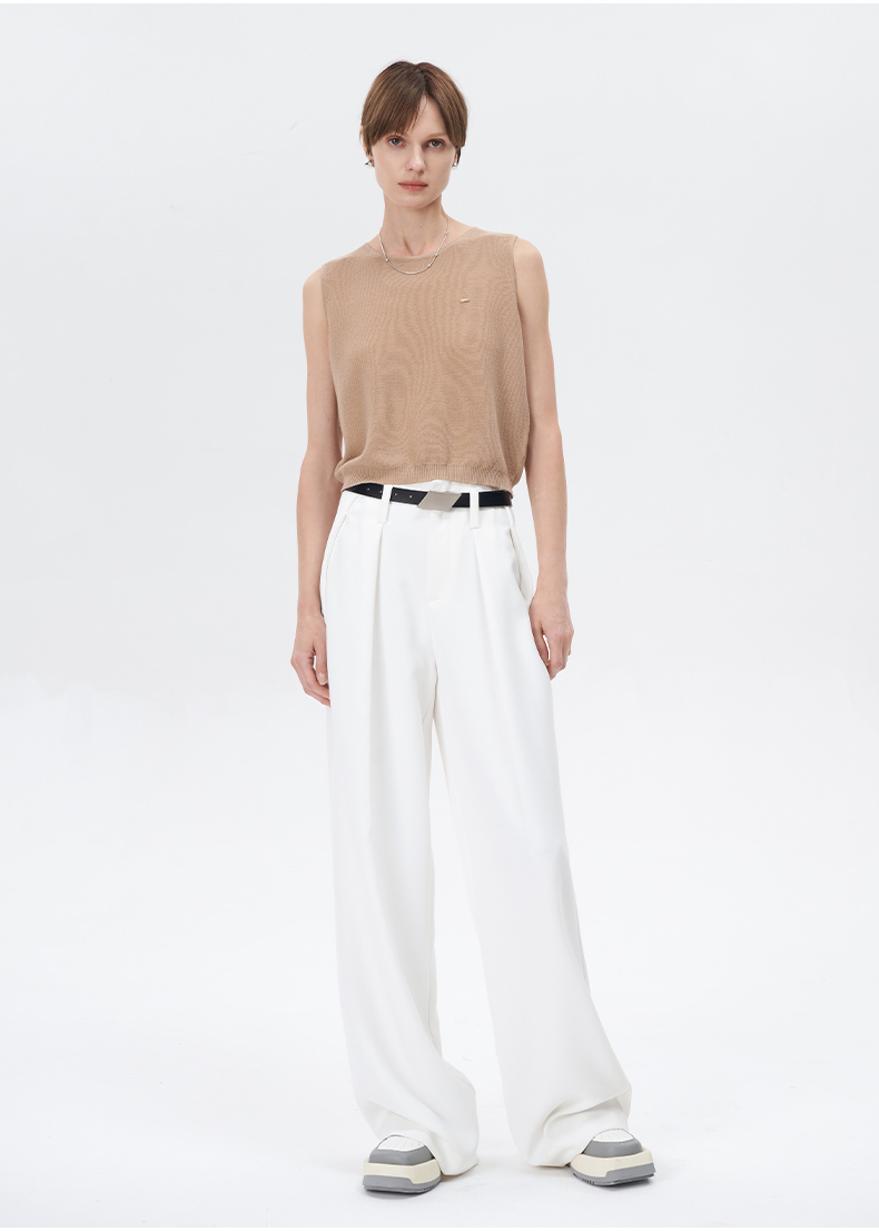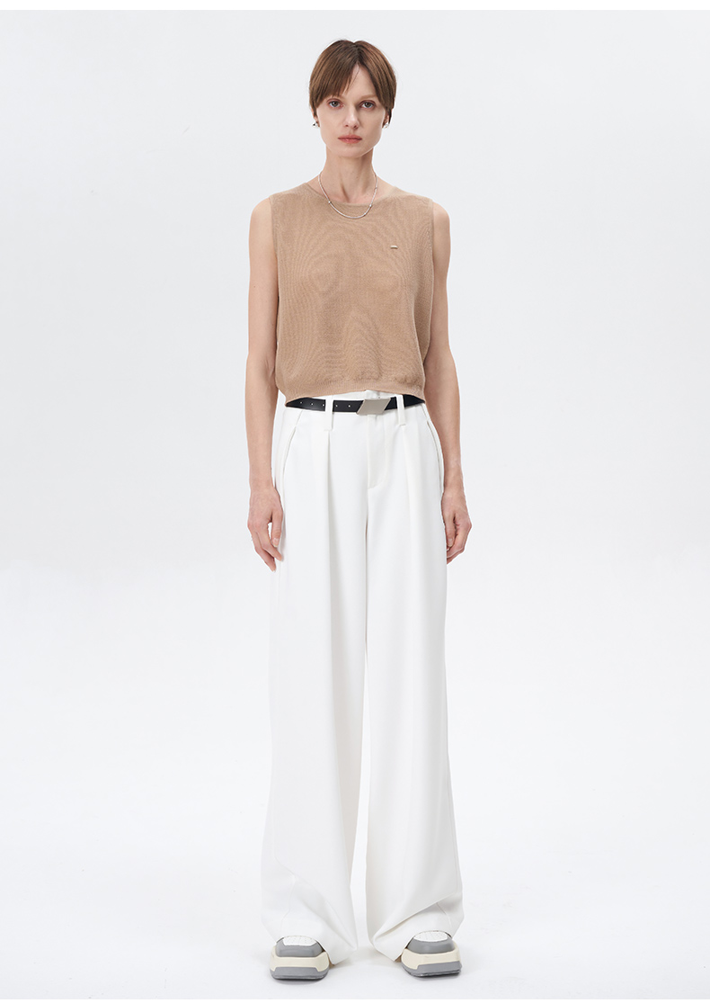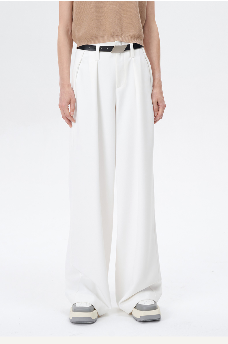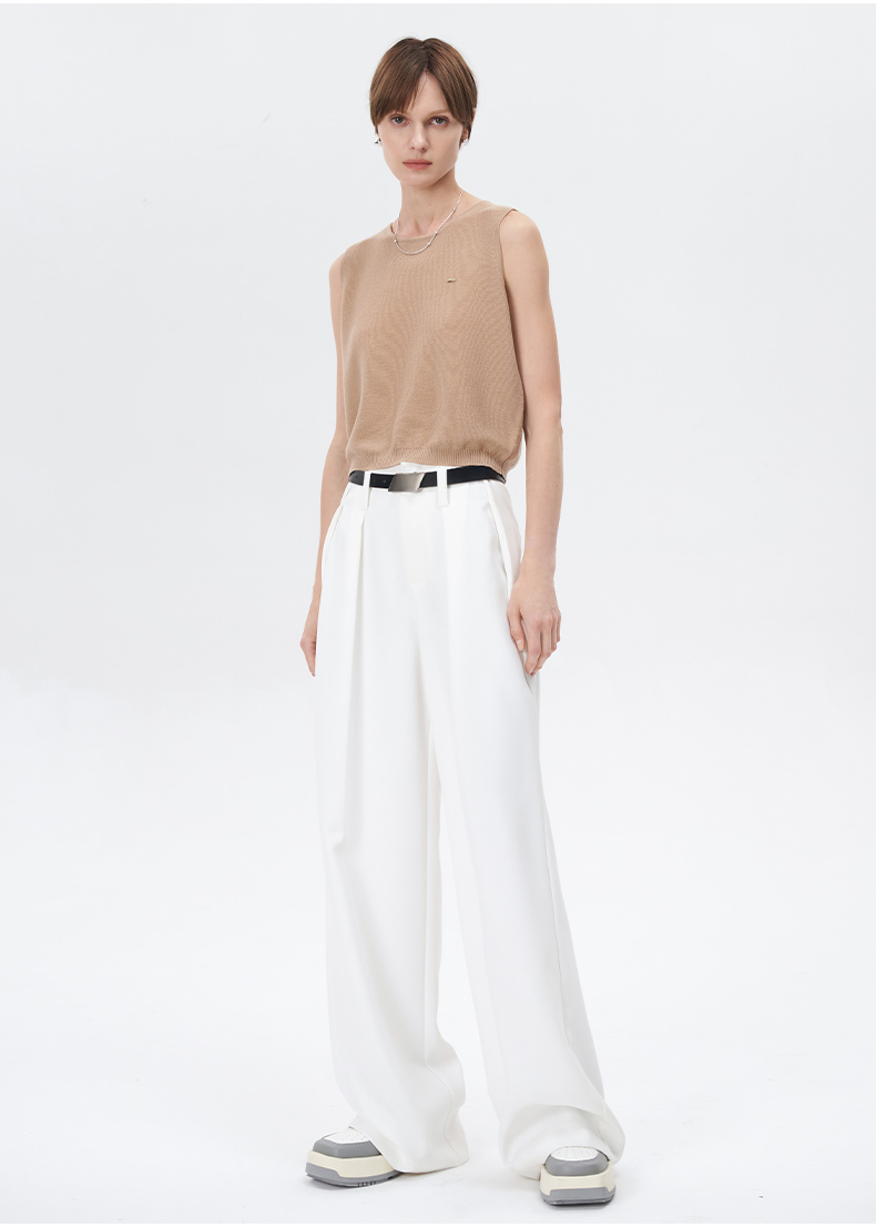 Self Who白色休闲长裤女2023新款夏季薄款小众设计感直筒阔腿裤子