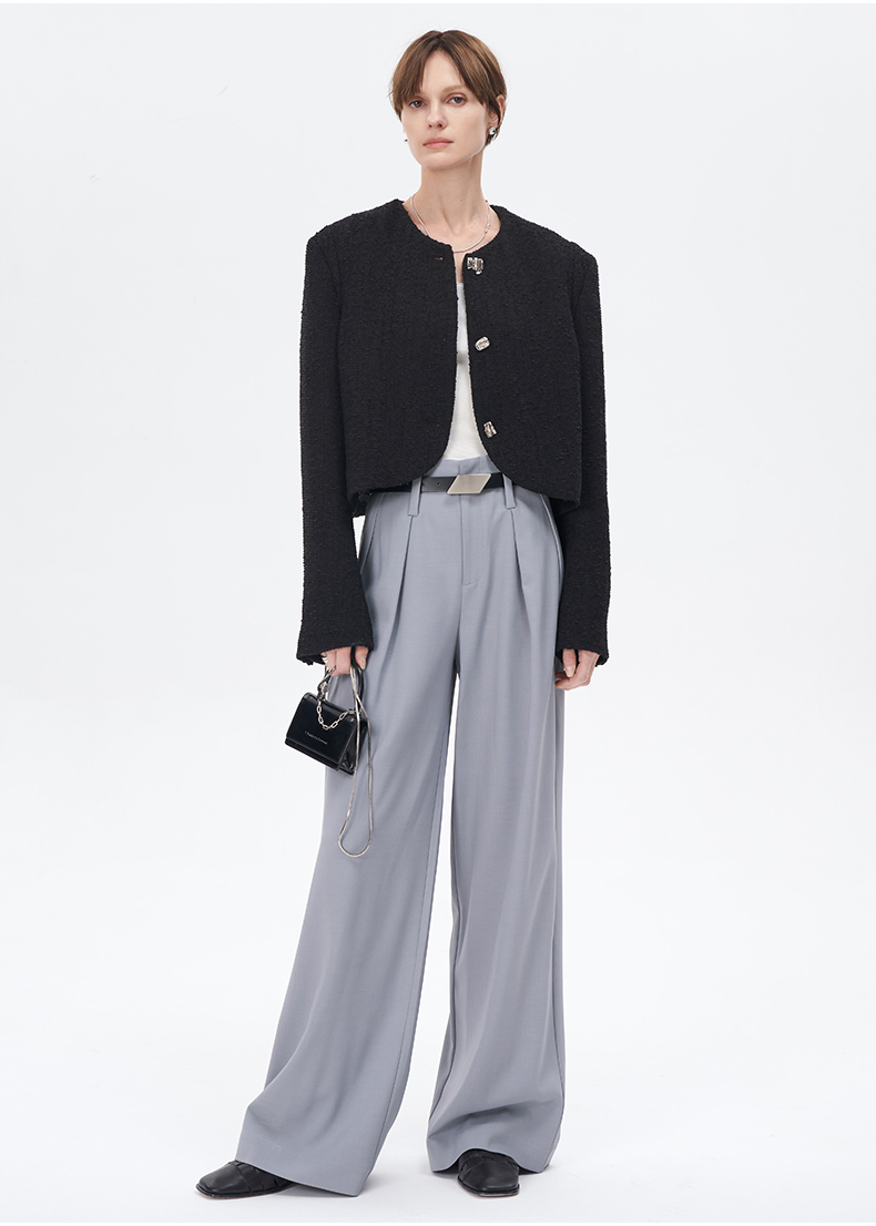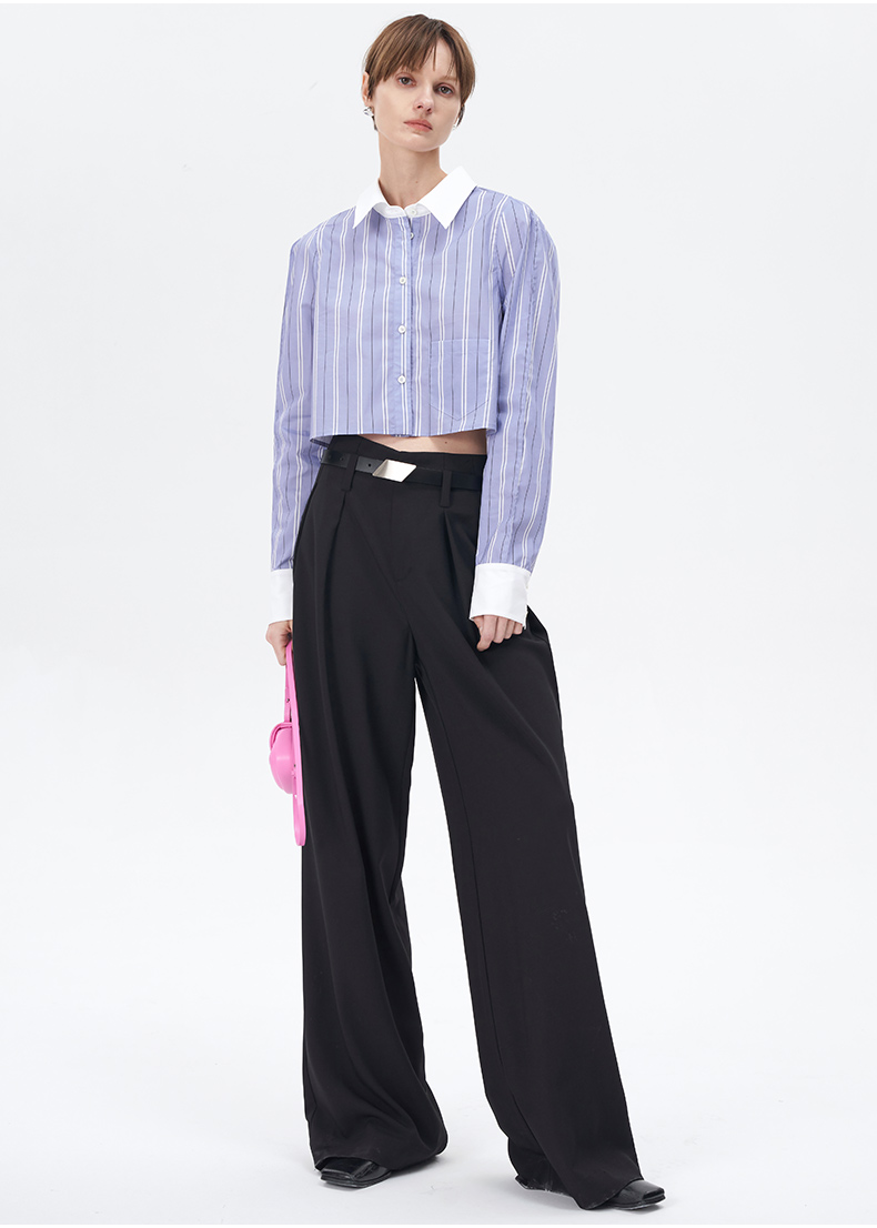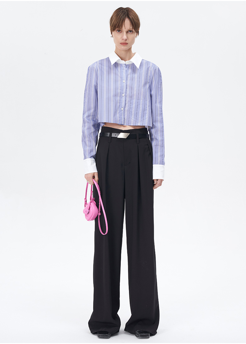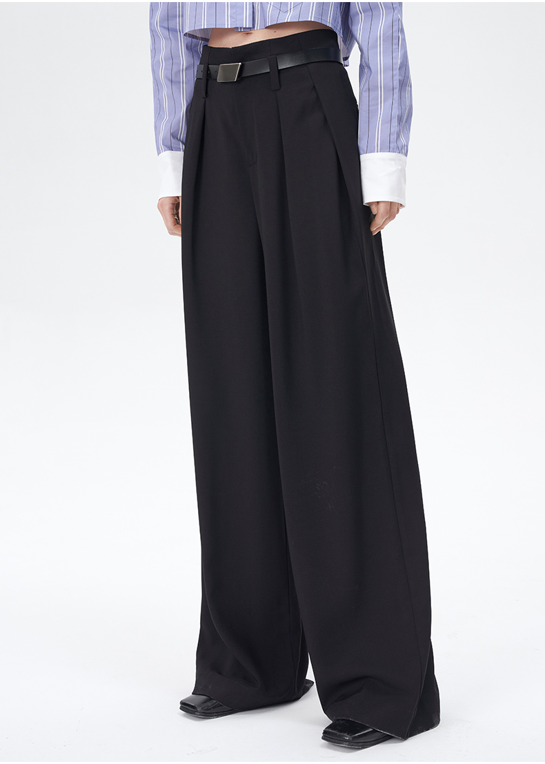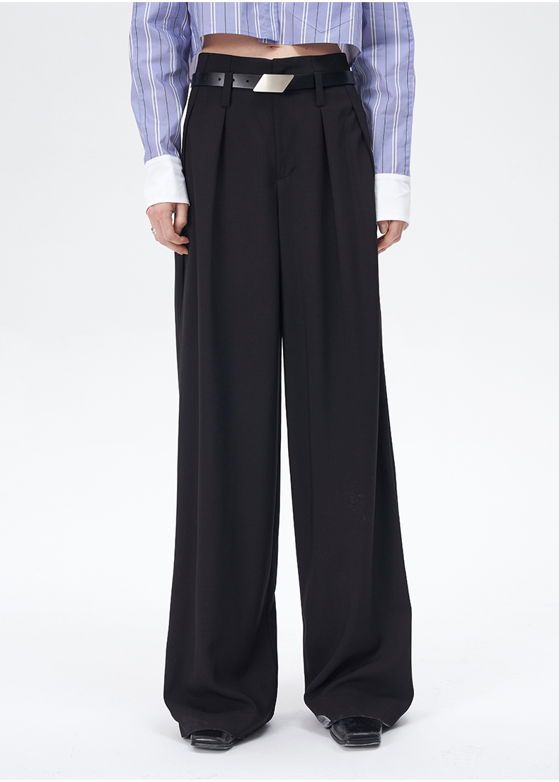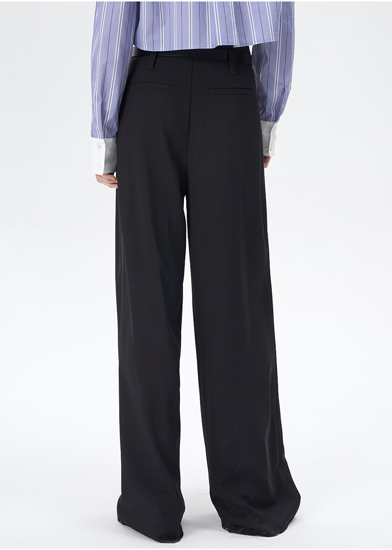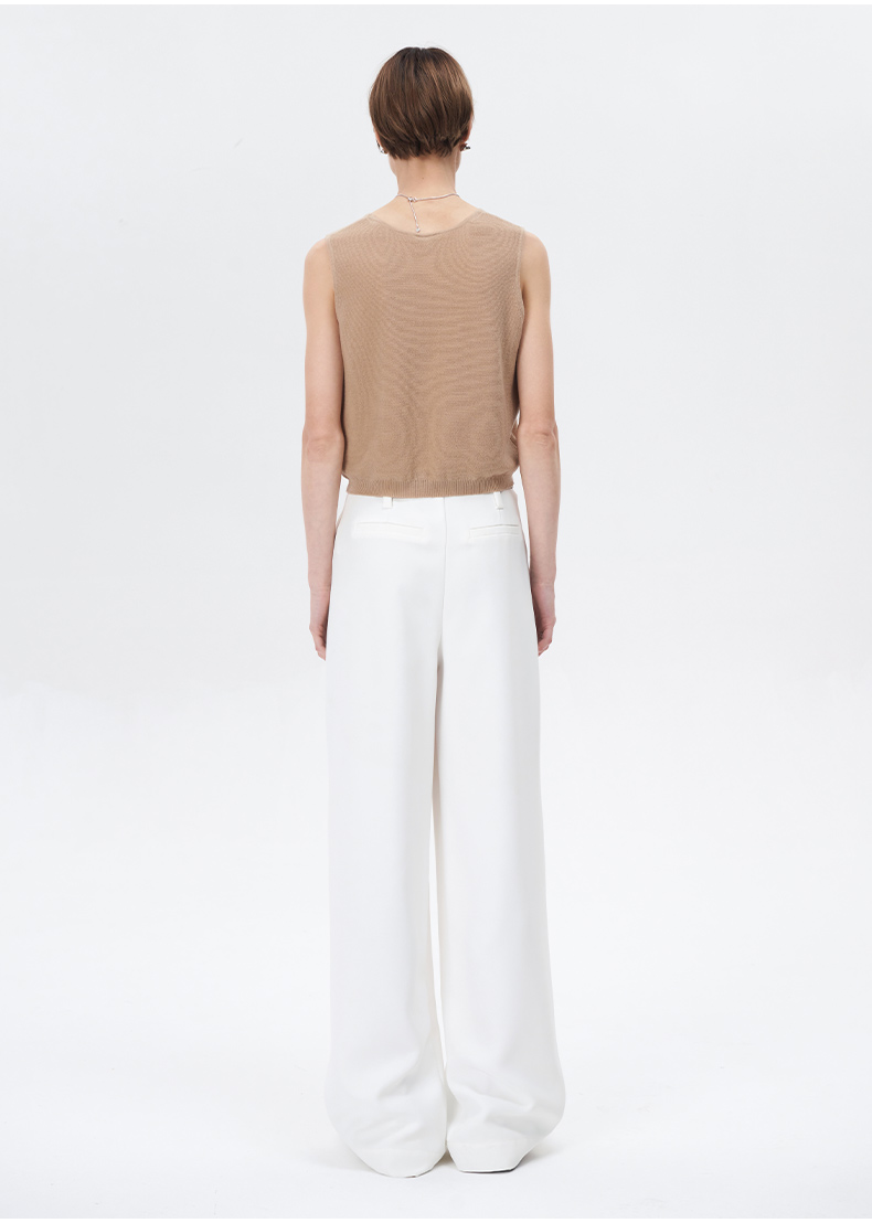 Self Who白色休闲长裤女2023新款夏季薄款小众设计感直筒阔腿裤子