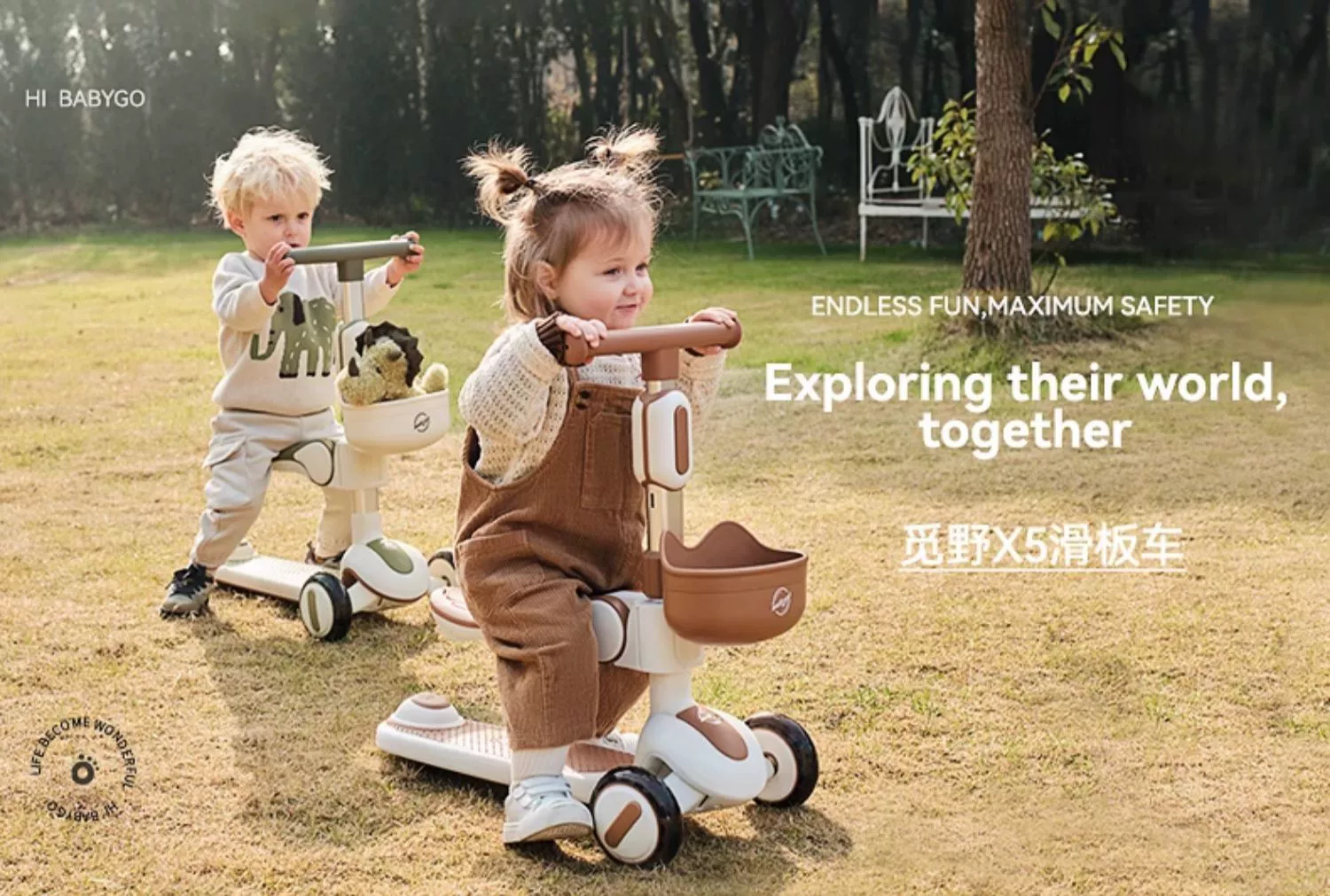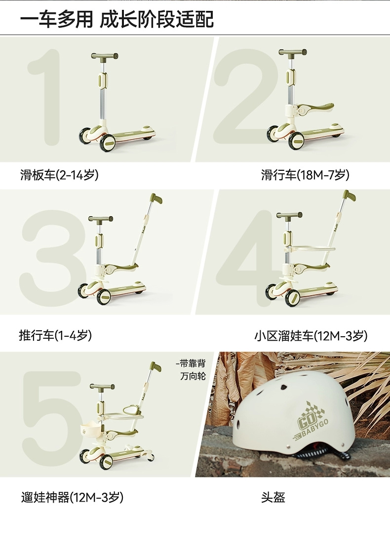 【赠送雨伞 先到先得】BabyGo 觅野X5儿童滑板车 八合一款