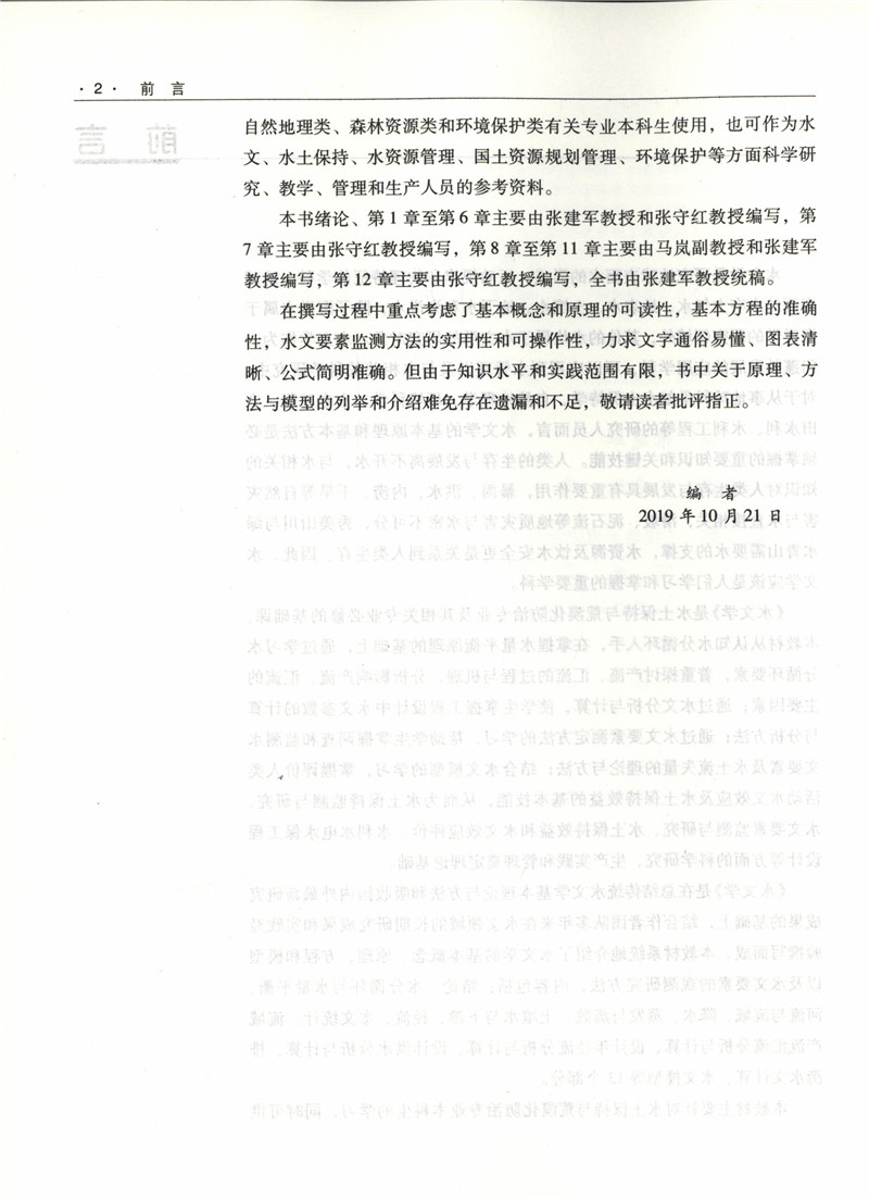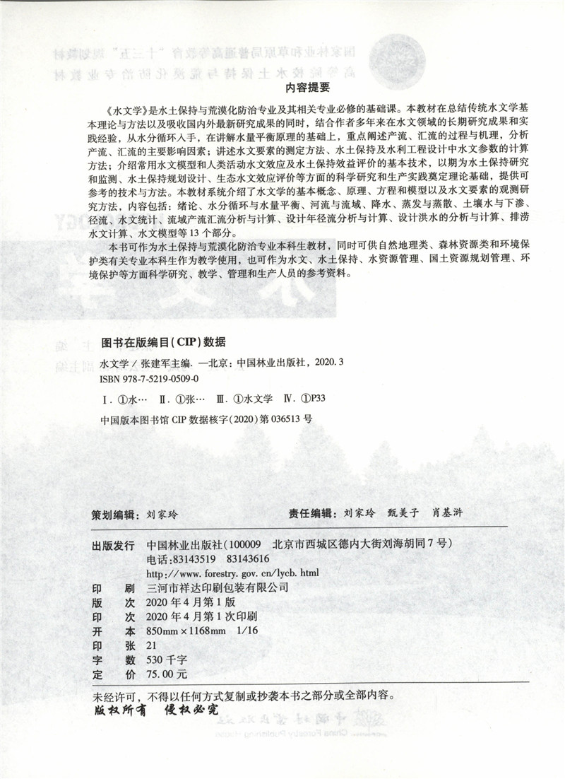 水文学 0509 张建军主编 国家林业和草原局普通高等教育十三五规划教材 高等院校水土保持与荒漠化防治专*教材 中国林业出版社