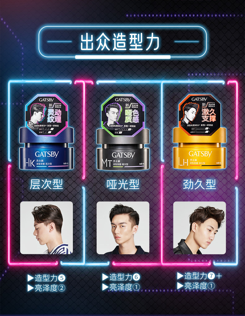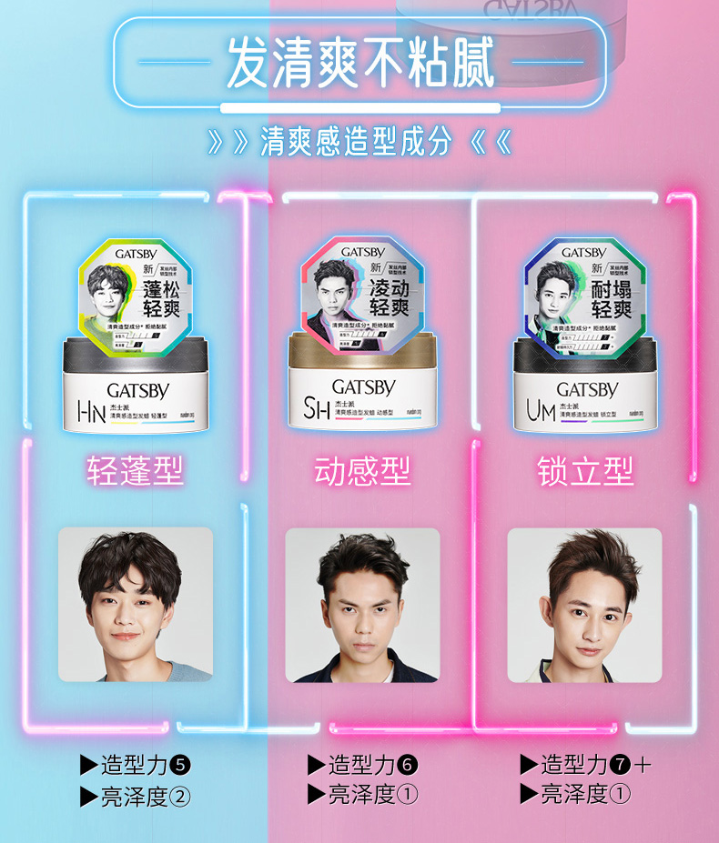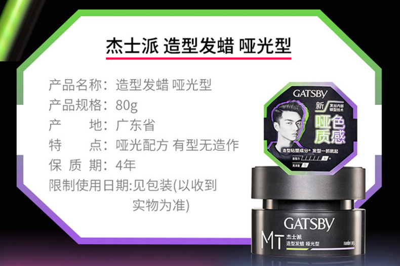 杰士派(GATSBY)造型发蜡哑光清爽蓬松男士碎发保湿定型造型 80g/盒