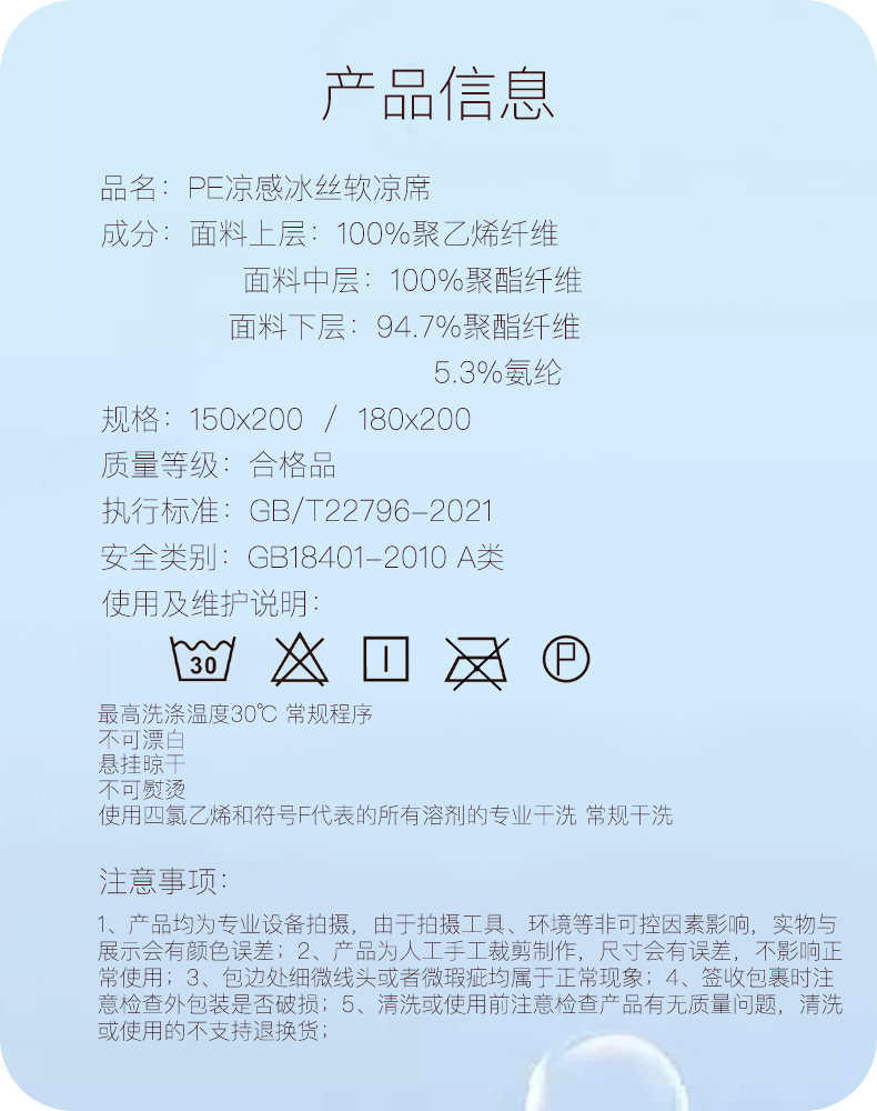 【新升级PE小冰块凉席 】全新黑科技凉感技术 清凉一夏 凉而不冰 带来不一样的睡眠新体验 枕套需要单独拍