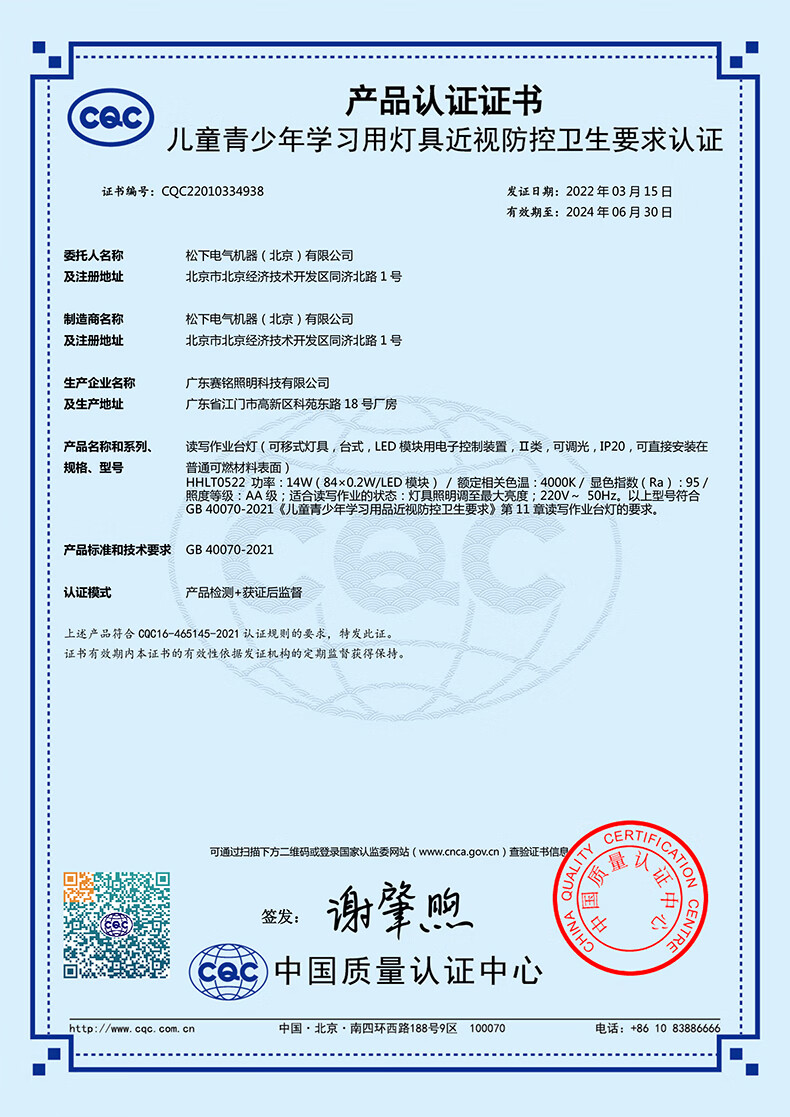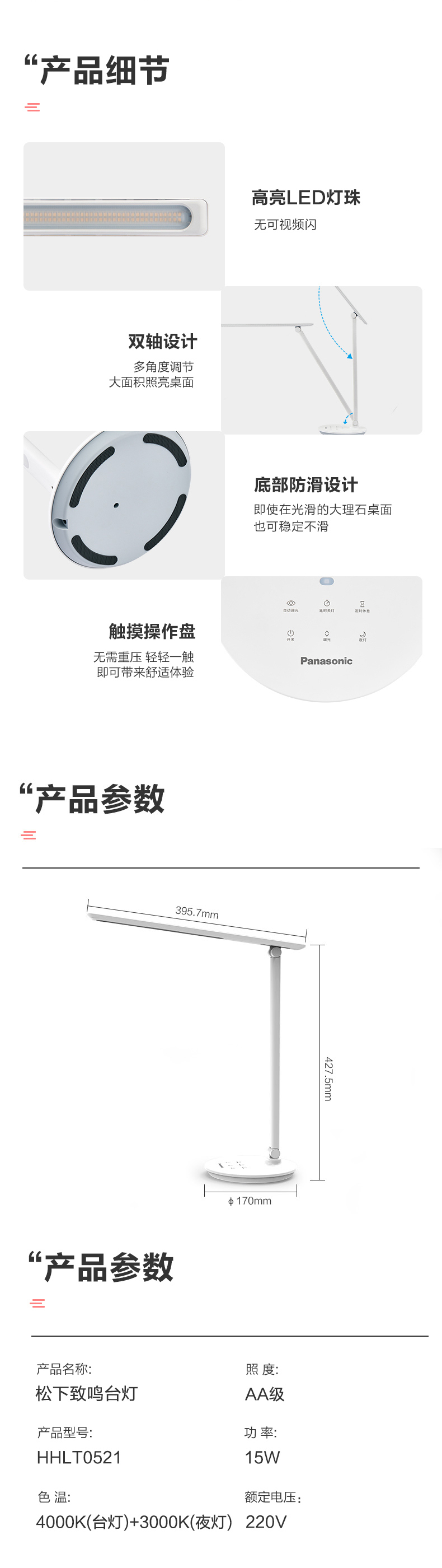 松下(Panasonic)儿童护眼台灯 减蓝光 HHLT0522