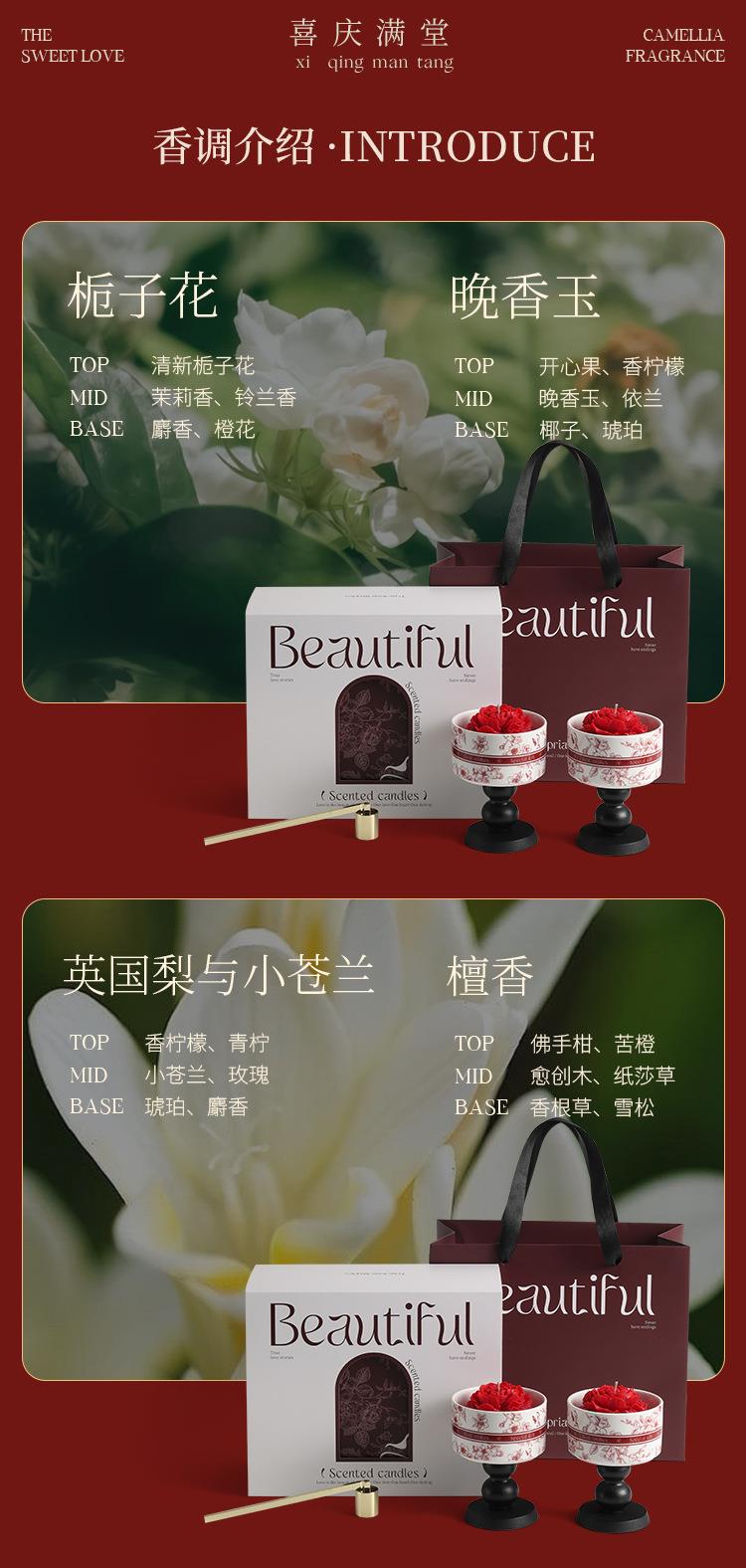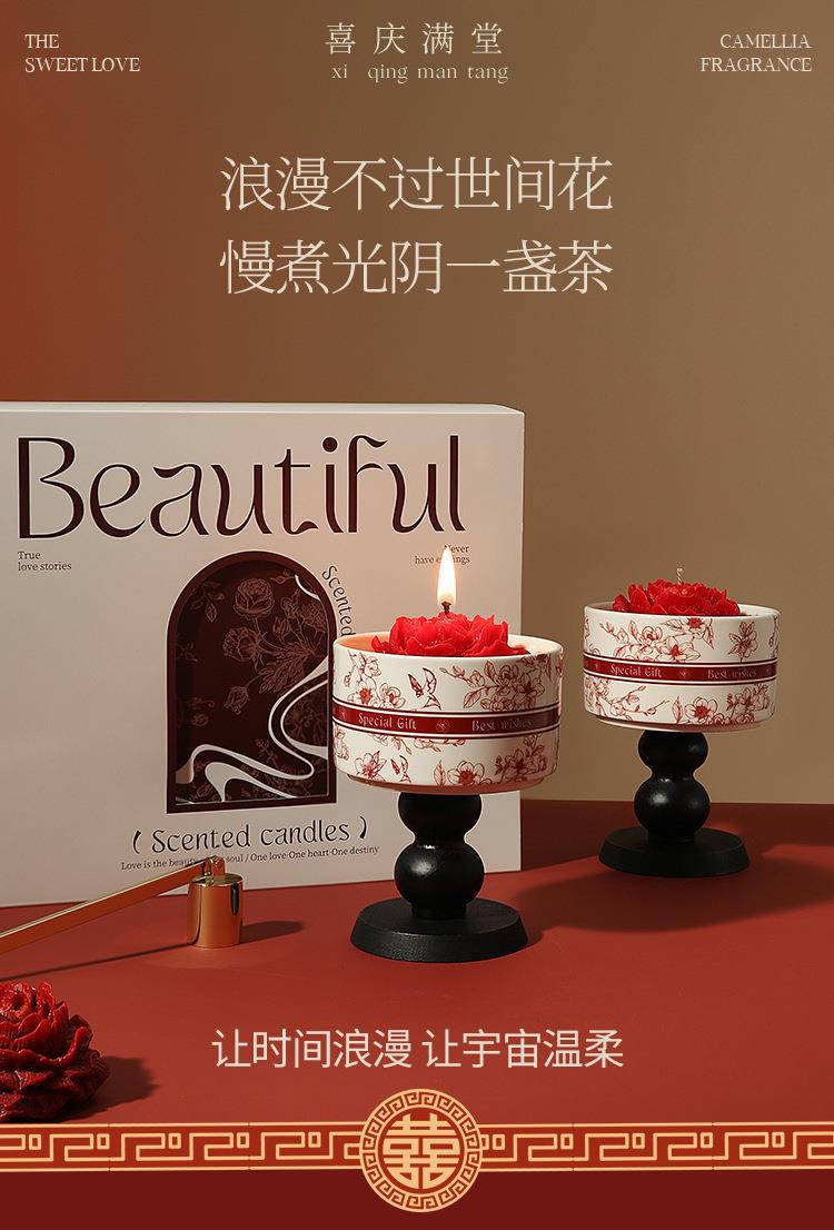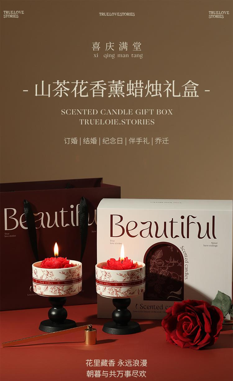 【喜上枝头香薰蜡烛山茶花礼盒】订婚伴手礼新婚乔迁高级感情人节礼物
