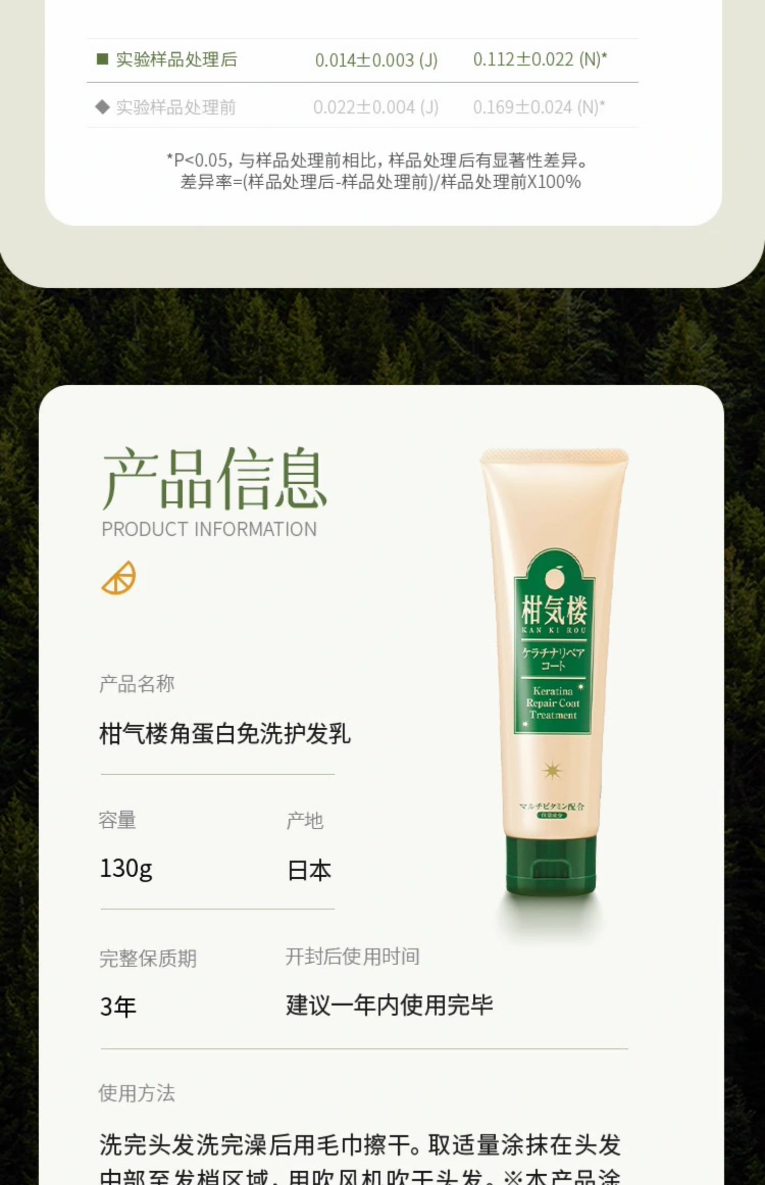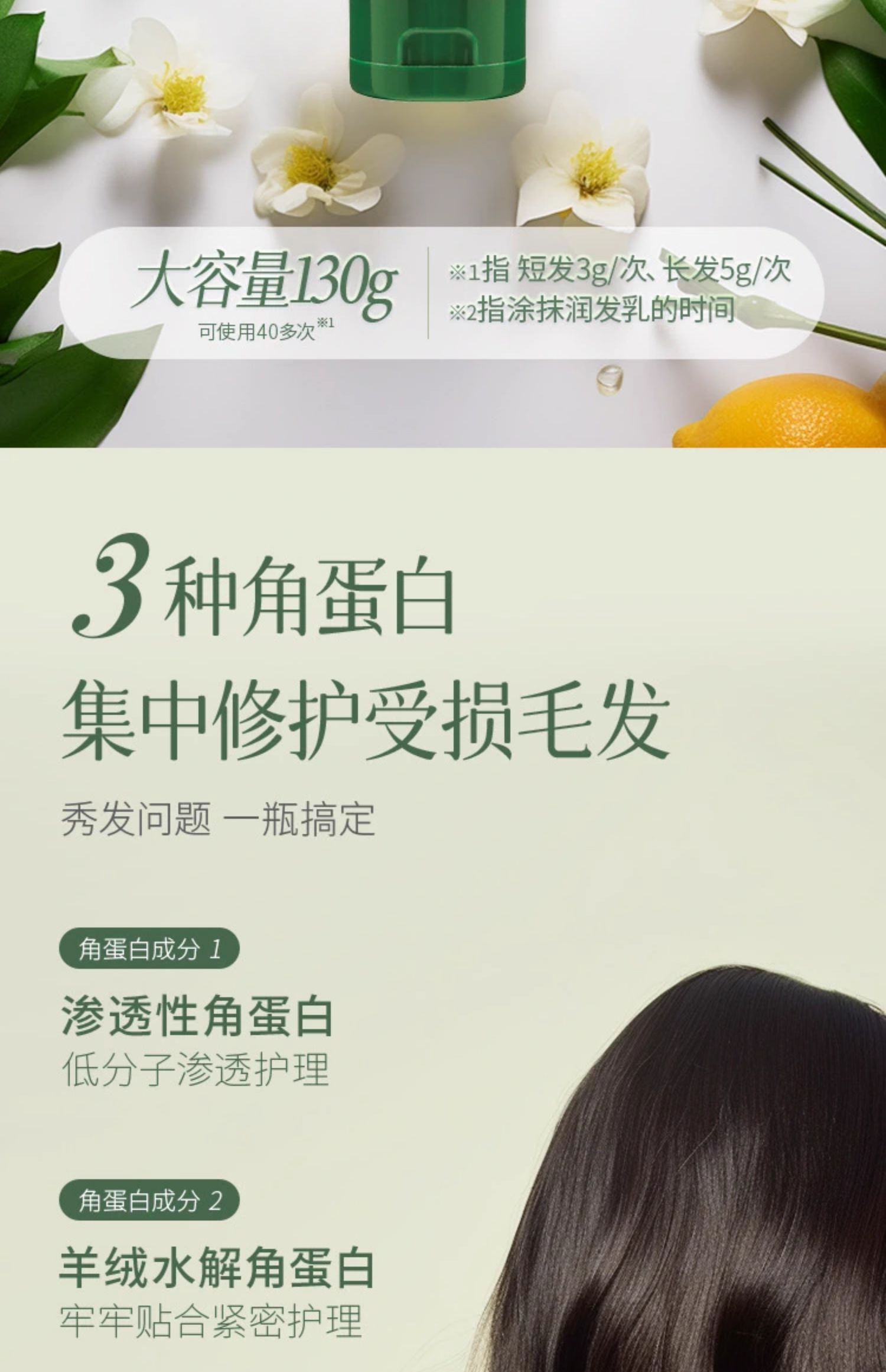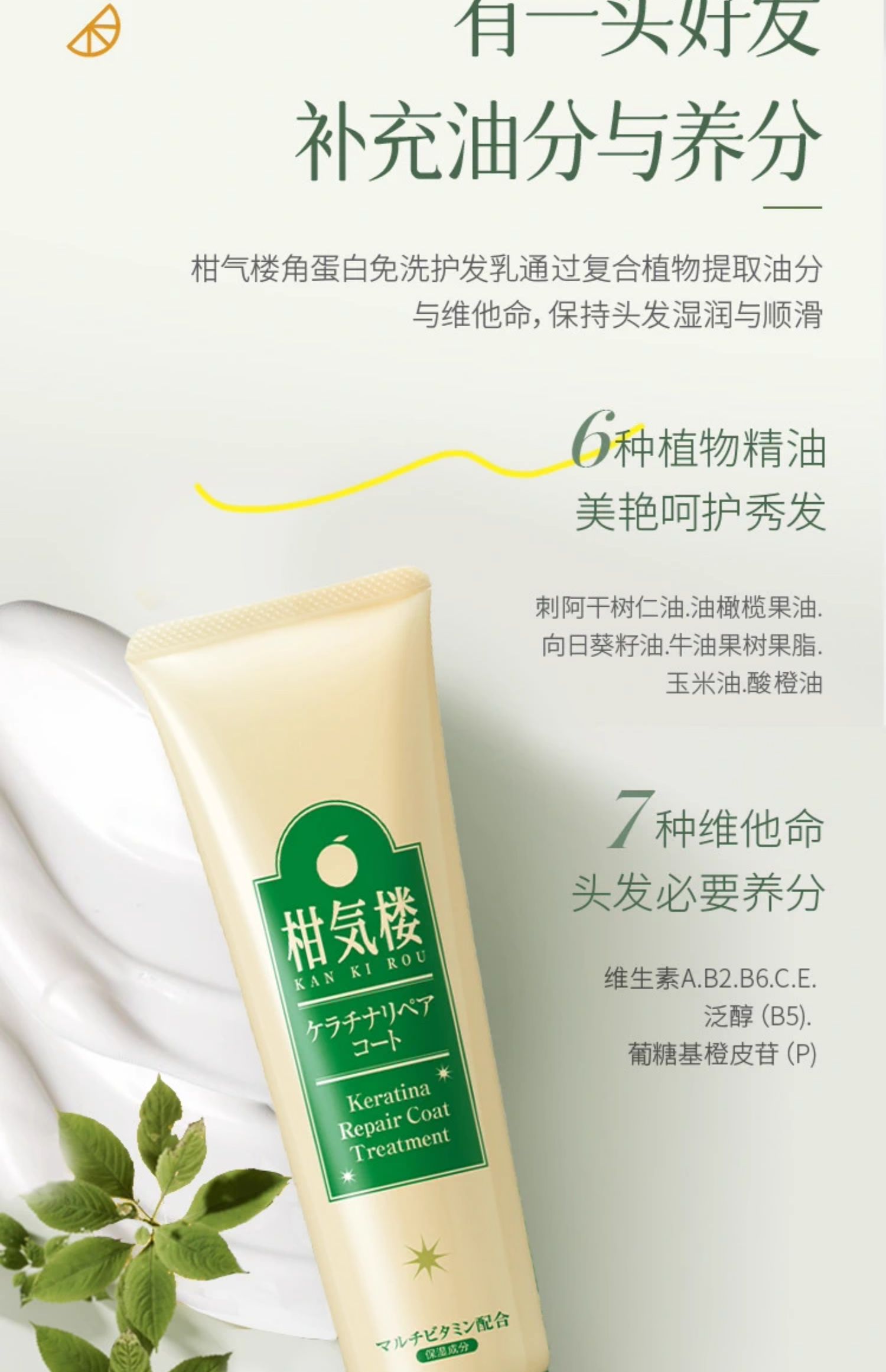柑气楼 角蛋白免洗护发乳 130g【保质期:2026年6月8日】