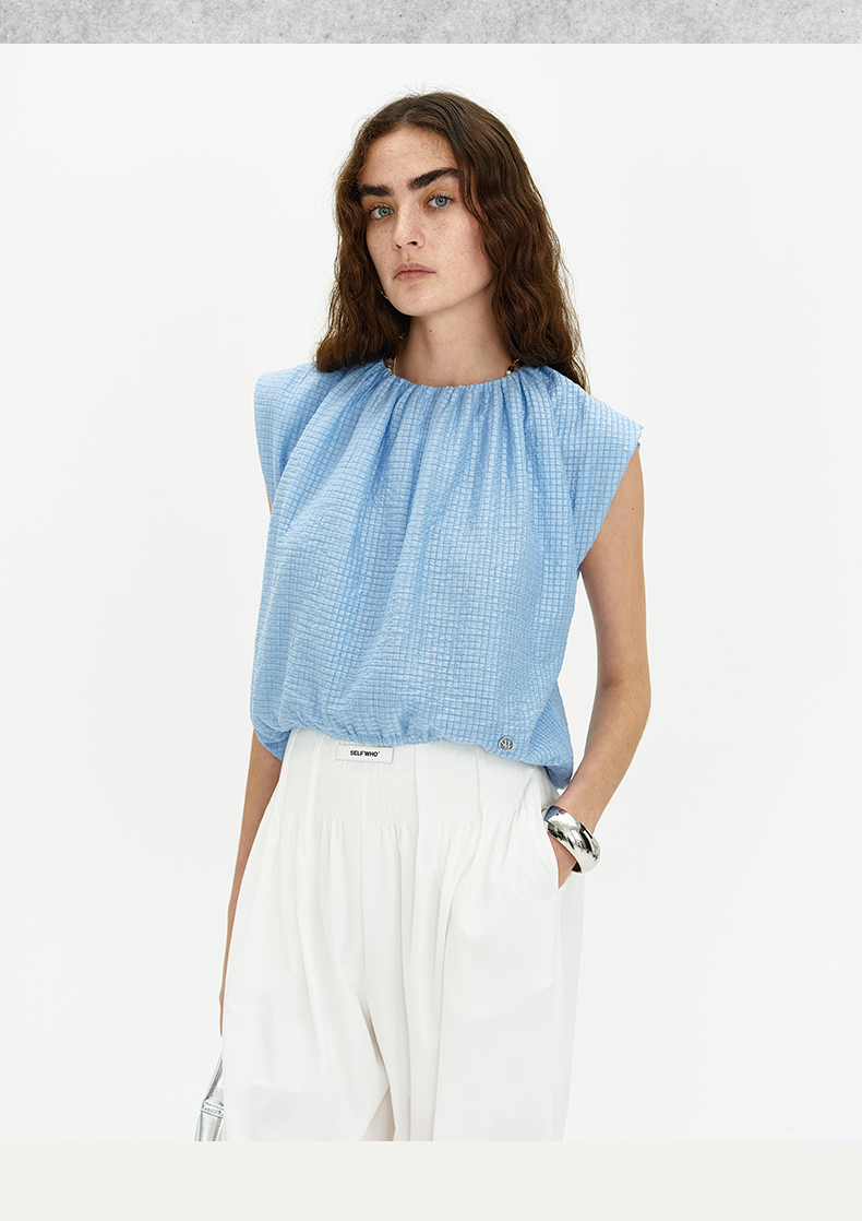SELFWHO莱赛尔纤维背心女夏2024新款法式小飞袖圆领收腰显瘦上衣