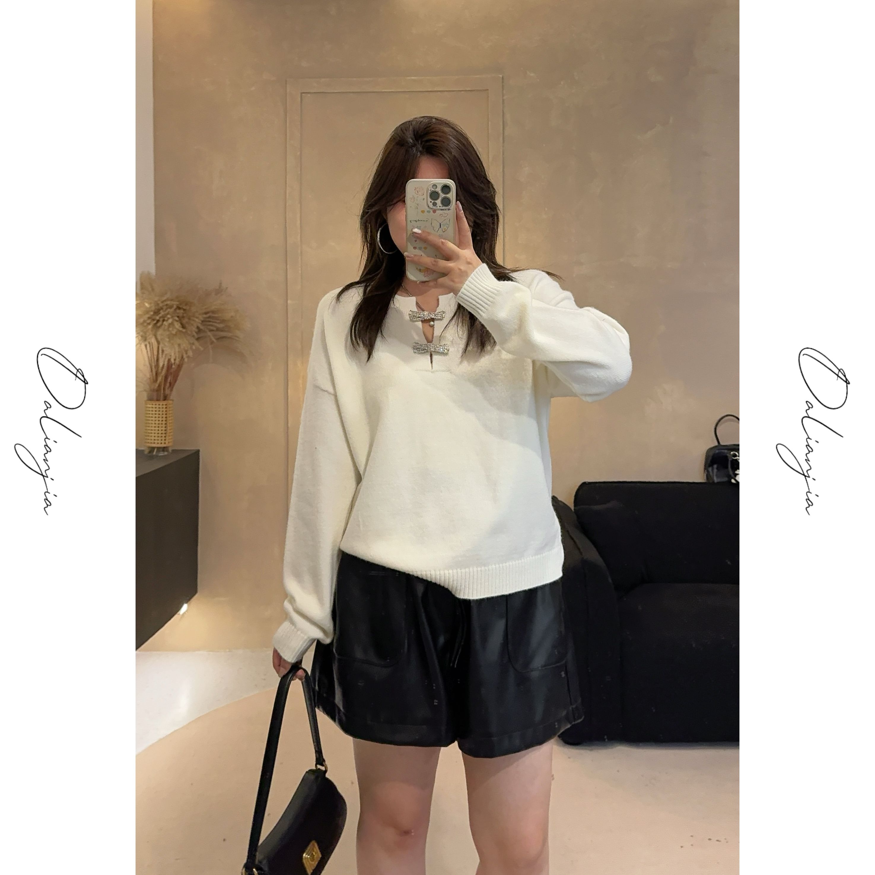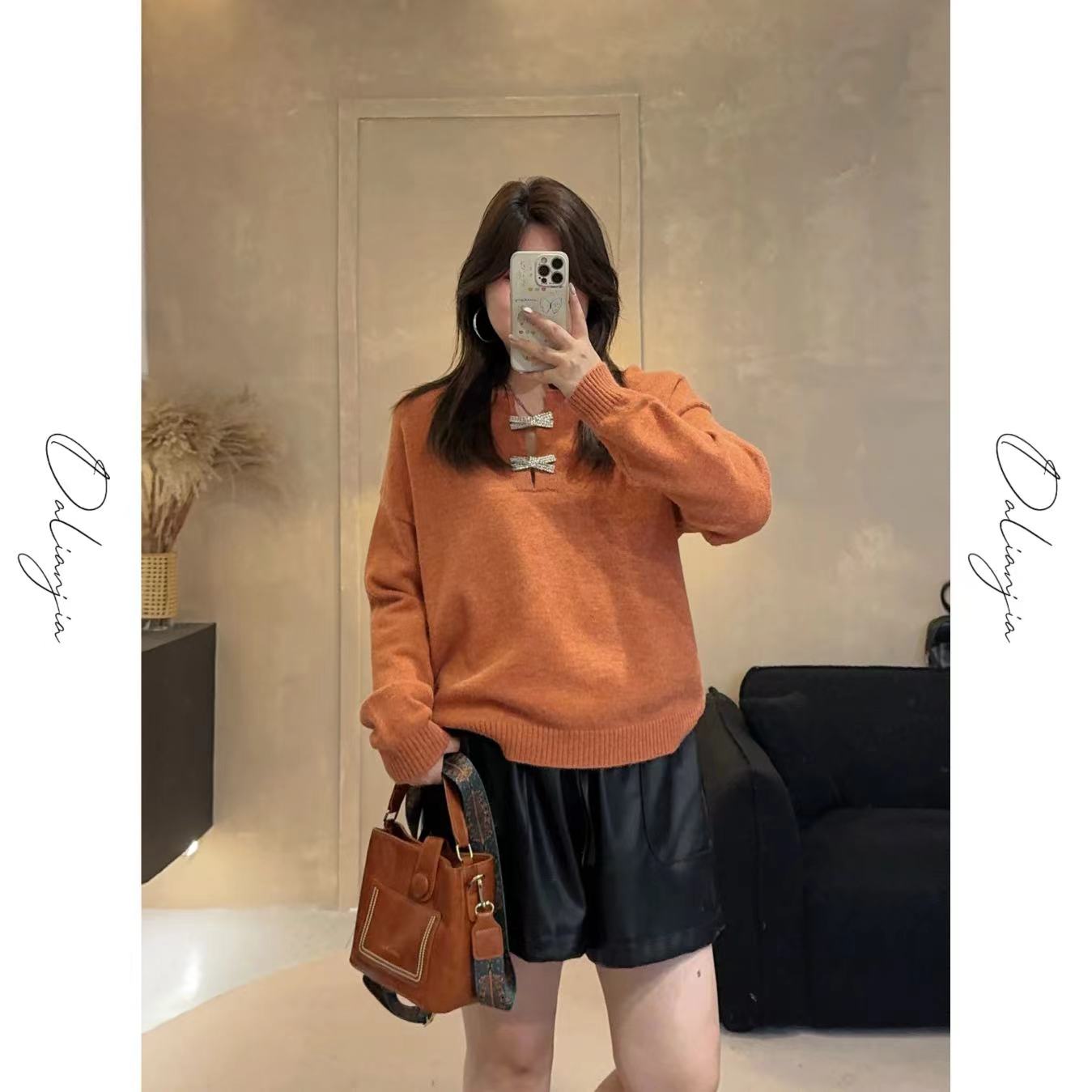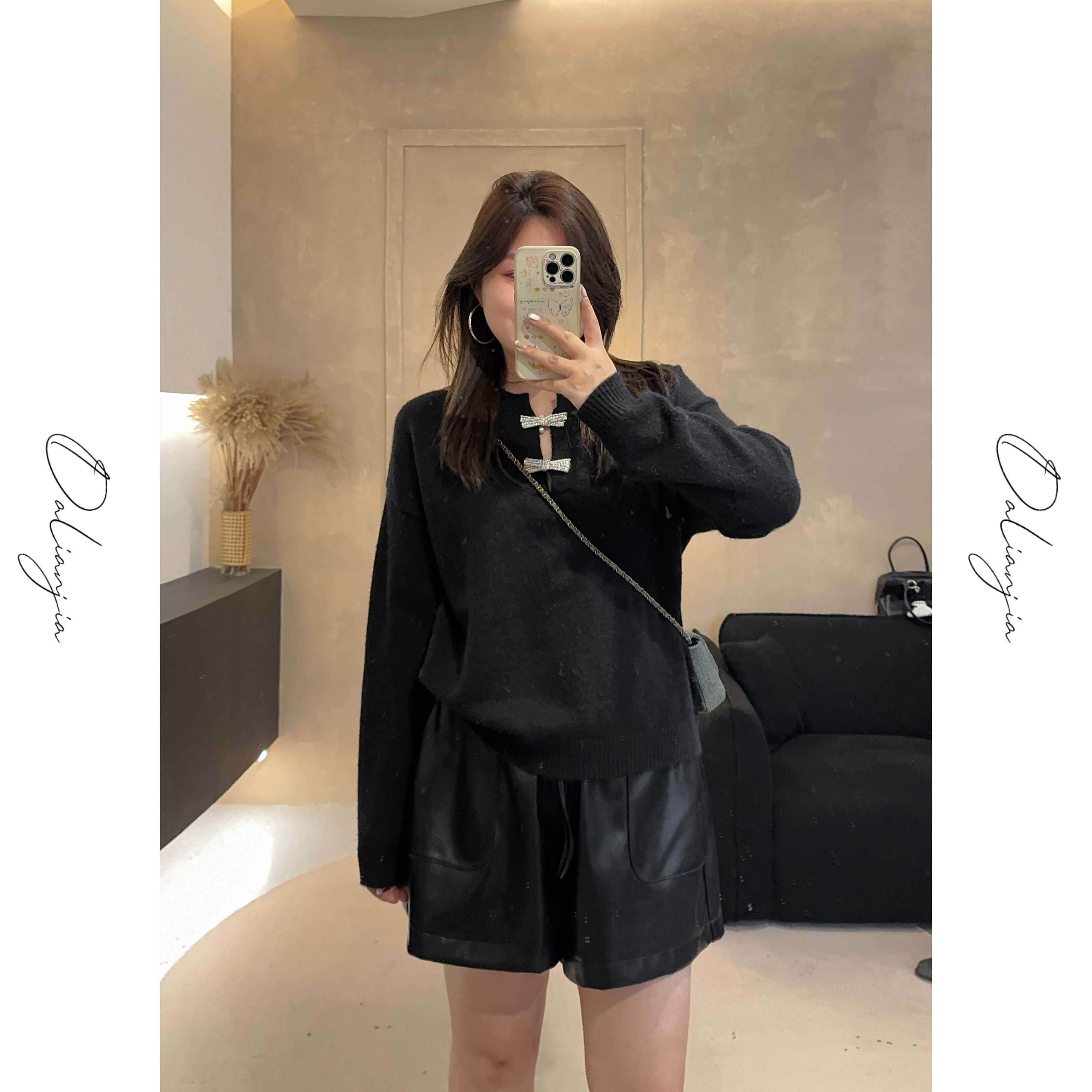 佳佳【揉碎星光】高级感镶钻蝴蝶结圆领针织衫长袖时尚休闲百搭