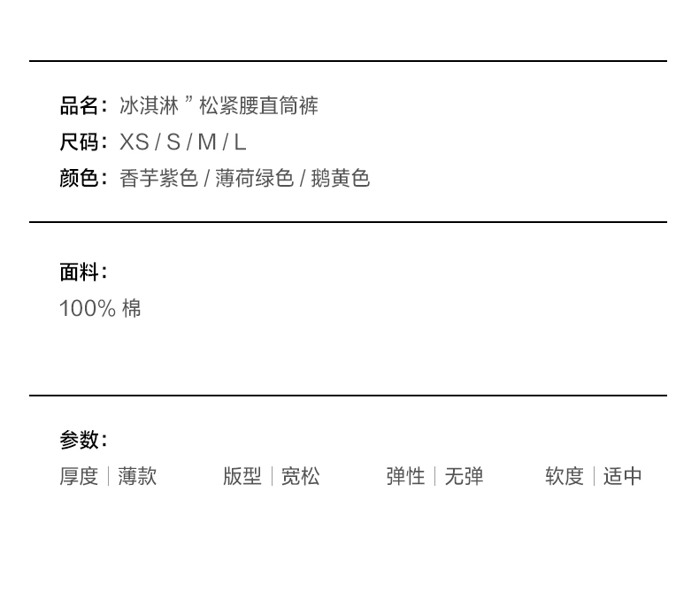 NUTH“冰淇淋”抽绳松紧腰宽松直筒休闲裤女(发货/预售时间同步天猫)