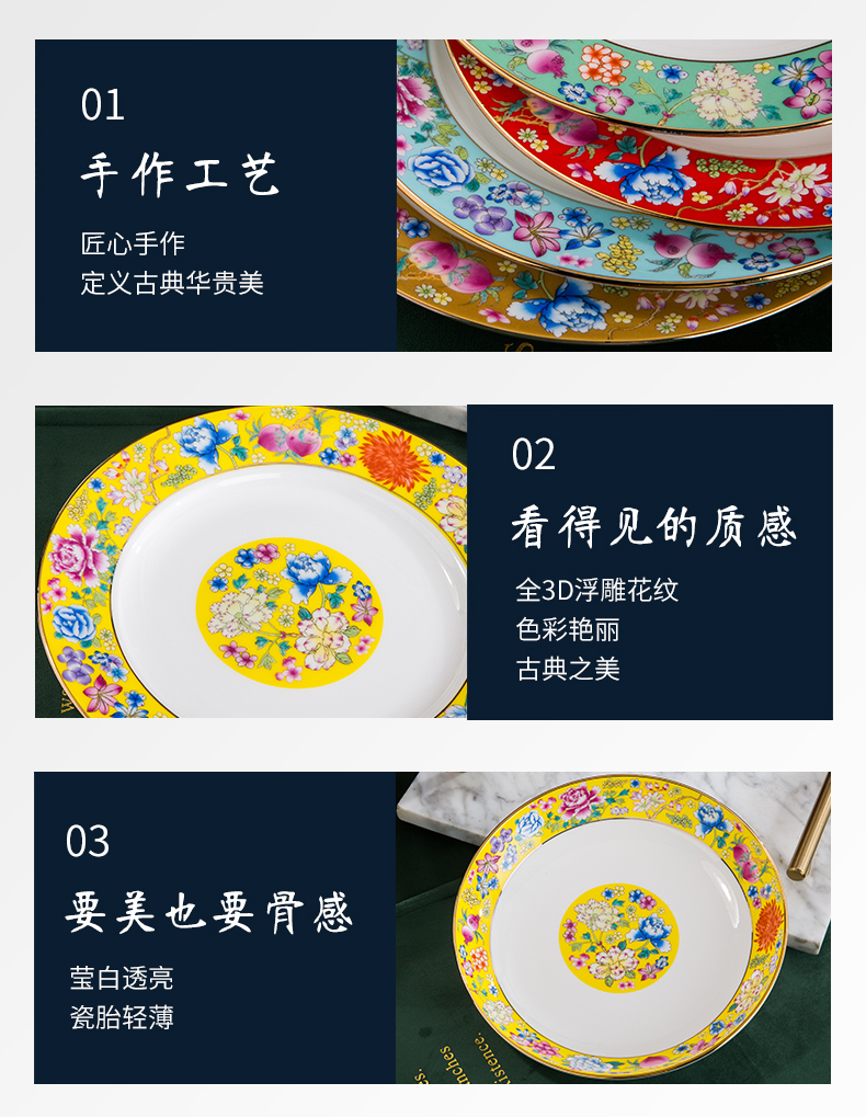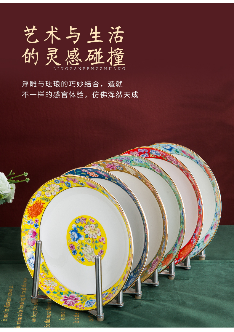 戴德生活馆珐琅彩万花家用盘碟子圆形中式陶瓷餐具