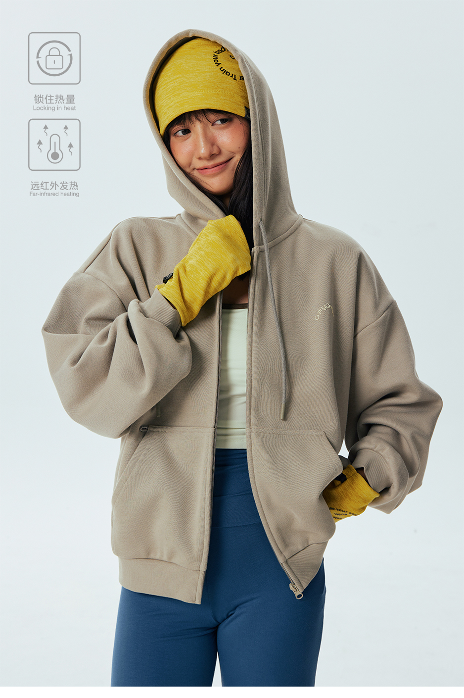 CryingCenter远红外自发热基础款拉链连帽加绒卫衣男女款哭喊中心