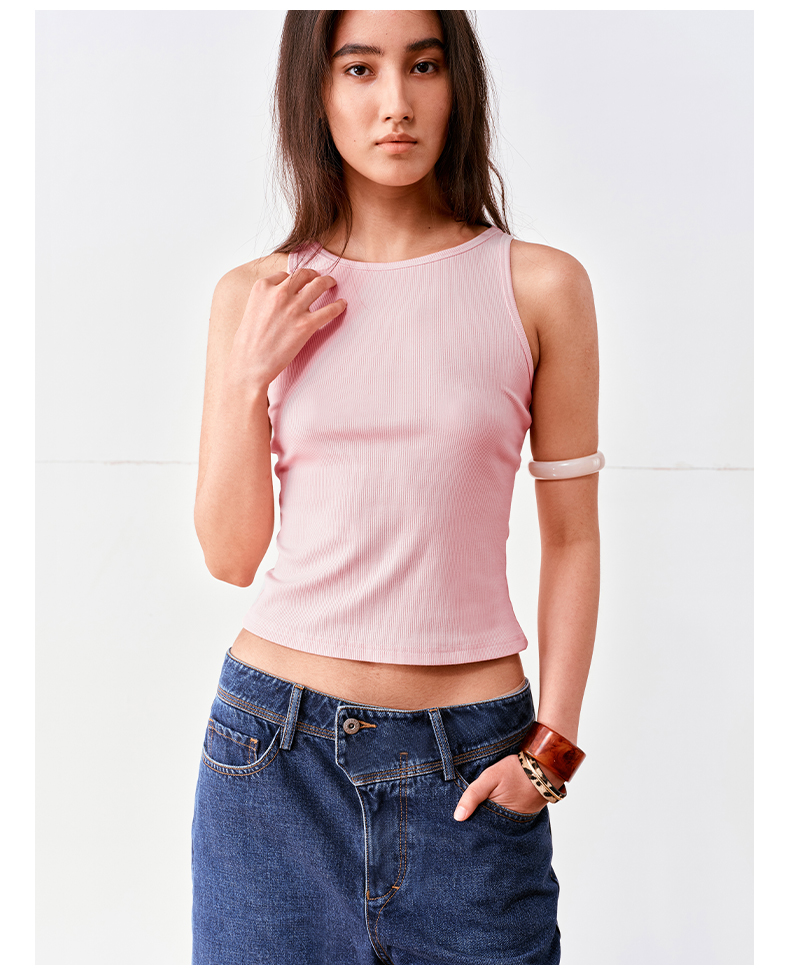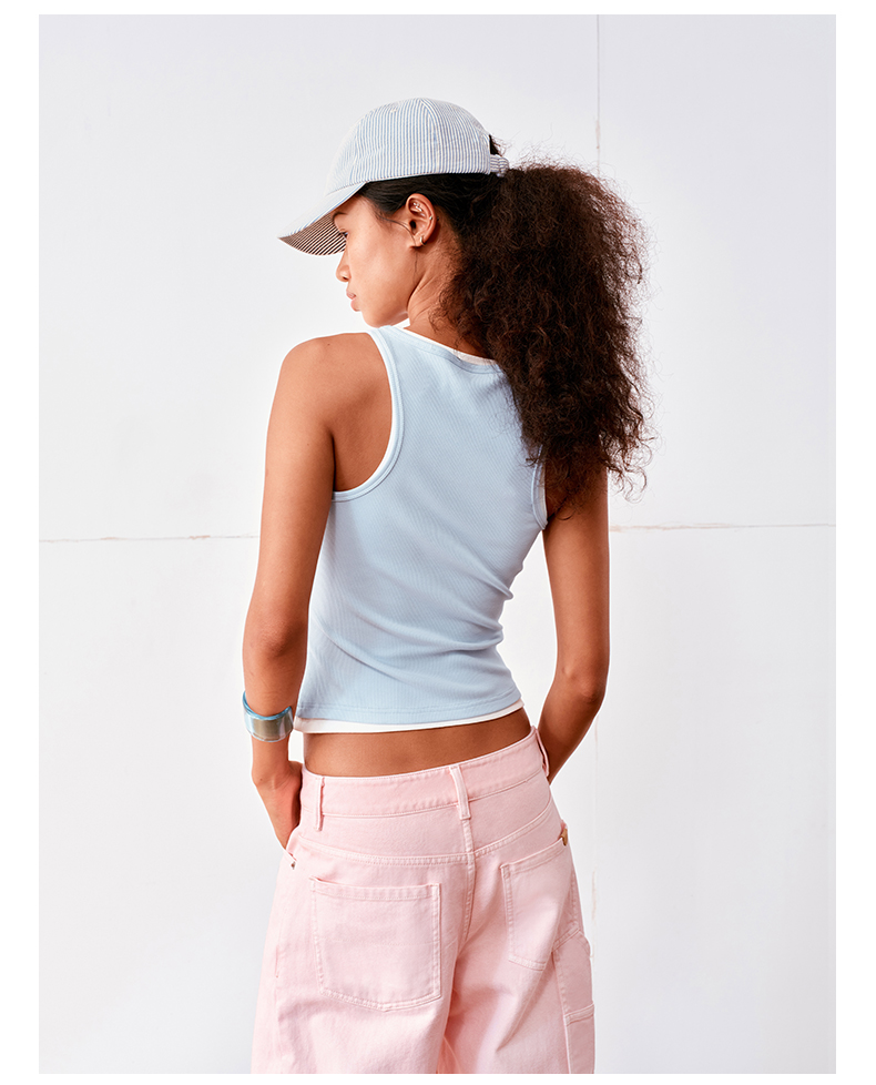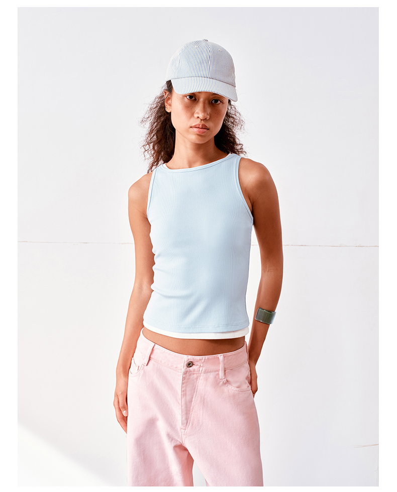 NUTH多色莱卡抗菌坑条弹力修身工字背心女