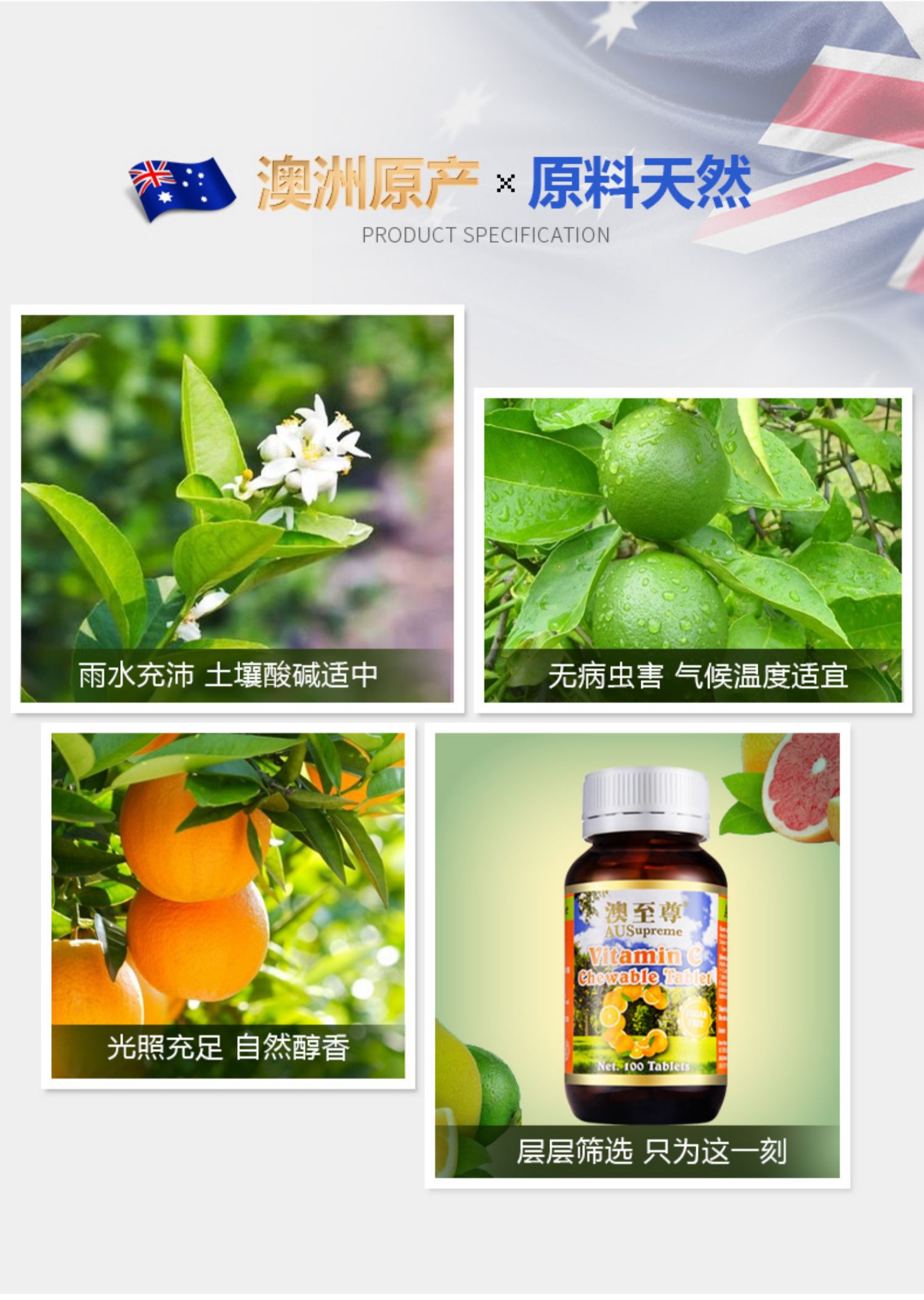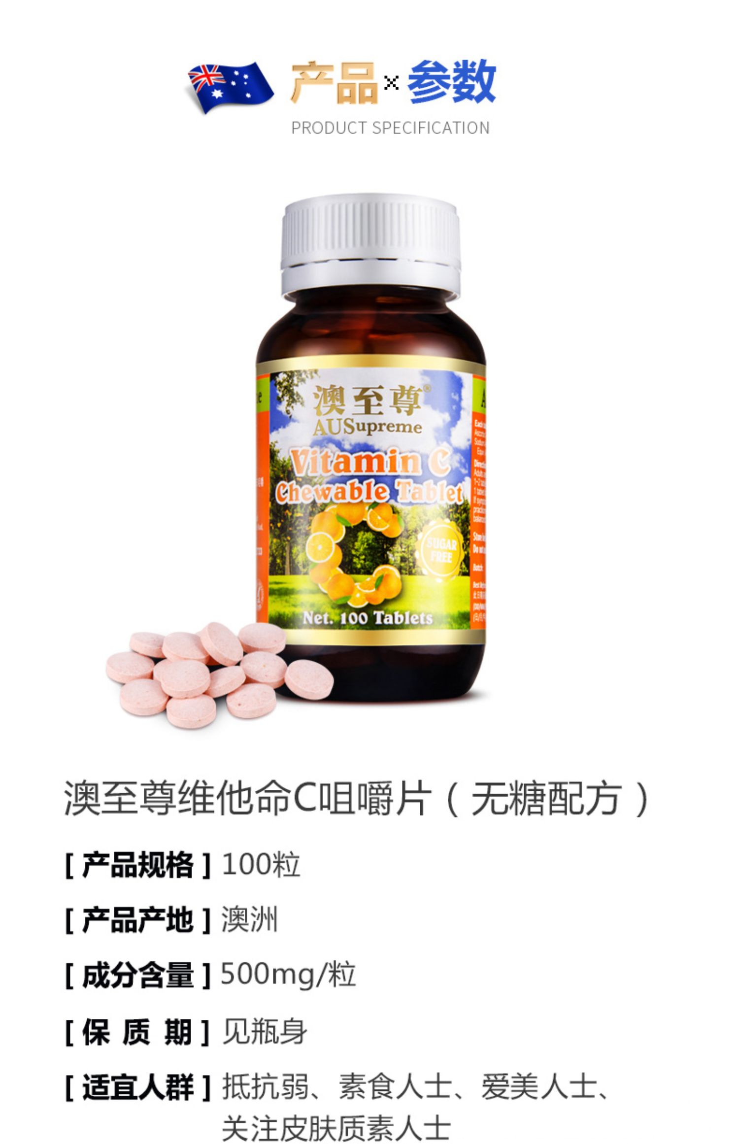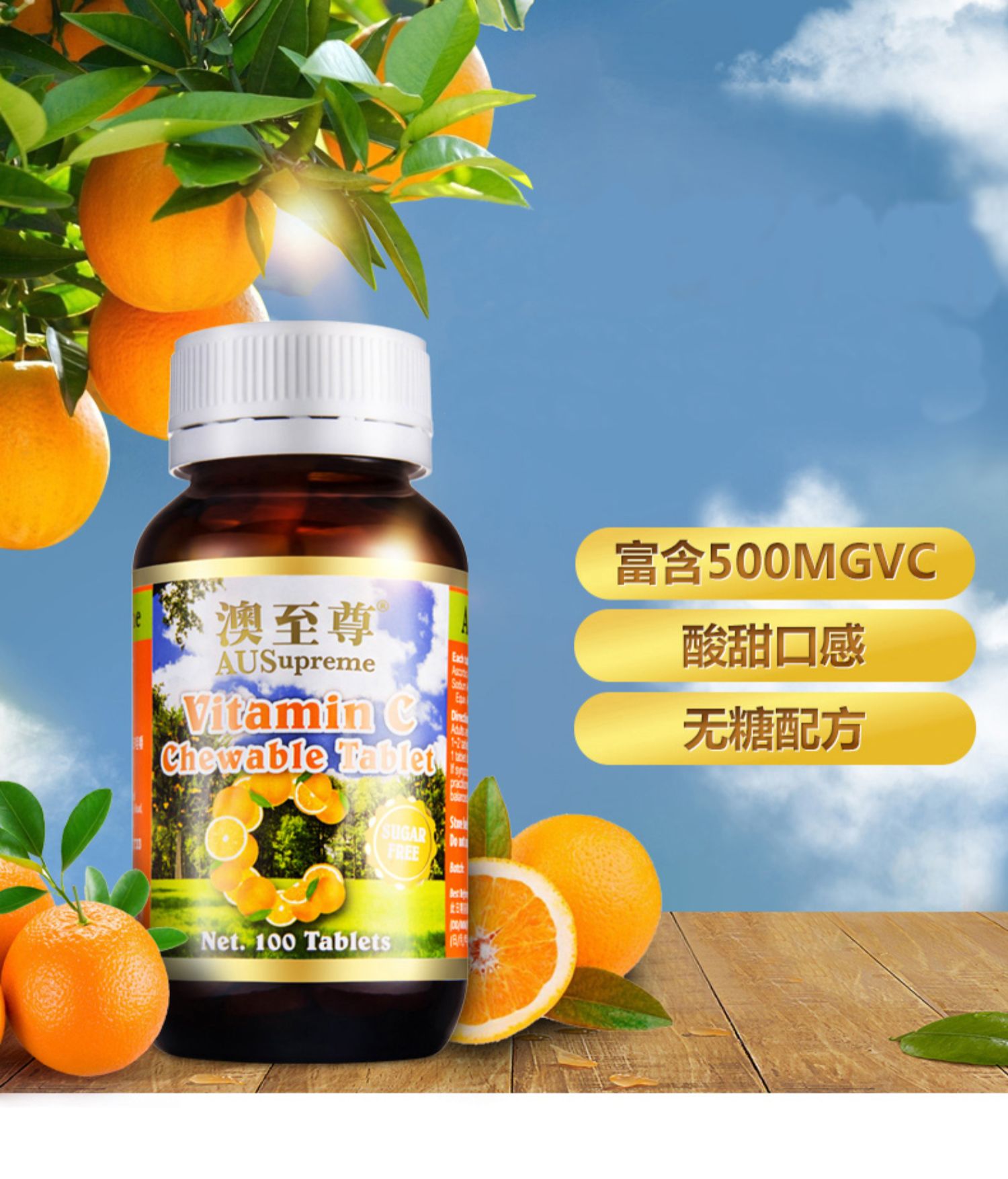 澳至尊维他命C咀嚼片100粒 保质期2026-11-30