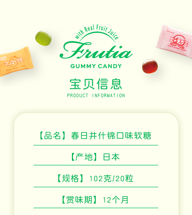 春日井清爽水果味什锦软糖102g