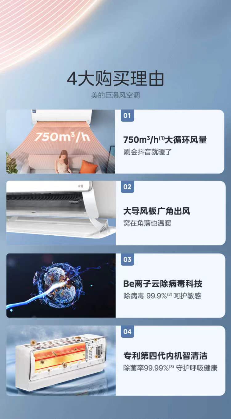 美的新1级1.5匹变频冷暖挂机空调KFR-35GW/C1-1 极地白