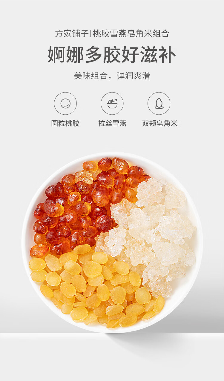 方家铺子 桃胶雪燕皂角米320g/盒(胶滴滴)