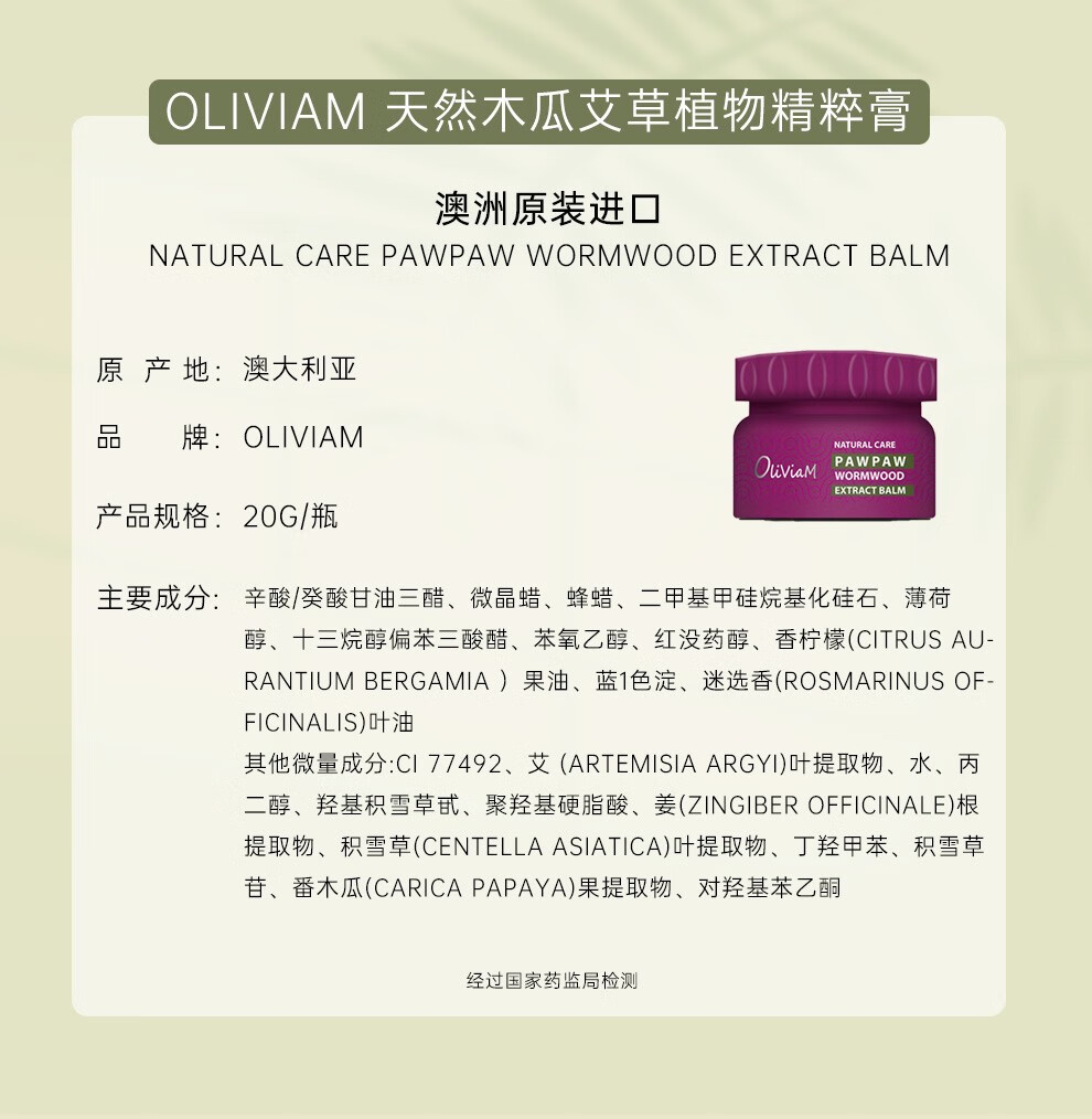 澳莉维亚 天然艾草木瓜植物精粹膏20ml