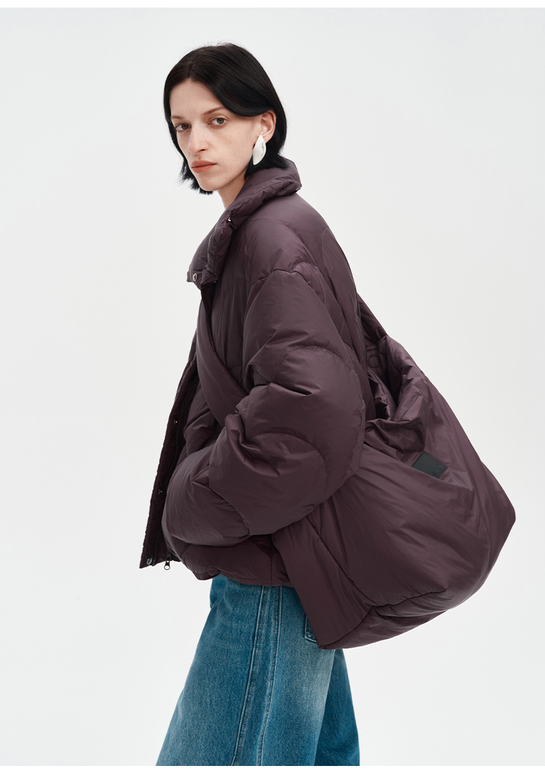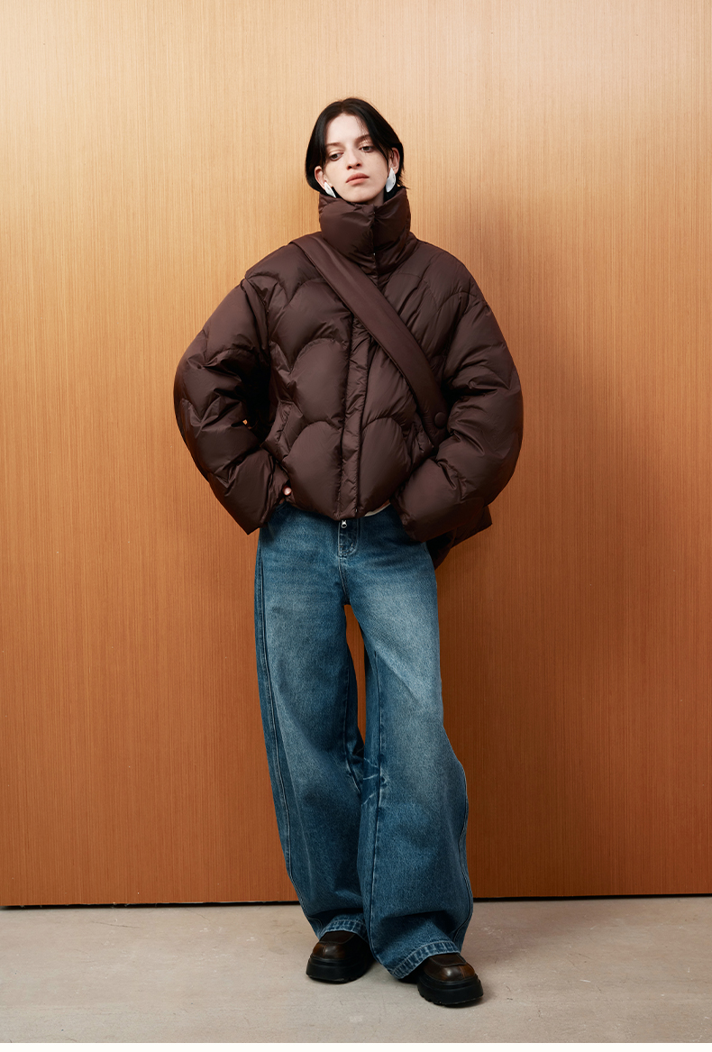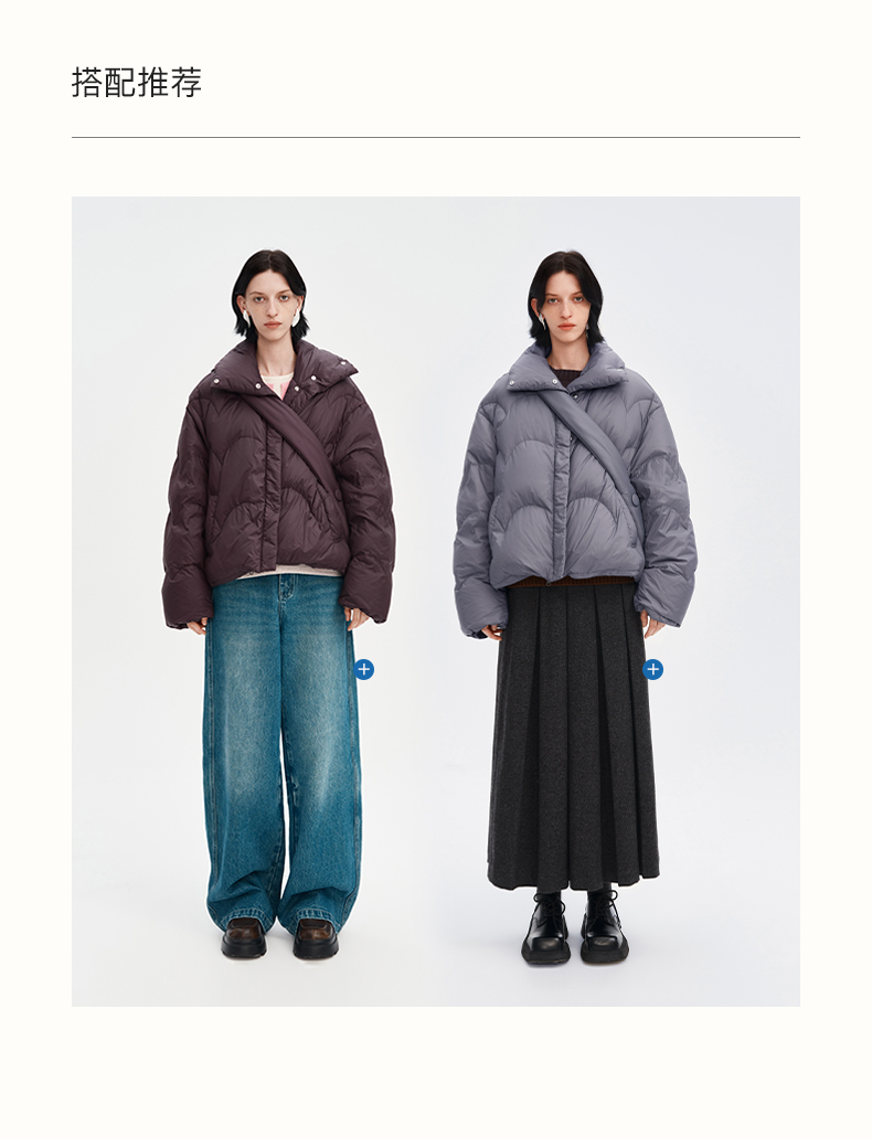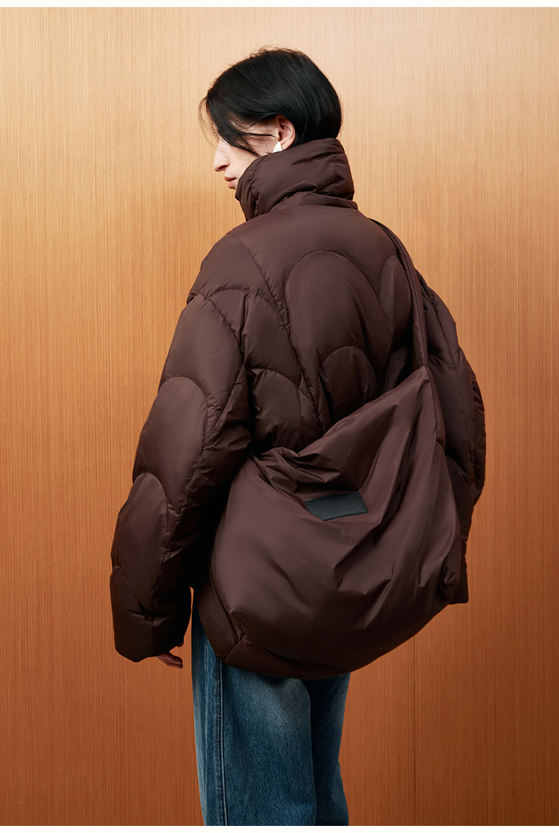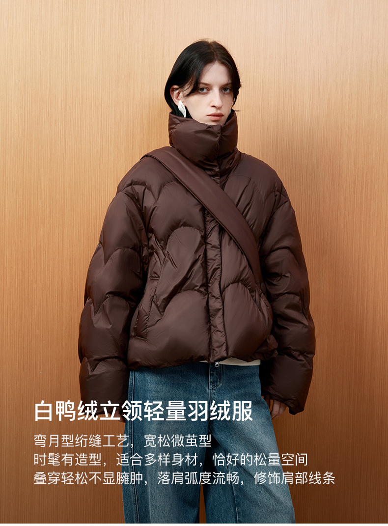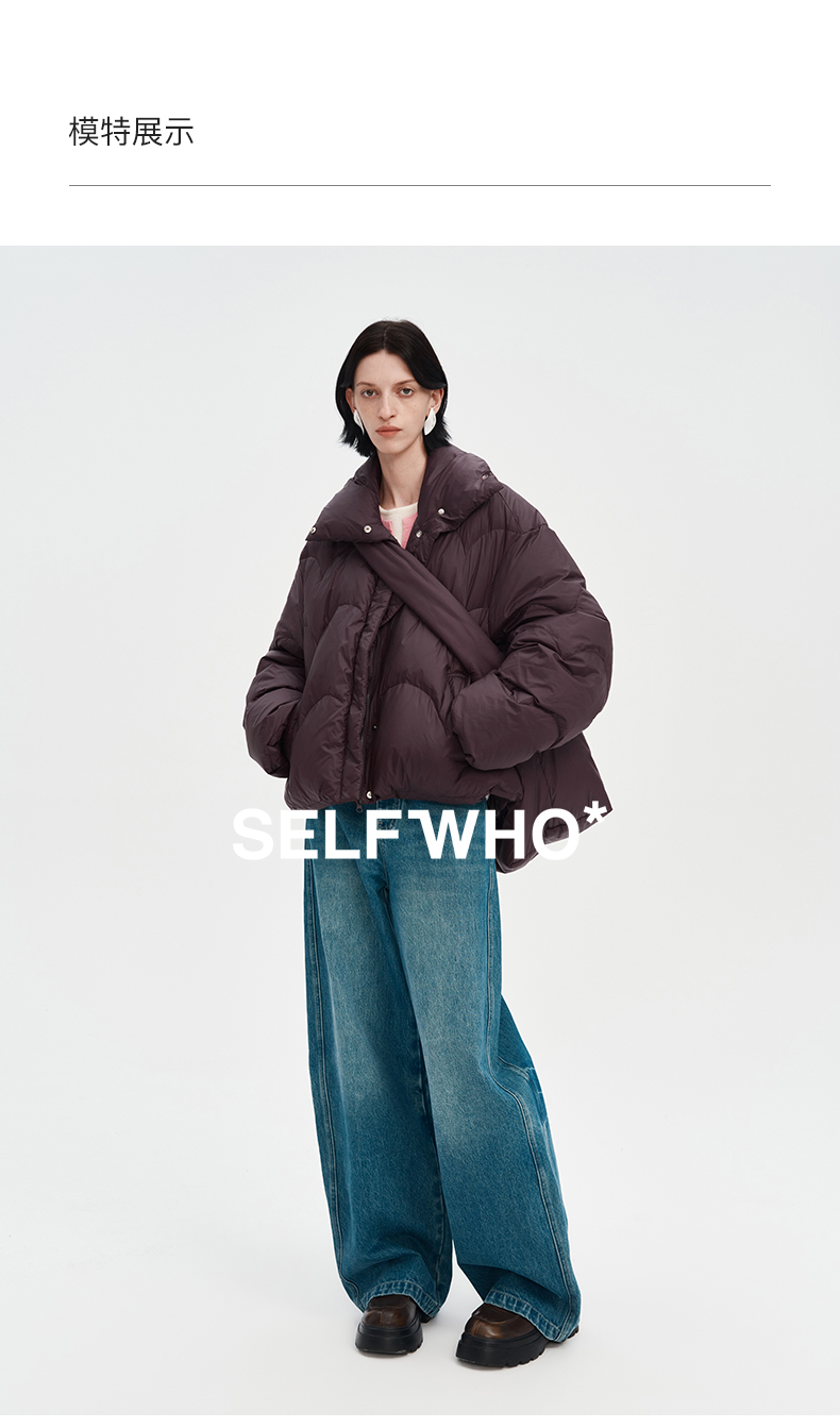 SELFWHO90白鸭绒弯月型绗缝羽绒服女2024冬新款宽松保暖蓬松外套