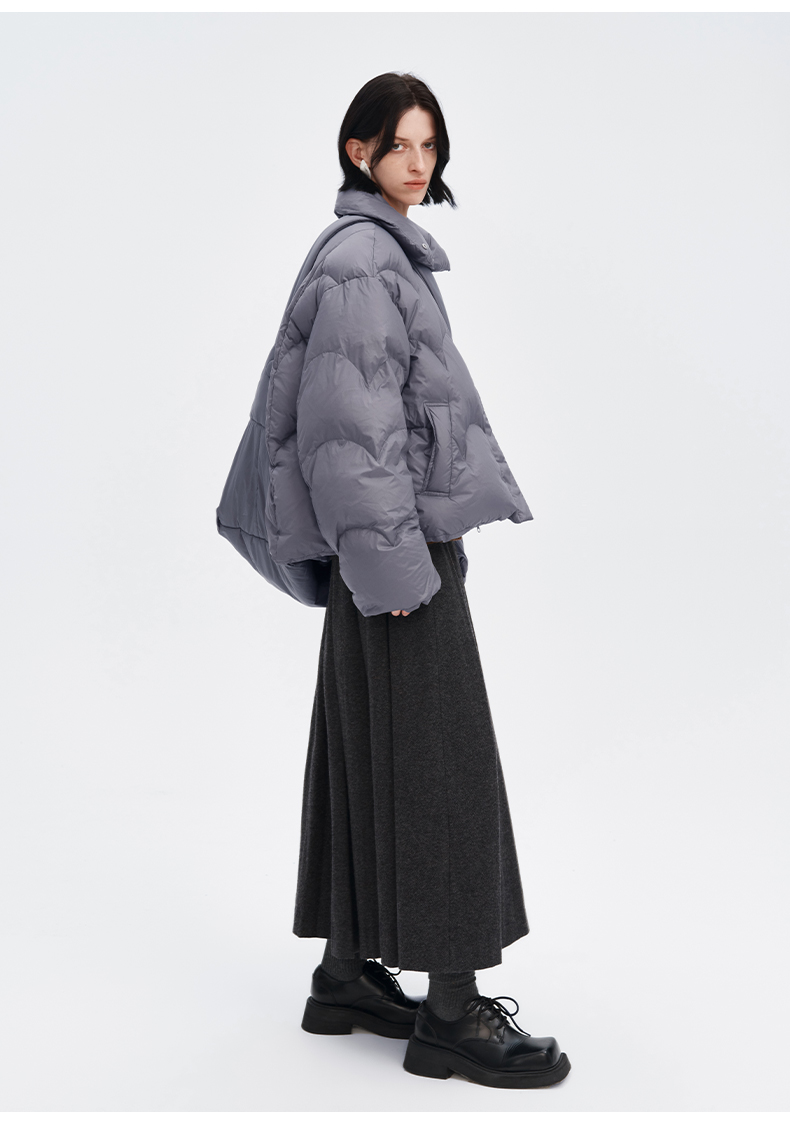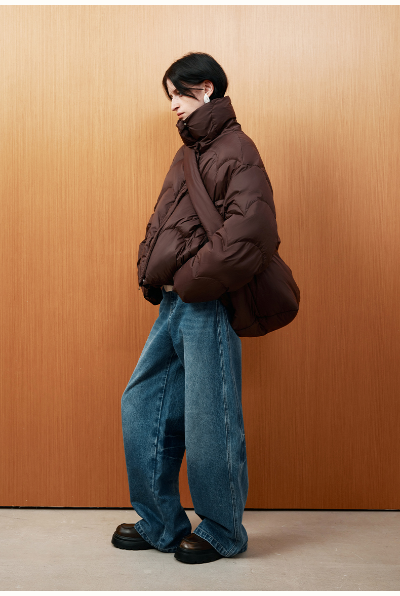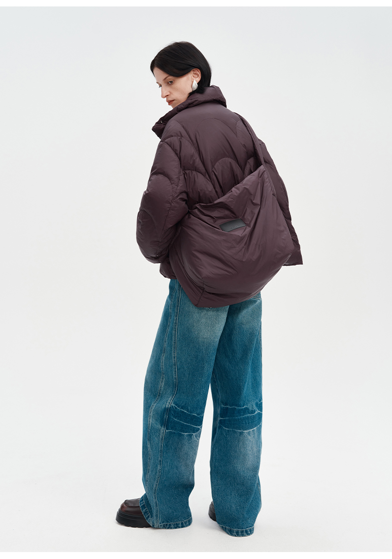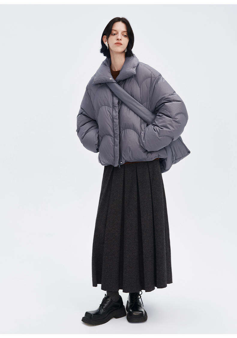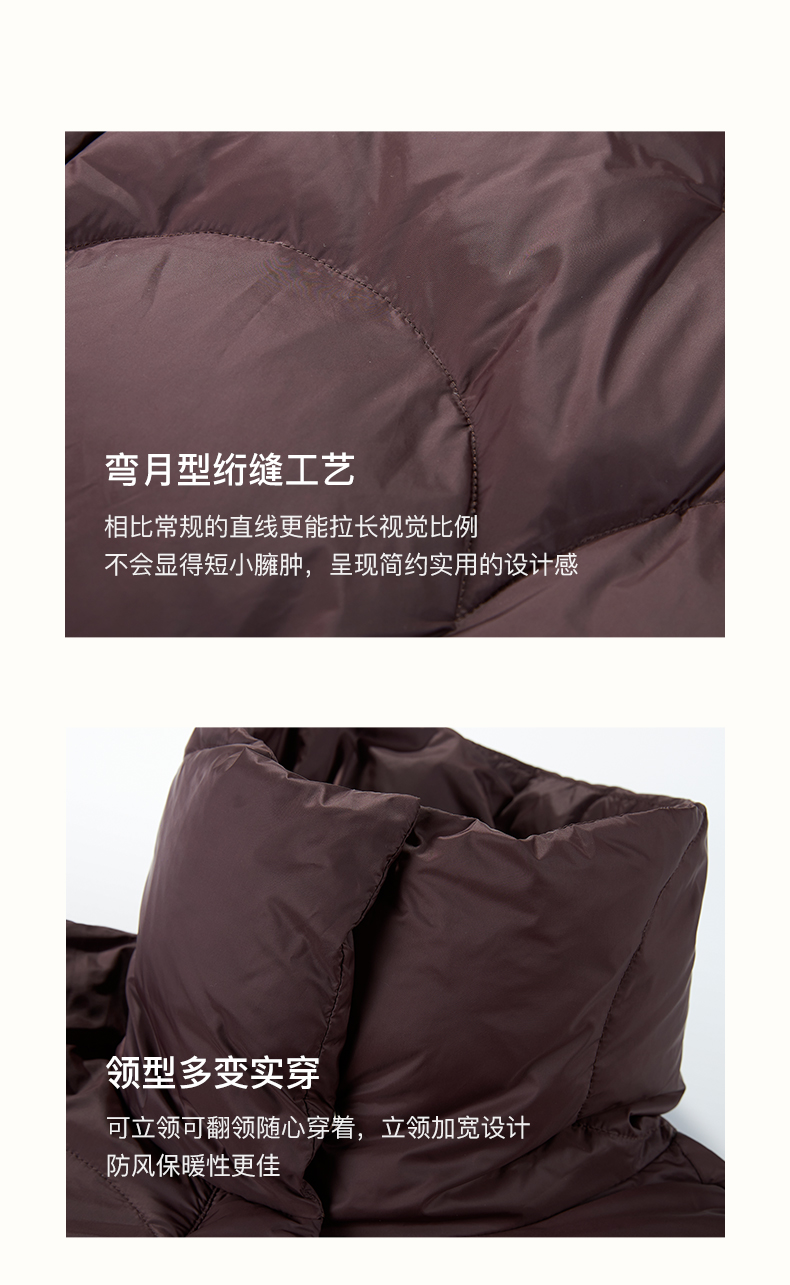 SELFWHO90白鸭绒弯月型绗缝羽绒服女2024冬新款宽松保暖蓬松外套