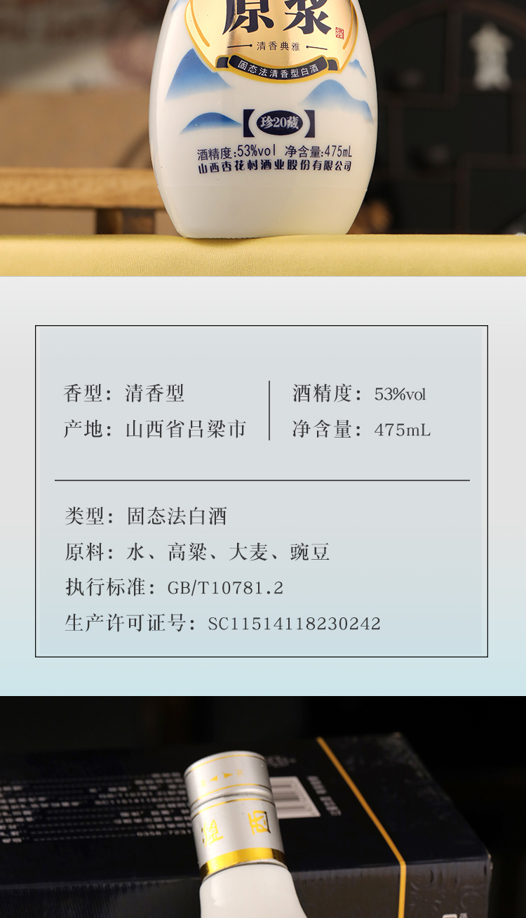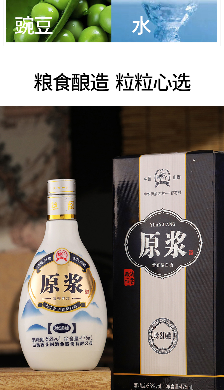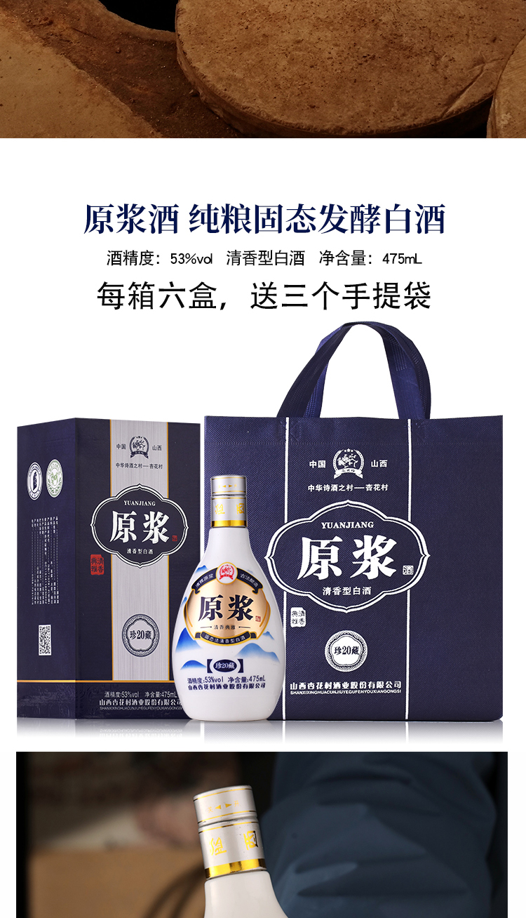 优选丨【到手12瓶】杏花村53度清香型白酒475ml*6瓶*2箱