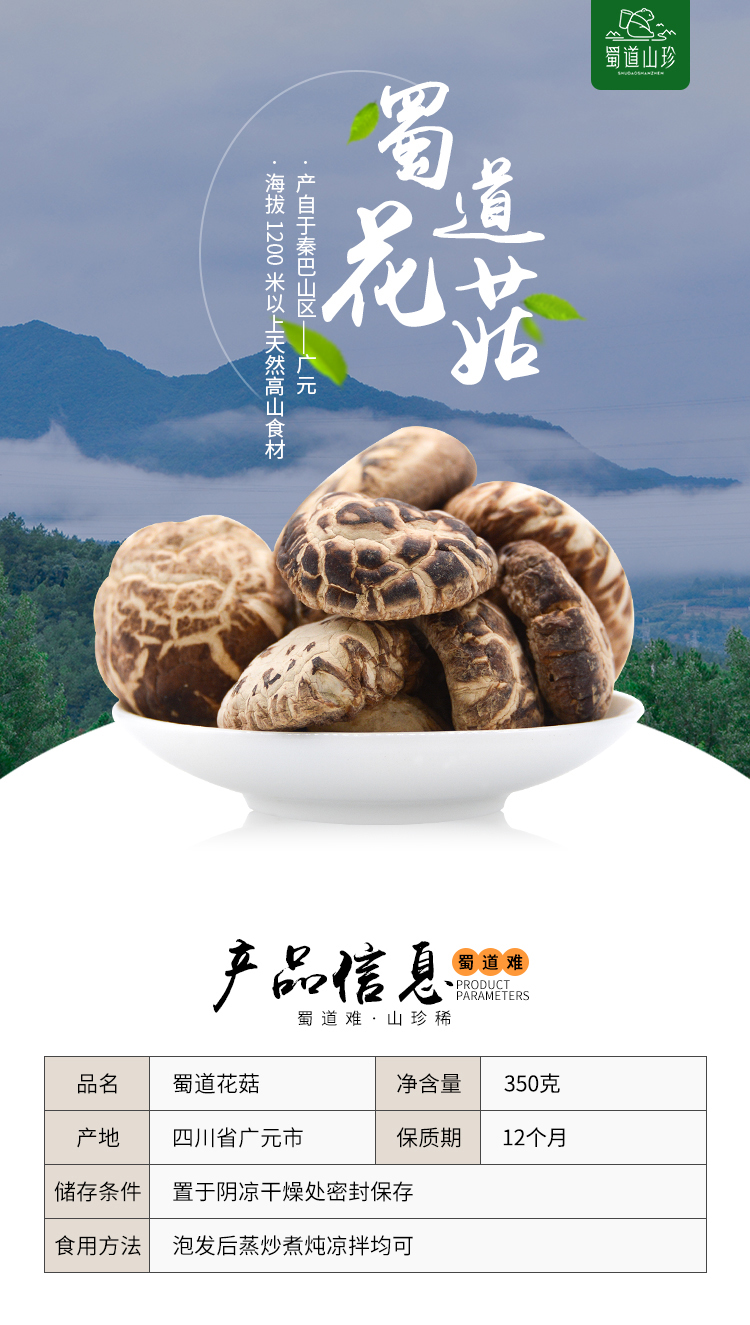 四川特产蜀道山珍花菇350g罐装