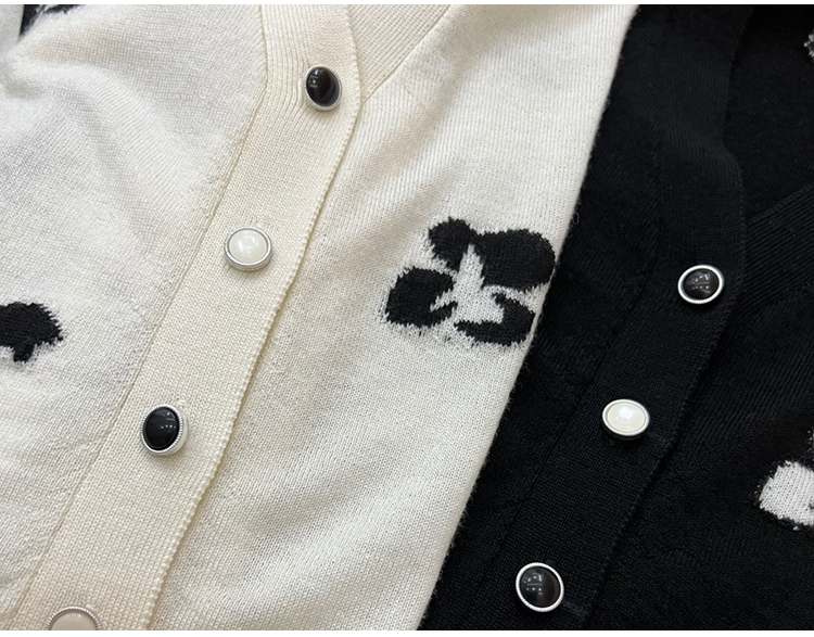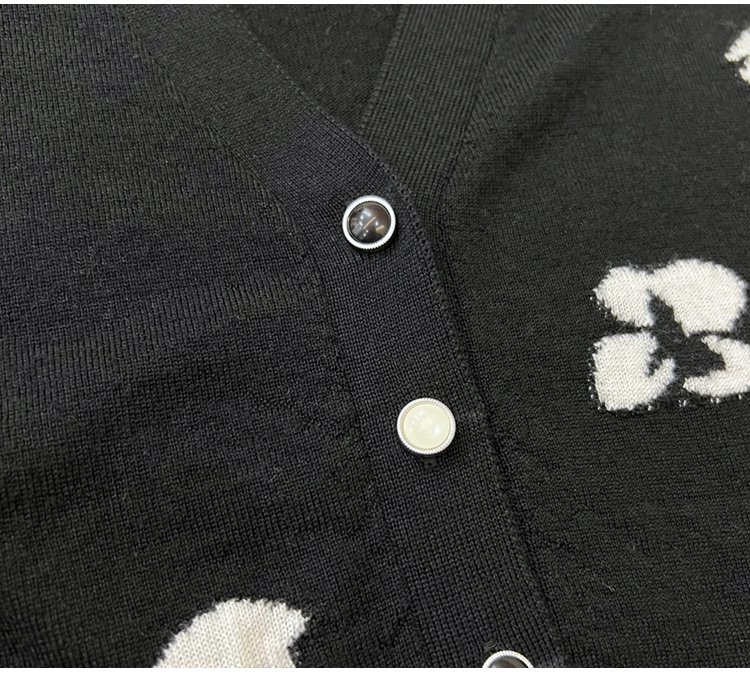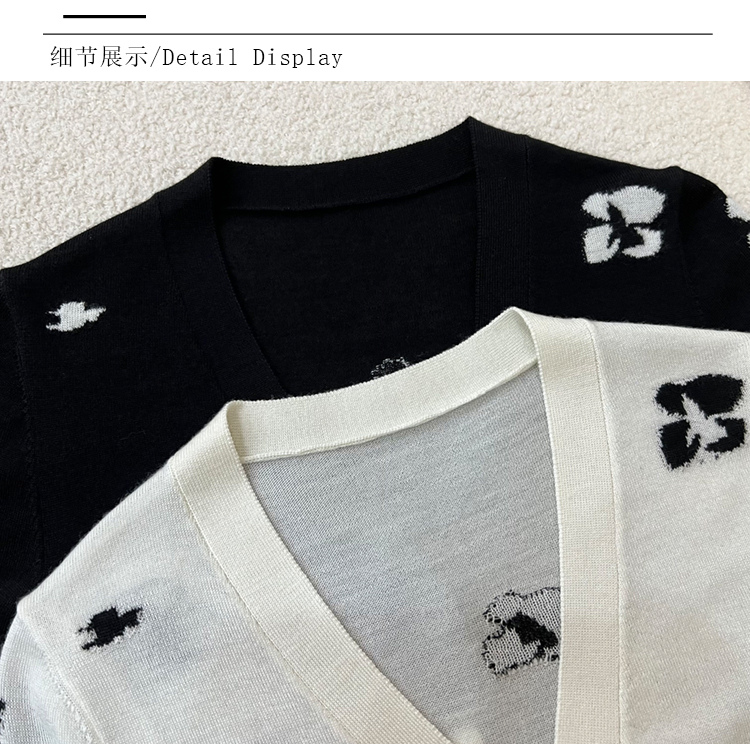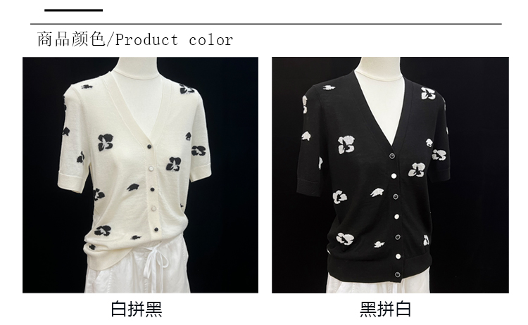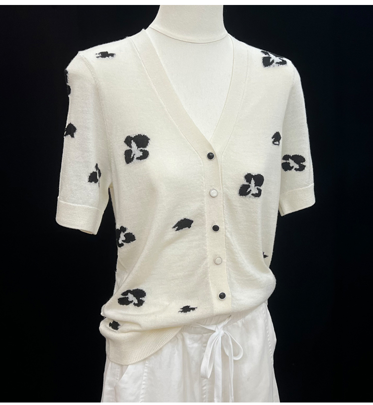 S.Y.C【黛花浅吟】丝 羊 毛V领嵌花半袖女短袖针织衫SYM25052