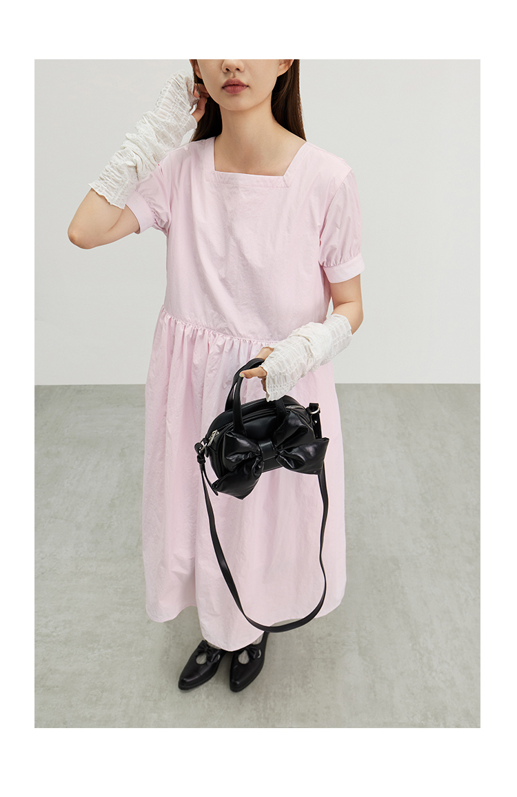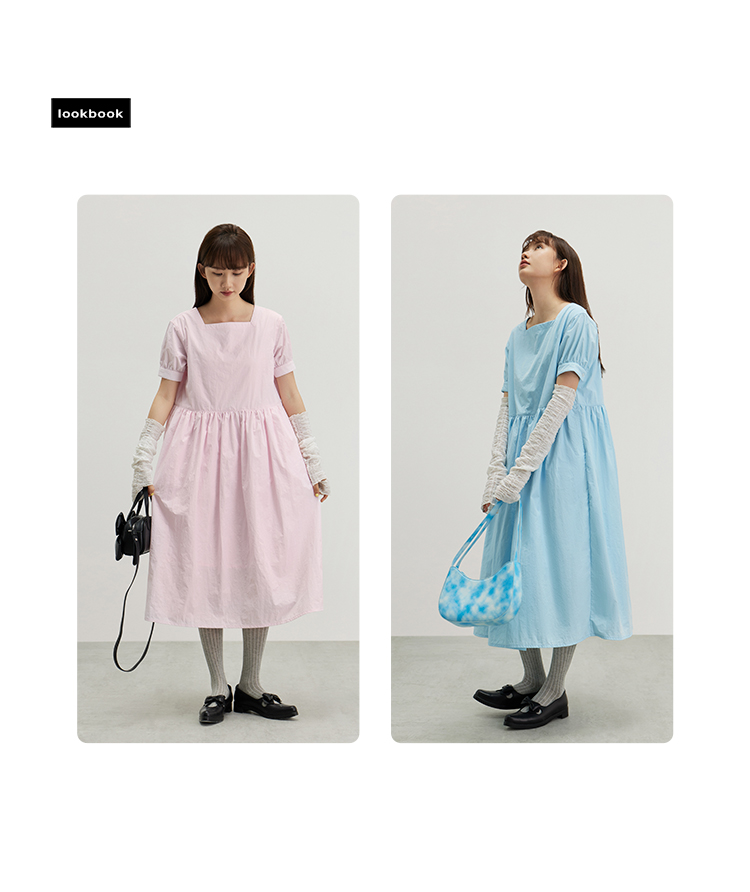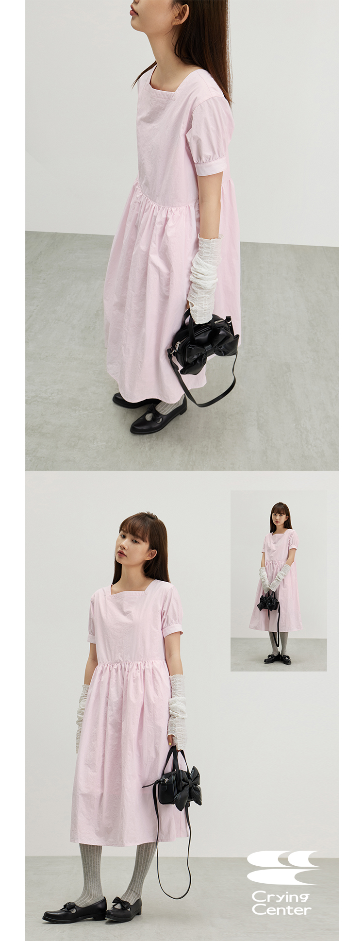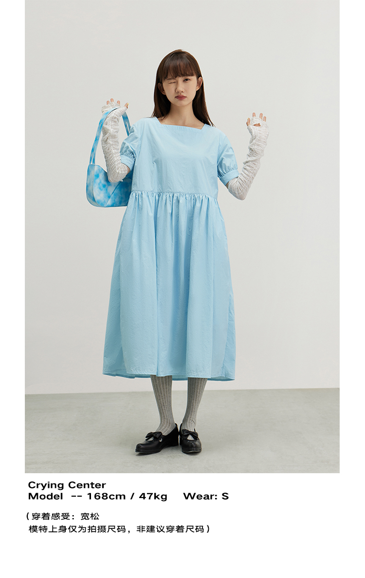 cryingcenter 夏日法式方领抽褶大裙摆冰淇凌连衣裙
