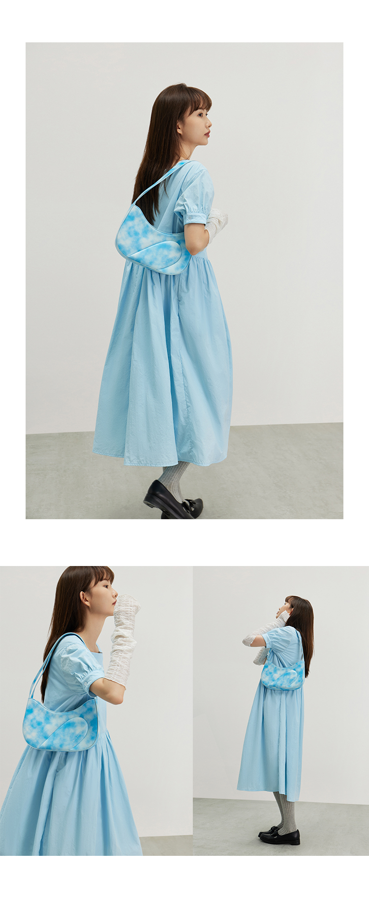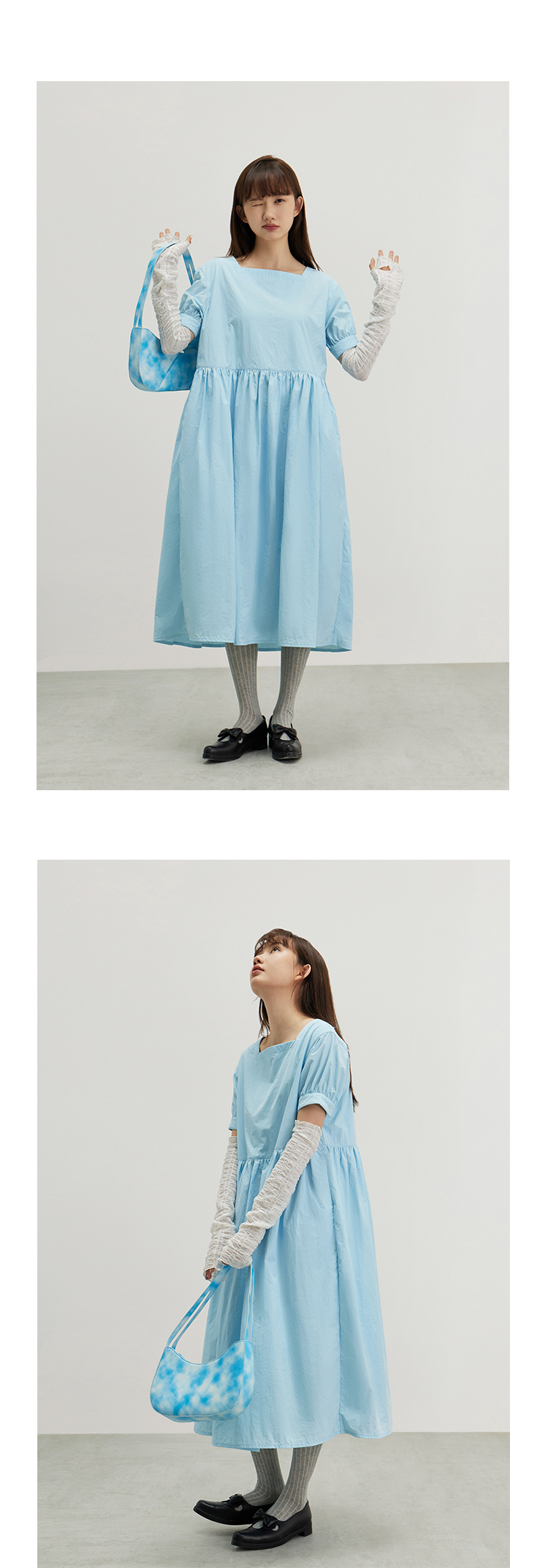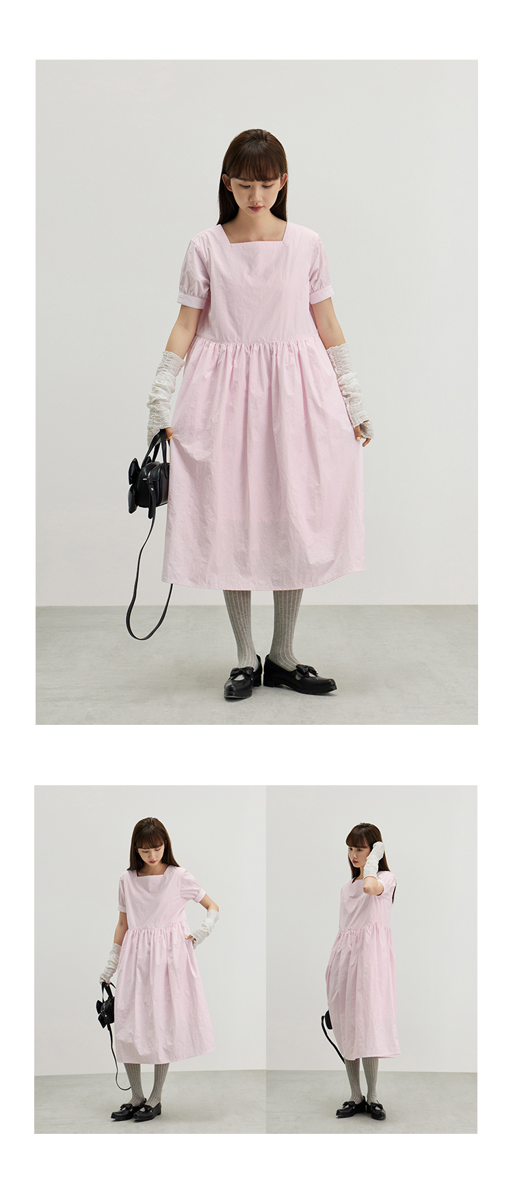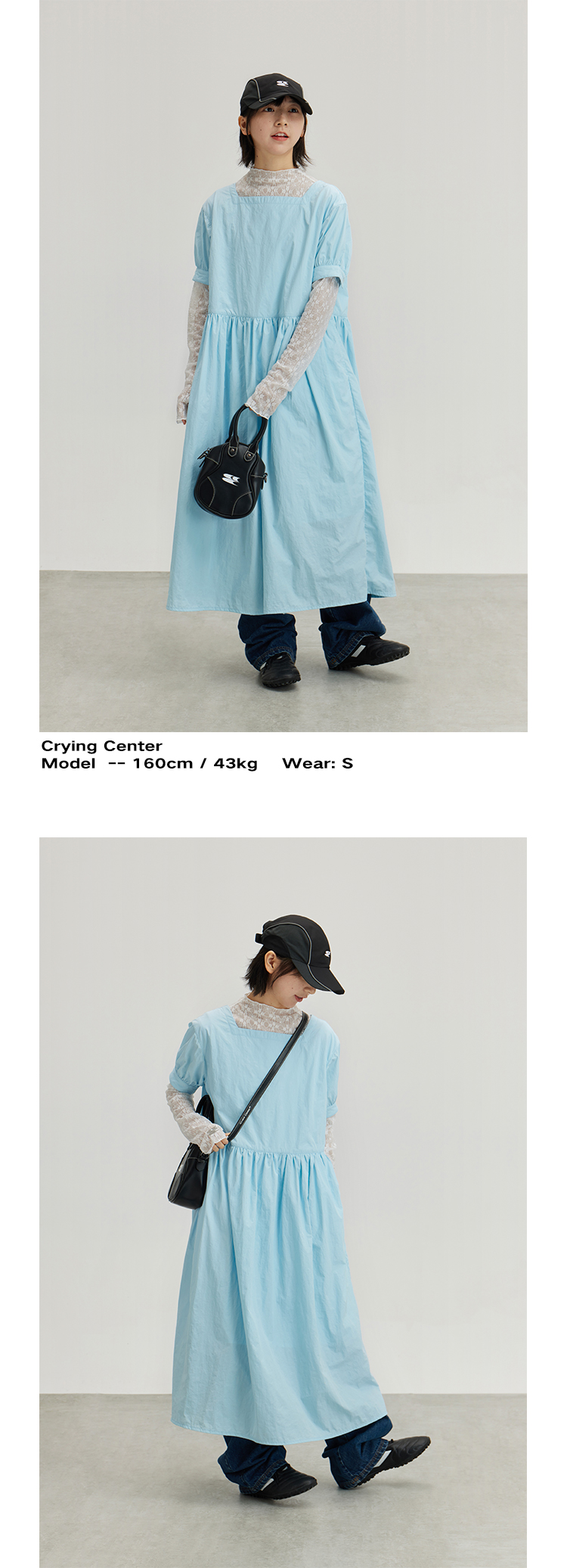 cryingcenter 夏日法式方领抽褶大裙摆冰淇凌连衣裙