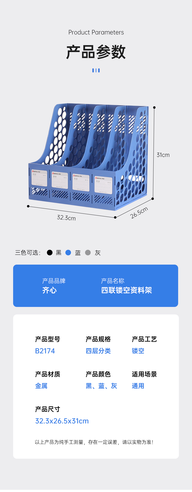 【仅供集采】齐心加厚文件架多层四栏框资料架档案袋收纳盒16/盒B2174