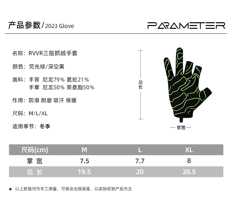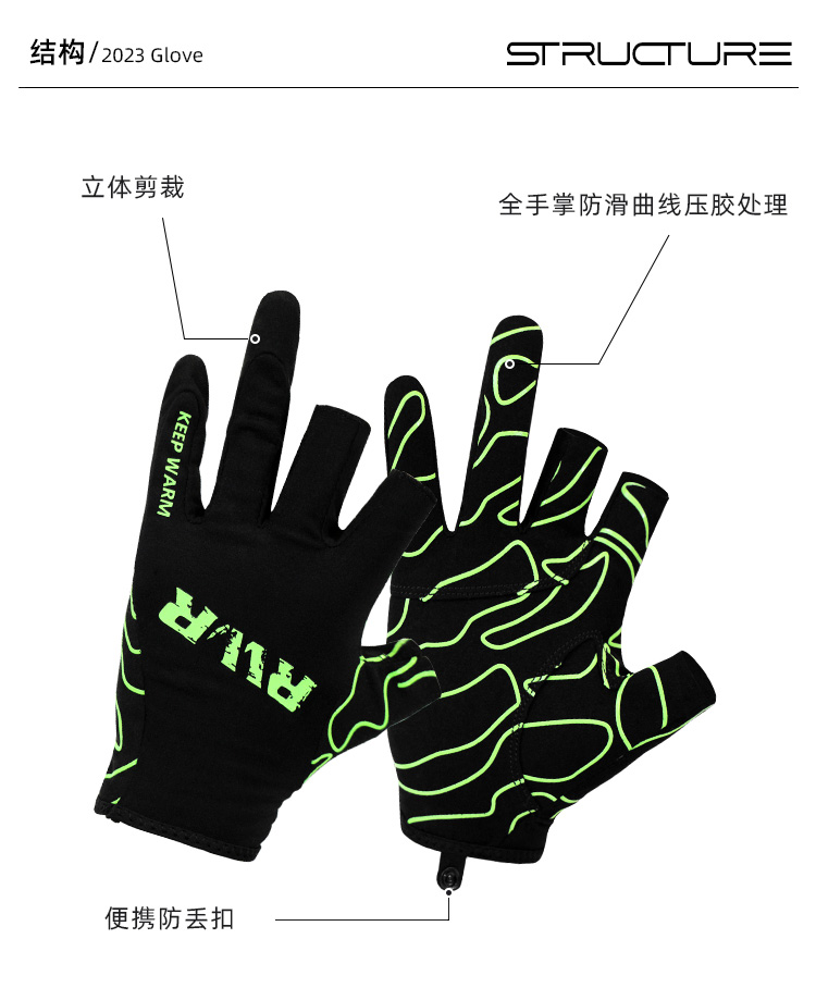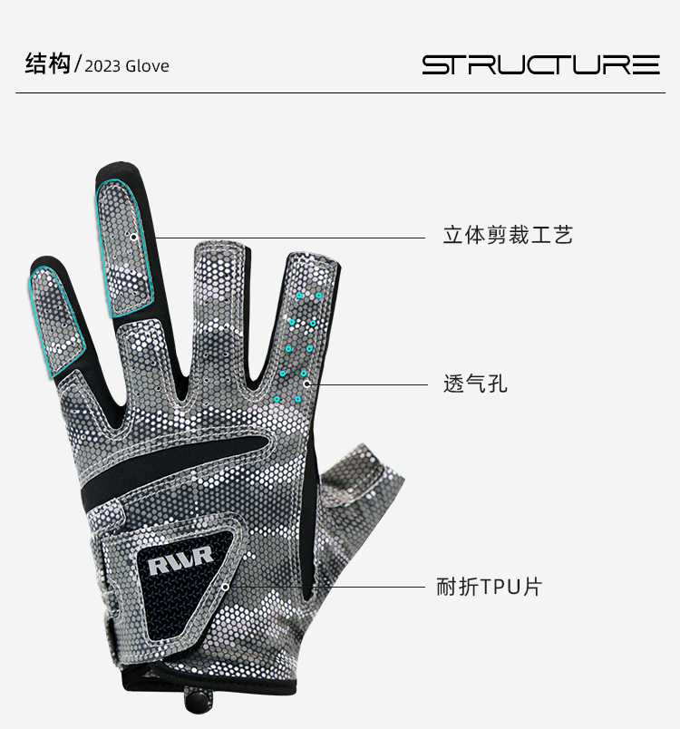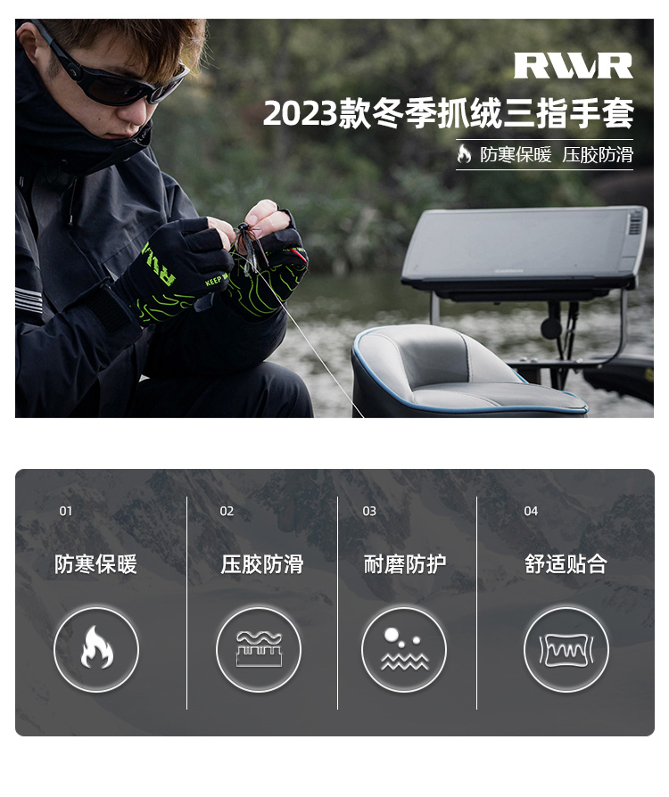 23款RVVR拉雪丽抓绒通用路亚钓鱼手套露三指五指冰丝防晒