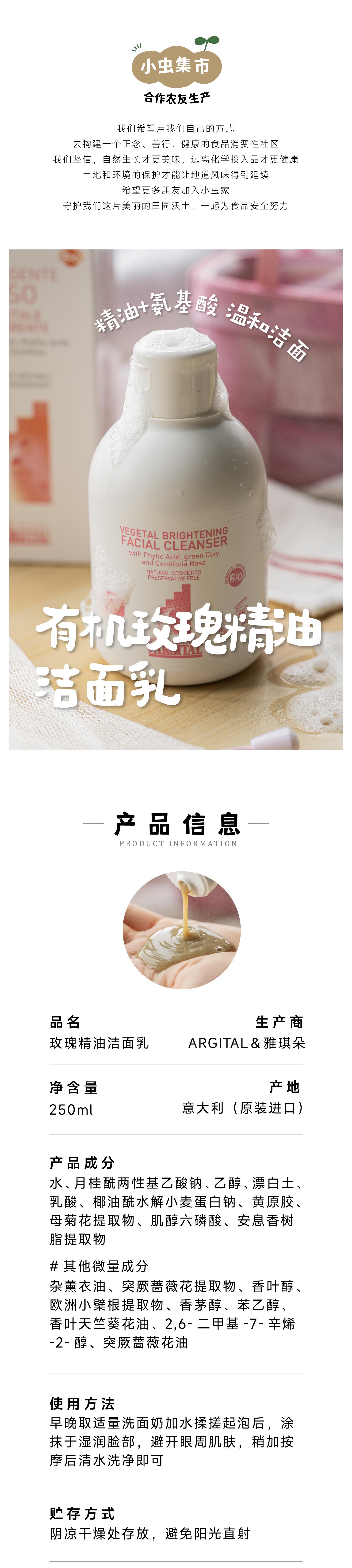 欧盟有机玫瑰精油洁面乳(氨基酸洗面奶)125ml/250ml | 合作农友生产,意大利原装进口,生产商:ARGITAL* 雅琪朵【公平贸易农人定价】