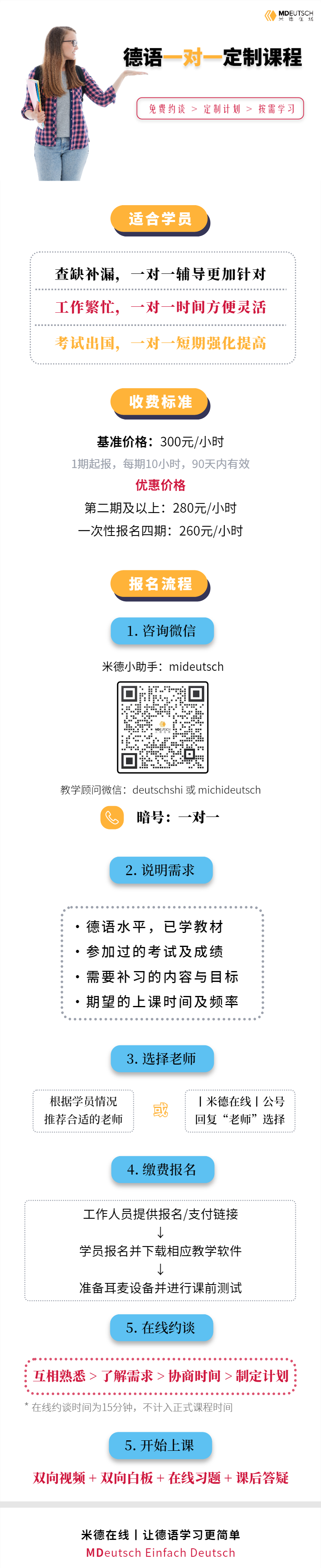 - 米德在线,专注德语网课教学12年,致力打造精致、优秀的德语网课,塑造高效、先进的在线学习方式。米德的宗旨:让德语学习更简单!