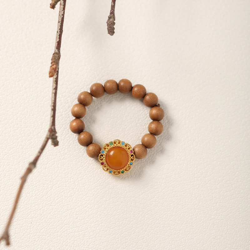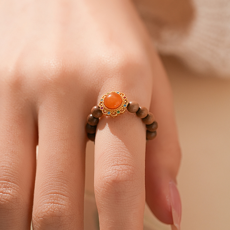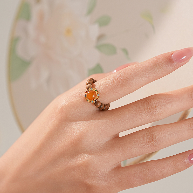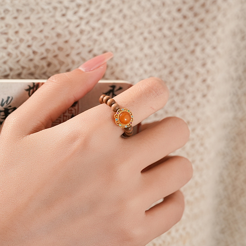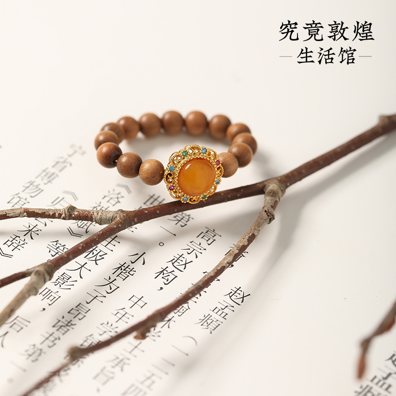 【吉星·蜜蜡老山檀戒指】中式国风手串配饰 敦煌福泽小众轻奢戒指