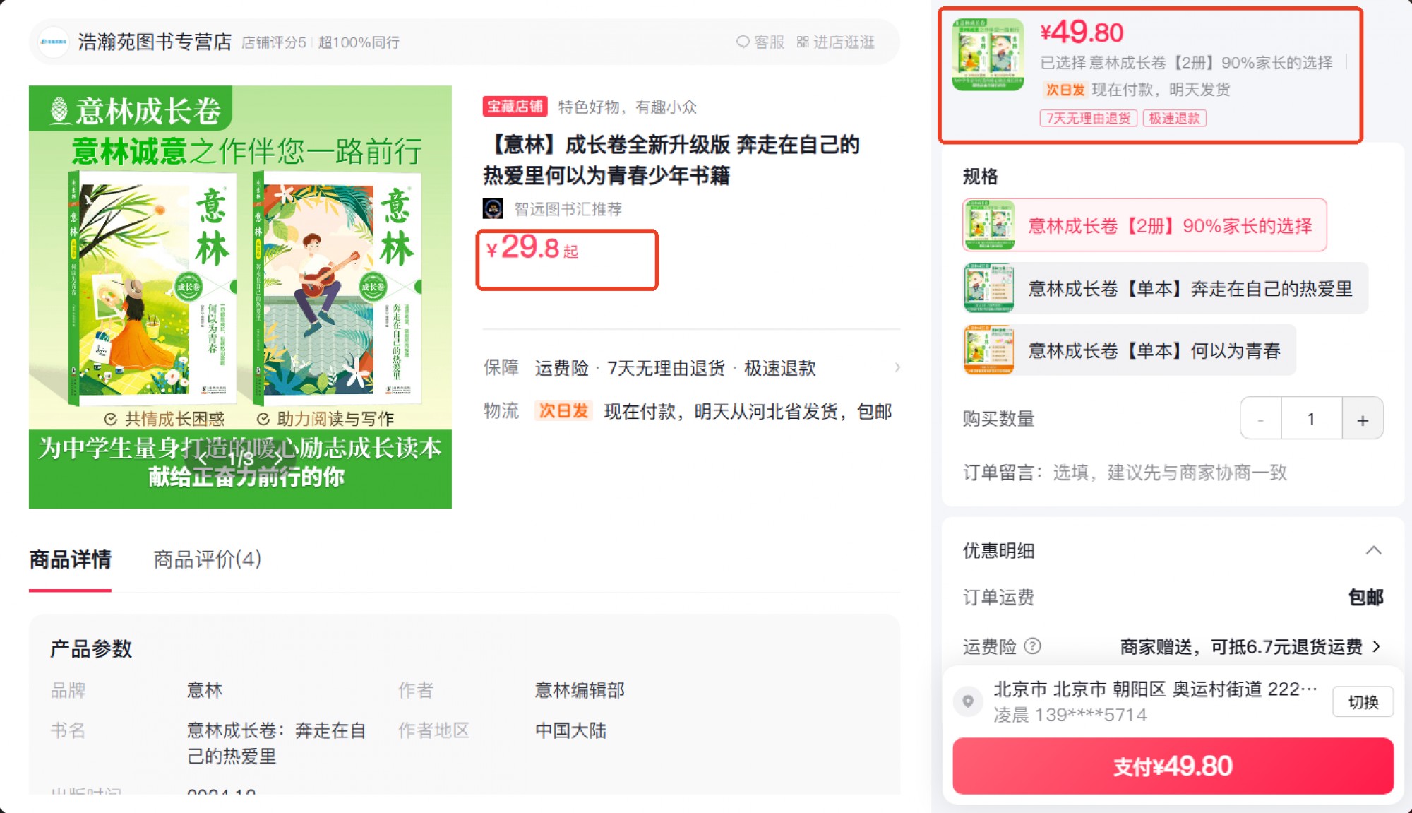 但最底价也是:单本29.8元,两本49.8元。
