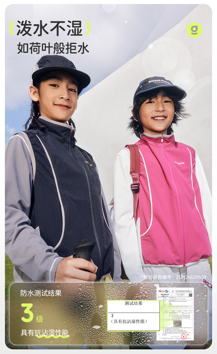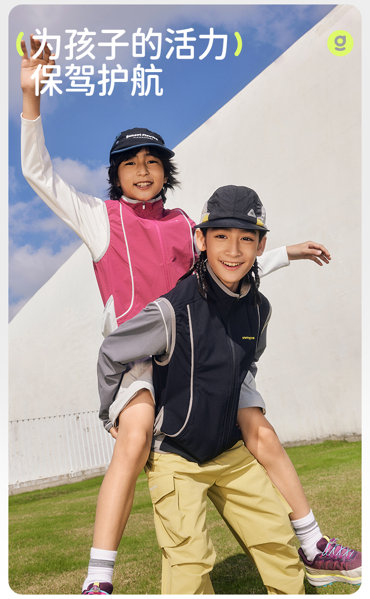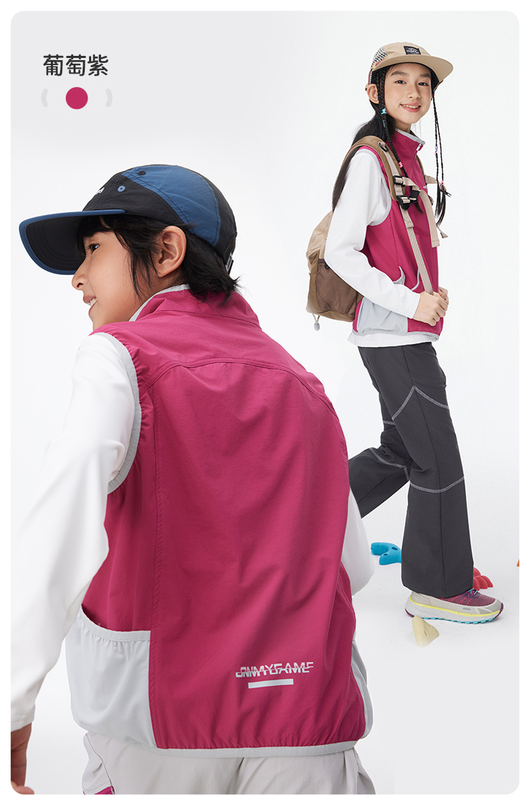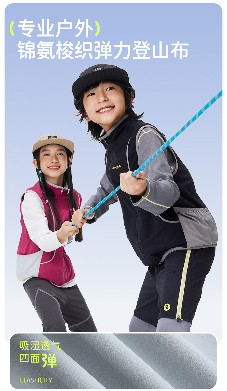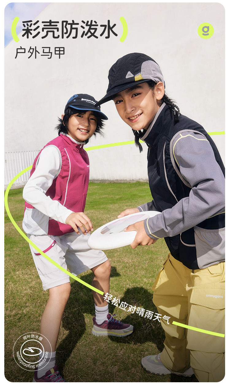 onmygame【彩壳防泼水】男女童马甲2025新款运动外穿背心春装上衣
