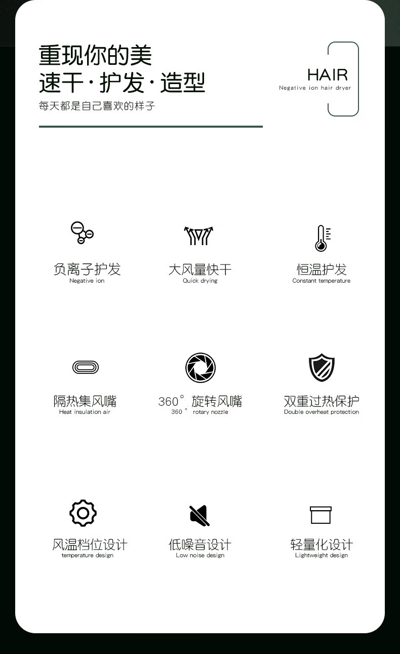 金稻电吹风机负离子家用 2000W负离子速干护发 KD318