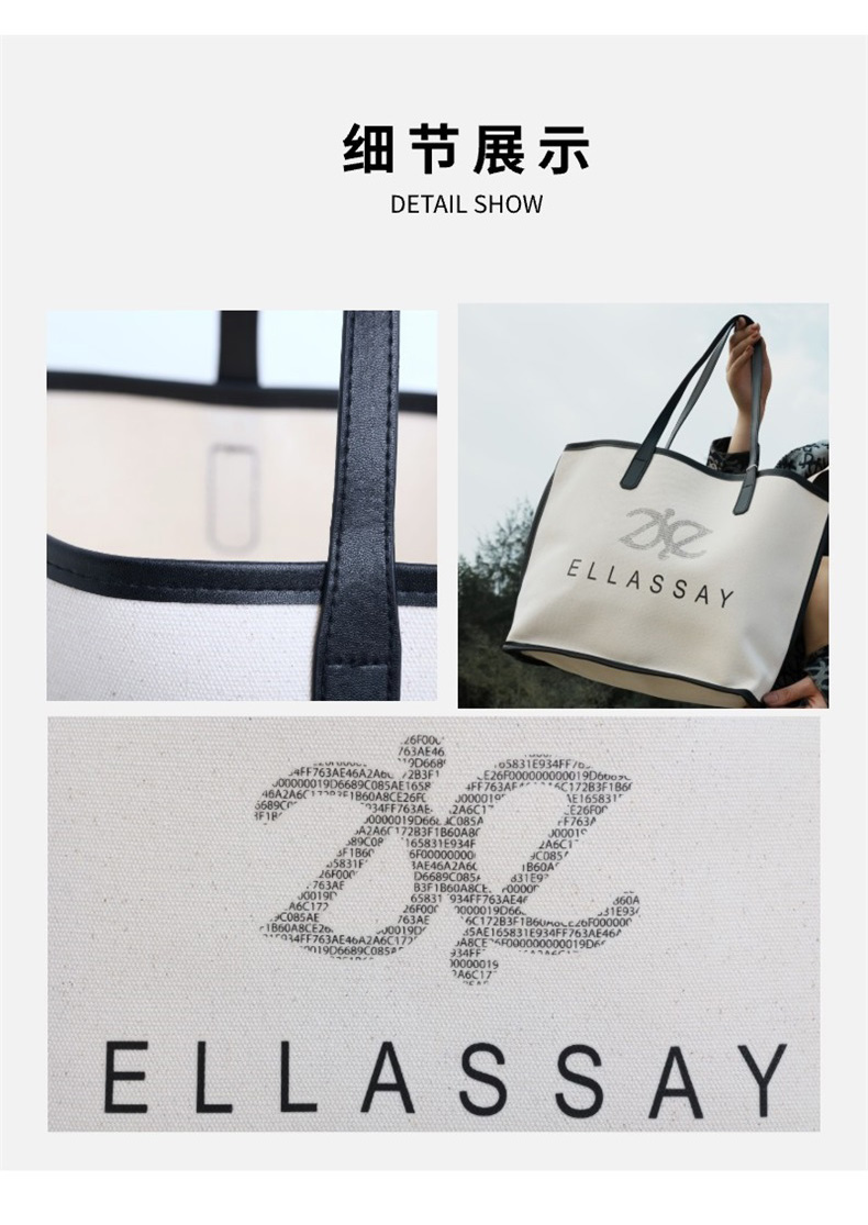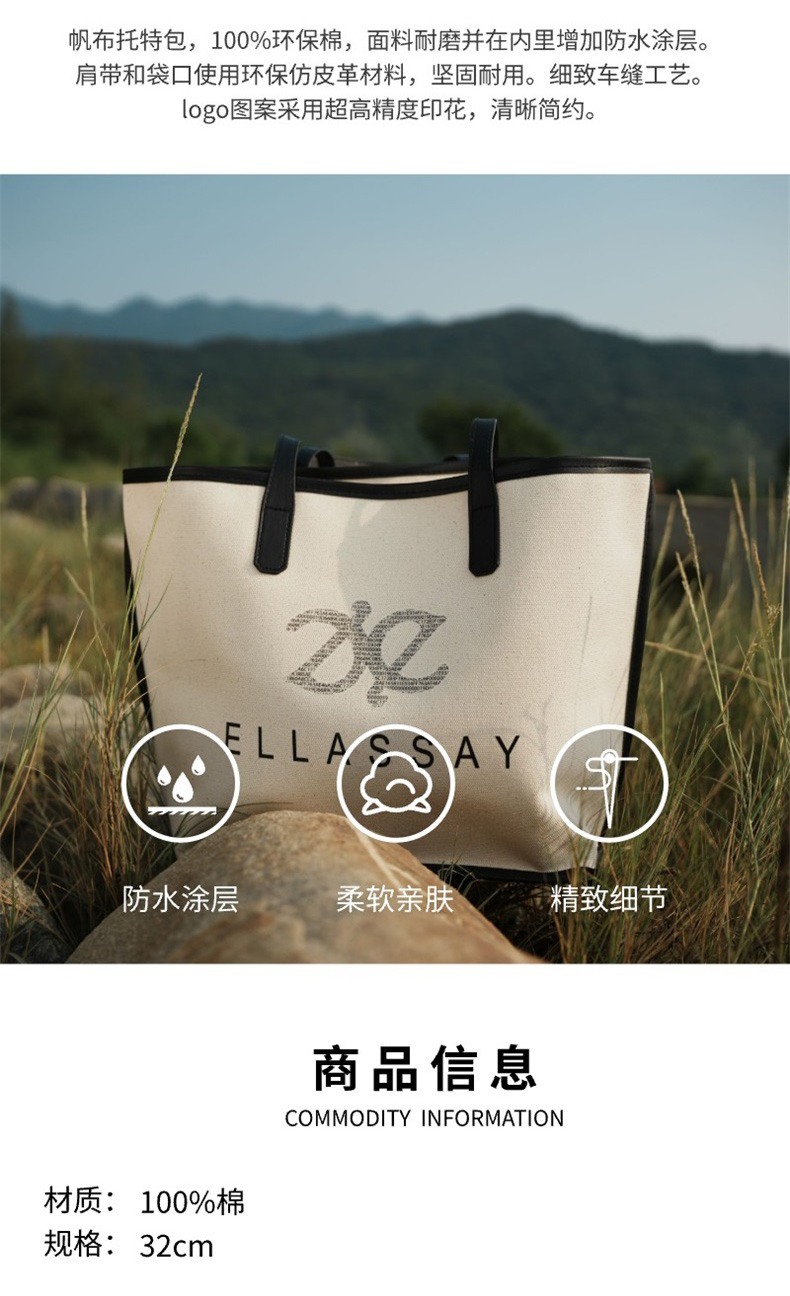歌力思 经典双E托特包帆布防水包EWZ33BL934
